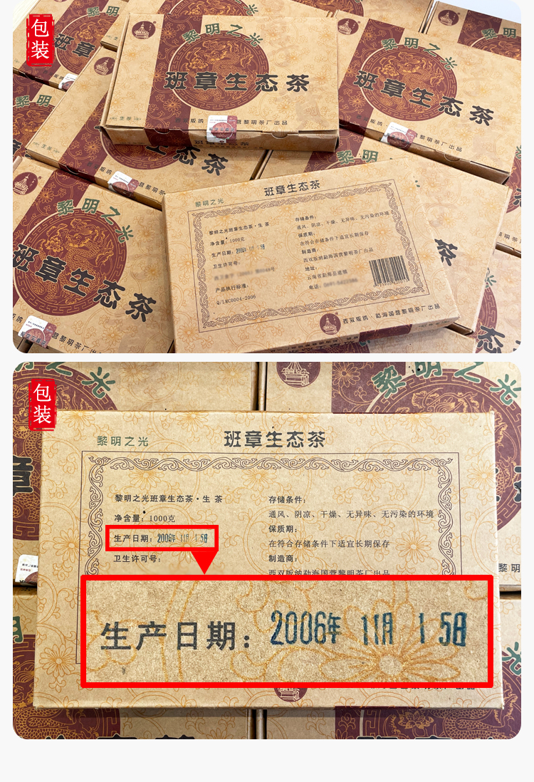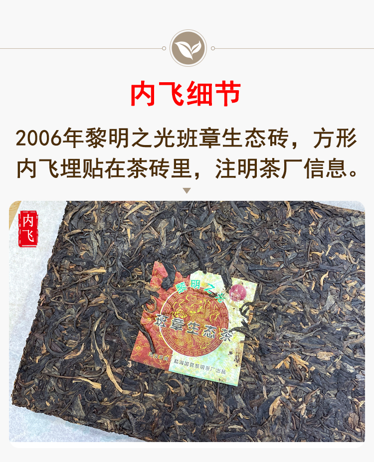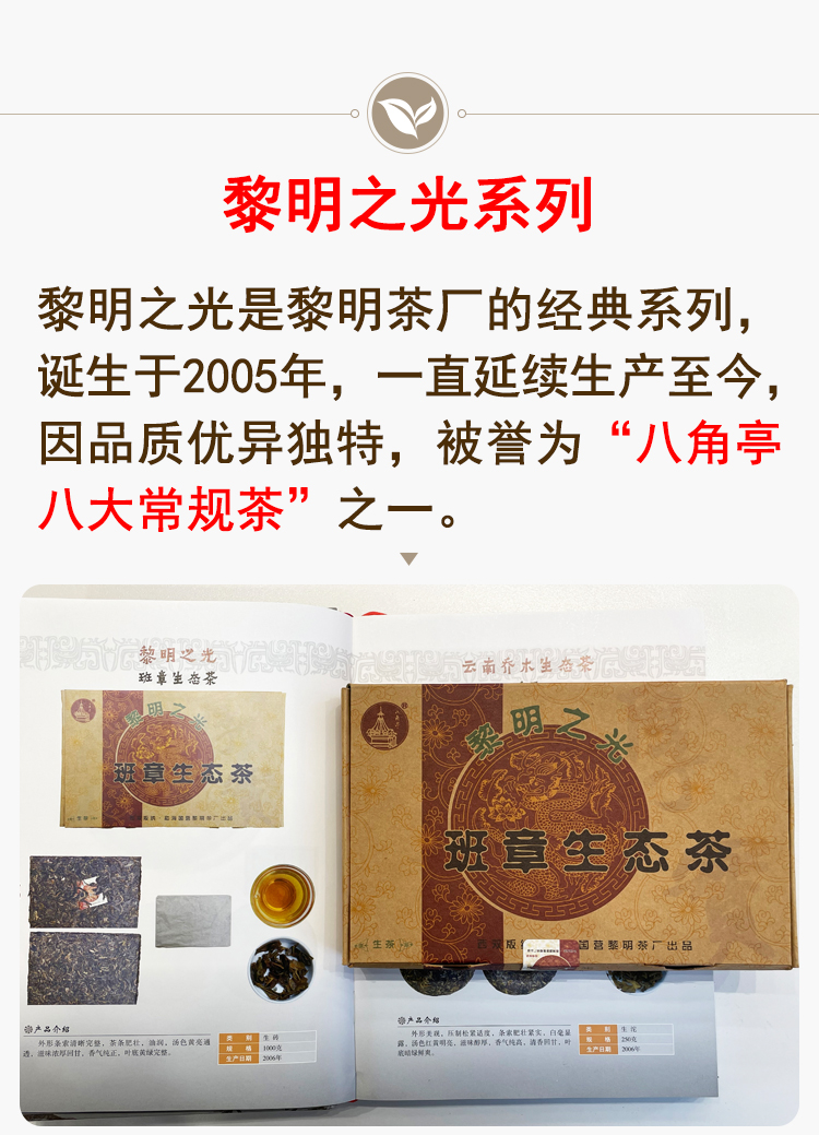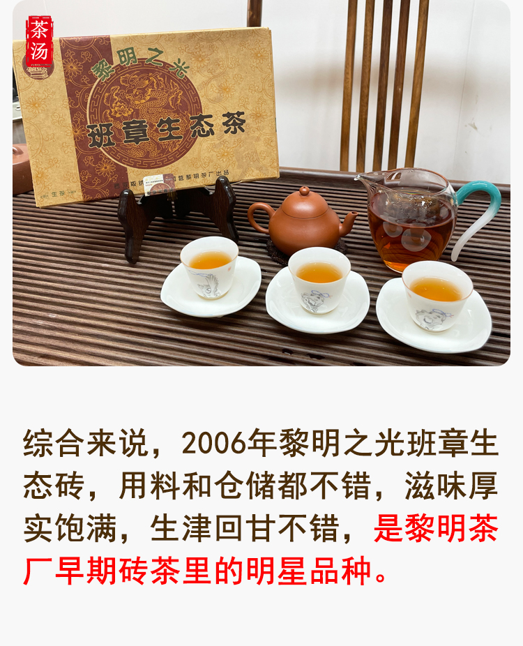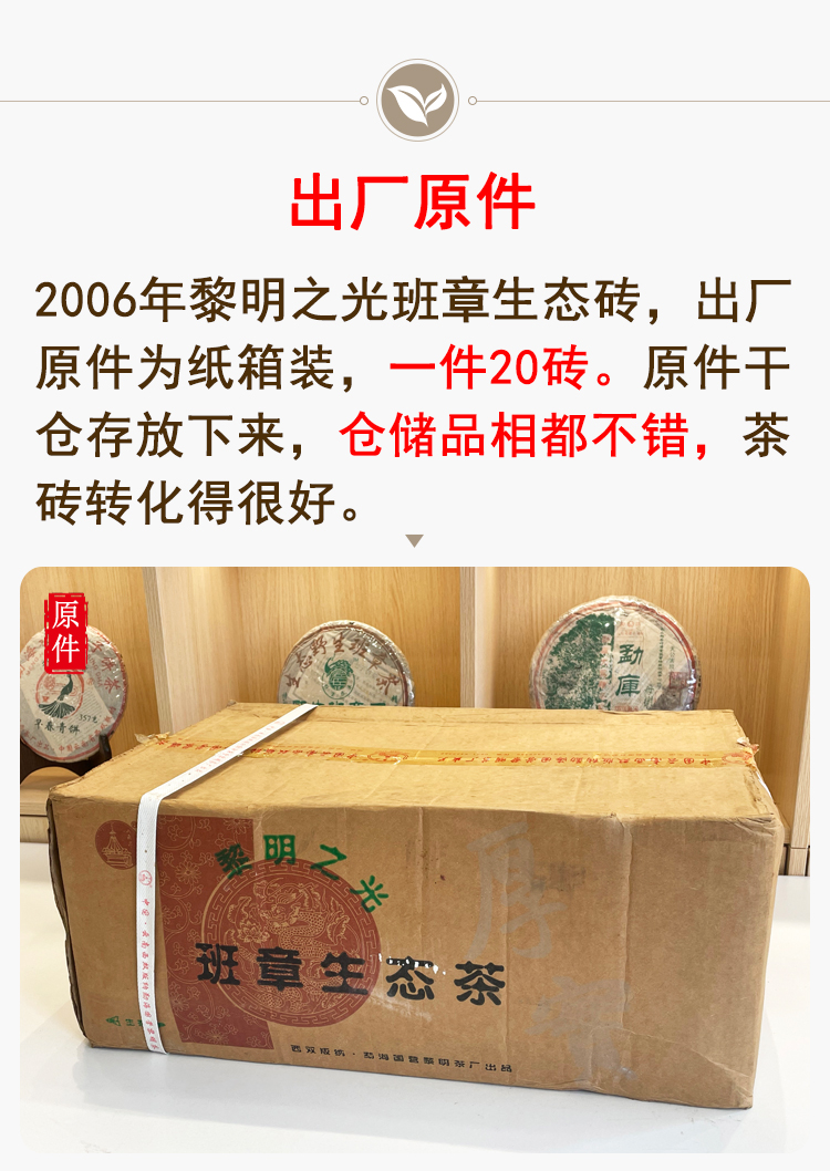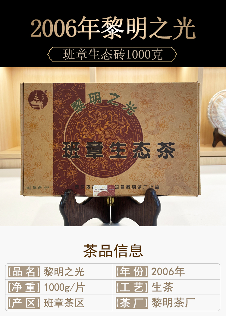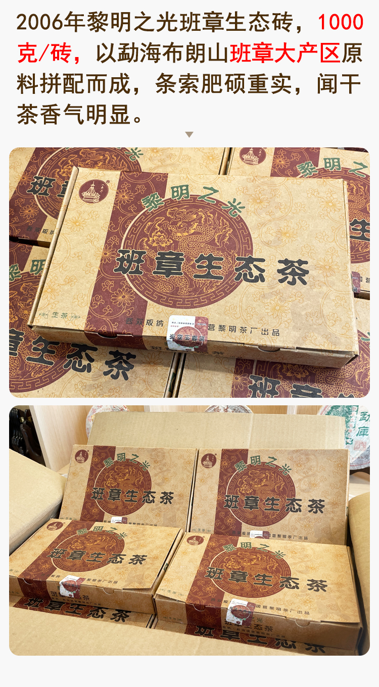 【新品】2006年黎明茶厂黎明之光 班章生态茶砖 1000克大砖 高香原件一手仓烟韵明显仓储加分 回甘好甜 大砖性价比高