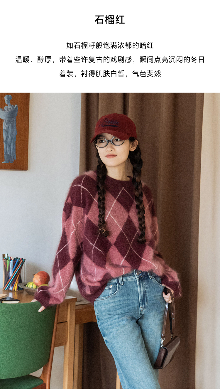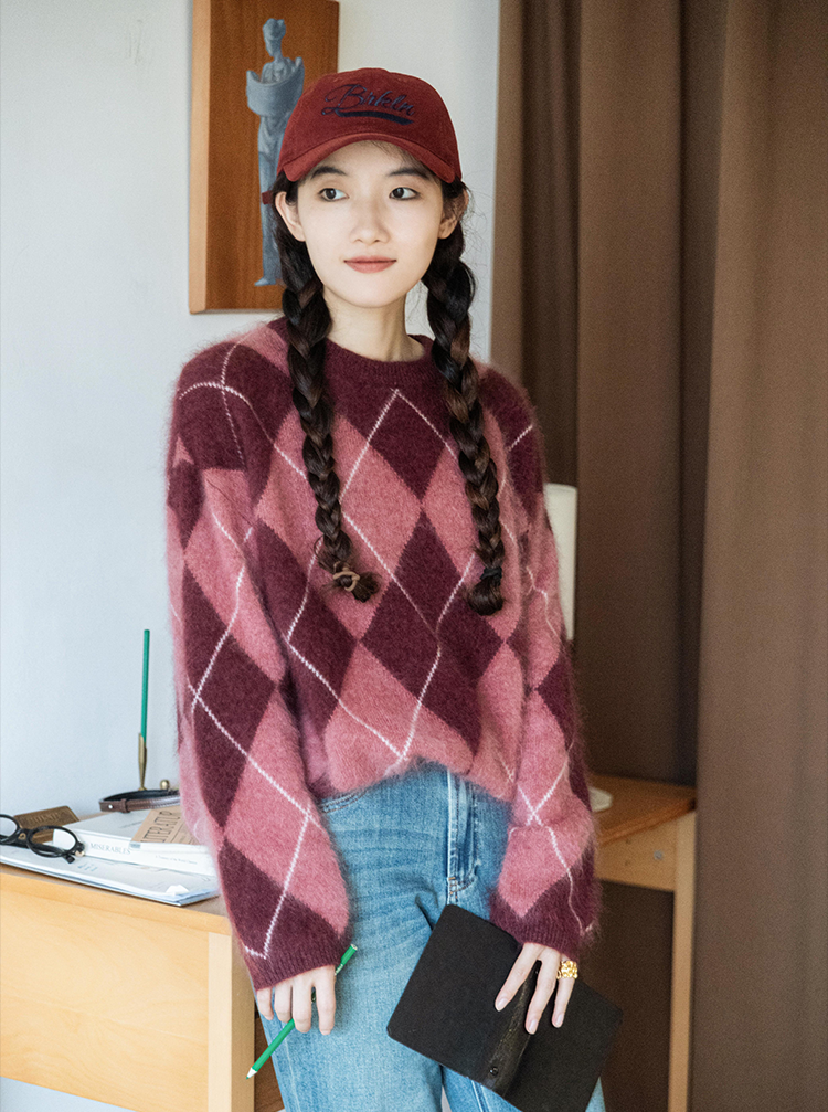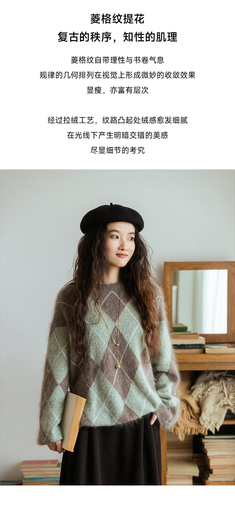 【prime】知识分子18支纯羊毛菱格纹拉毛毛衫FCF3WST137