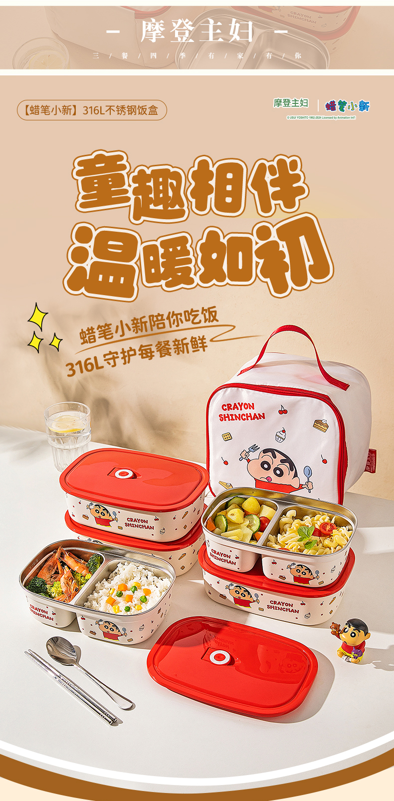 摩登主妇蜡笔小新316L不锈钢保温饭盒上班族2025新款便当盒