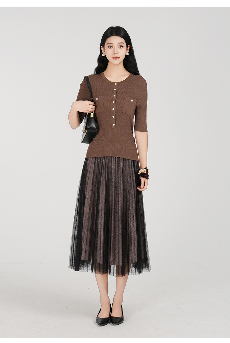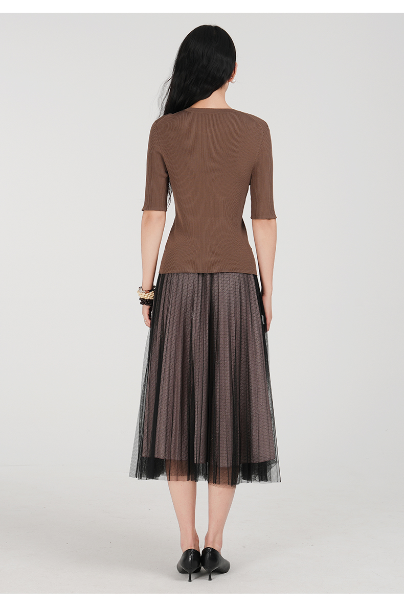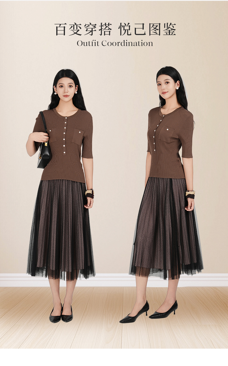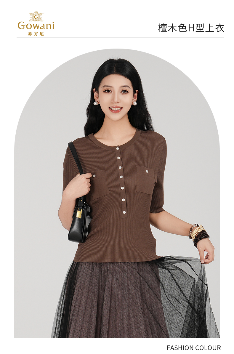 乔万尼新品时尚法式大圆领显瘦修身针织T恤EZ2M122
