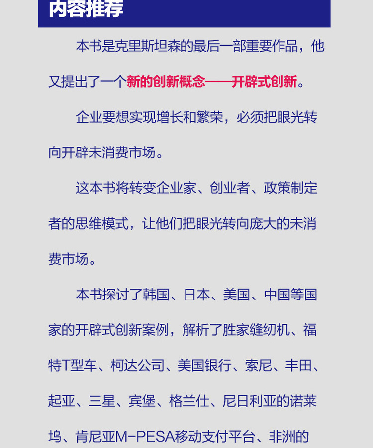 “颠覆式创新”之父克莱顿·克里斯坦森重磅新作,聚焦新型创新模式“开辟式创新”,通过开辟式创新发现未消费市场、实现增长,创造长久的经济繁荣。