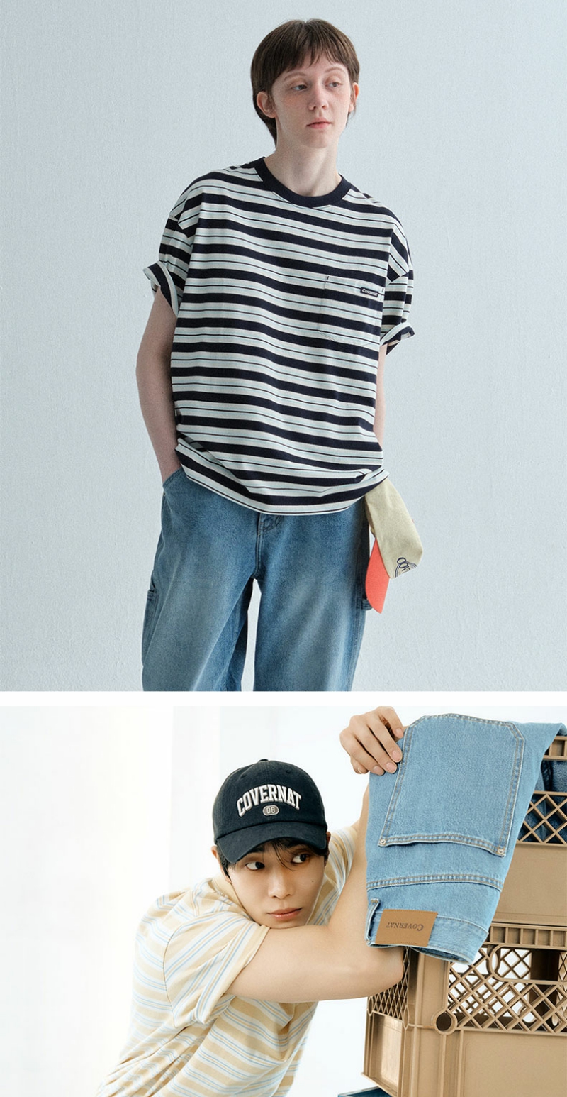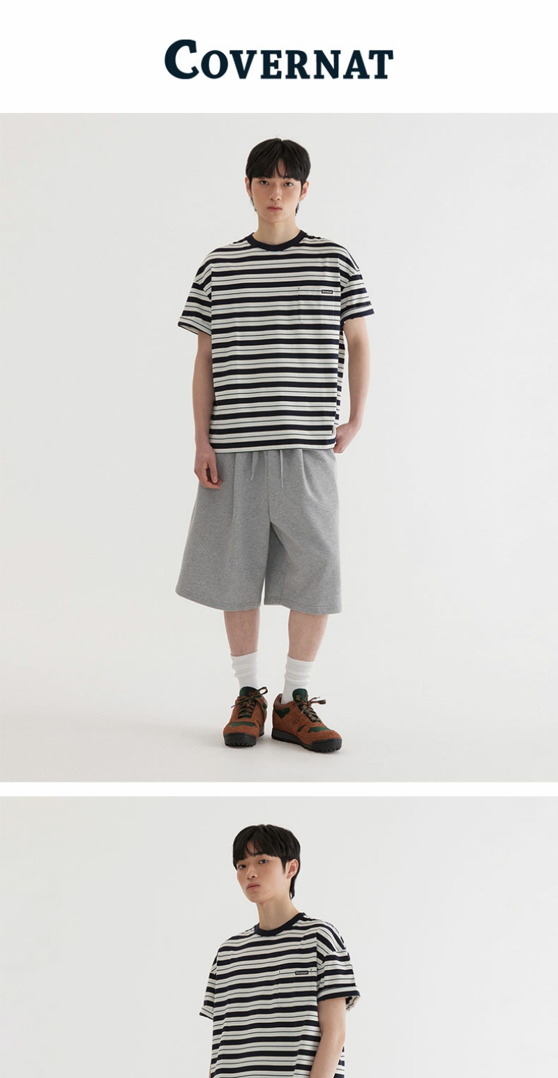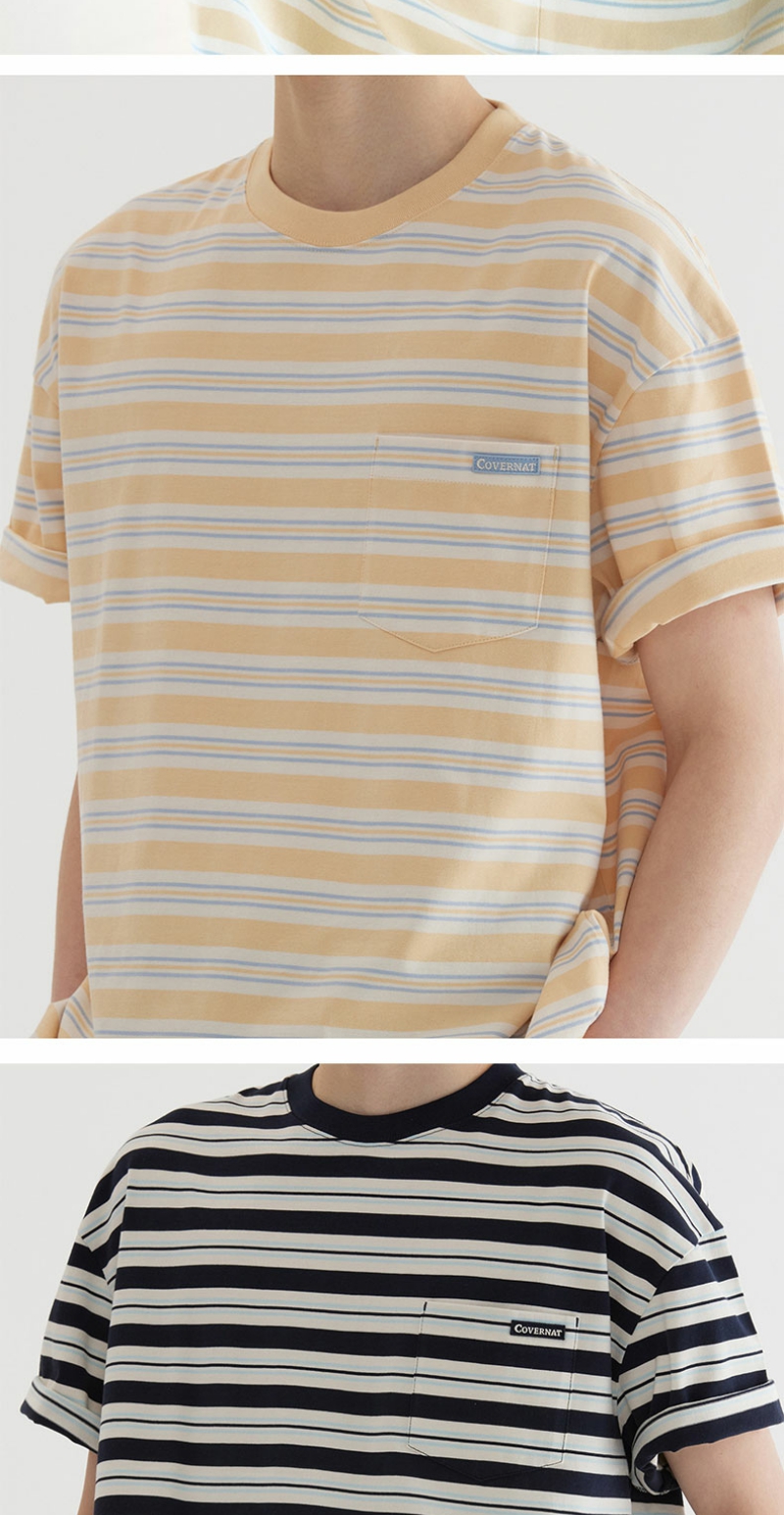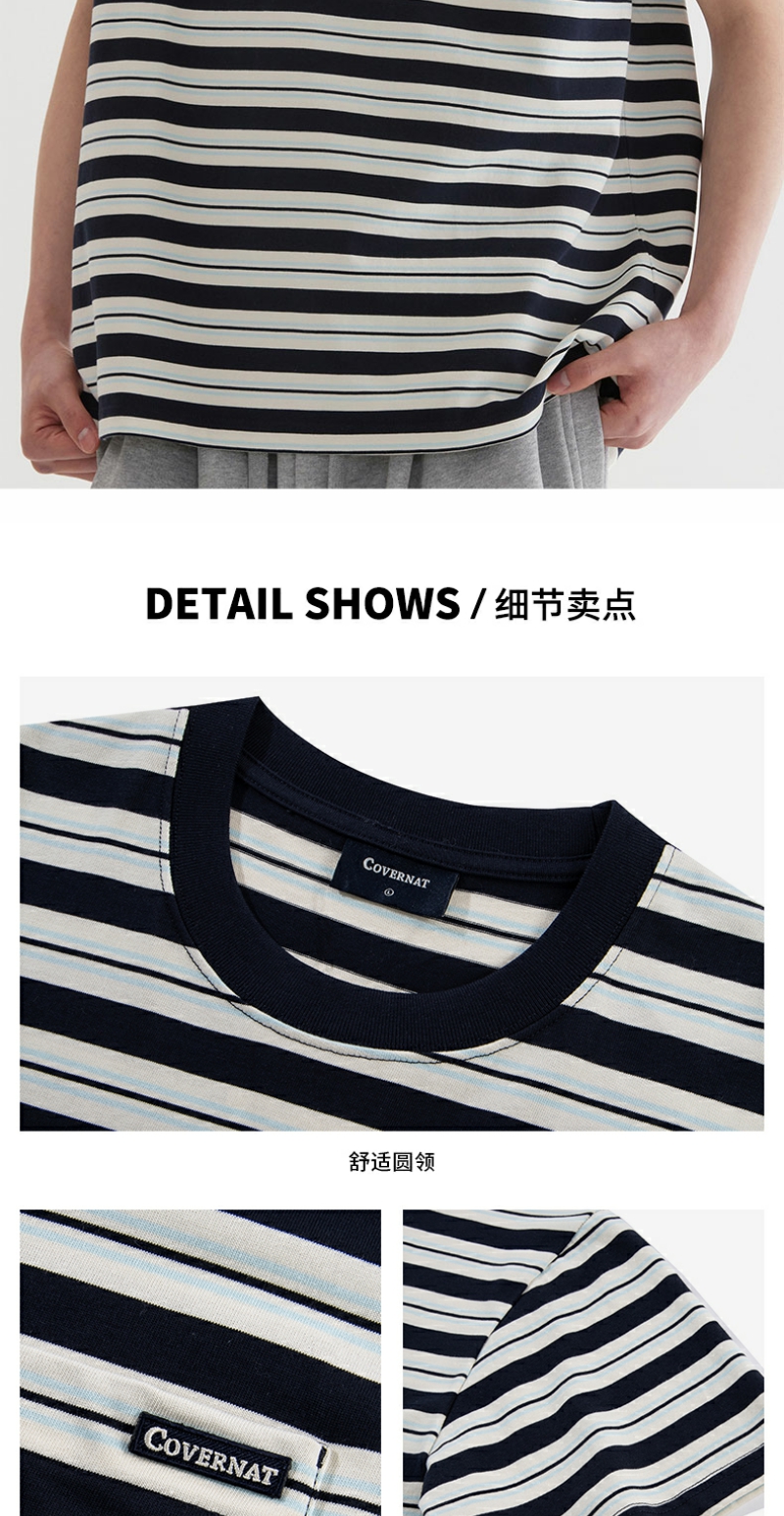 Covernat韩国潮牌短袖条纹撞色男女情侣款休闲T恤宽松2025夏季新CO2502ST08