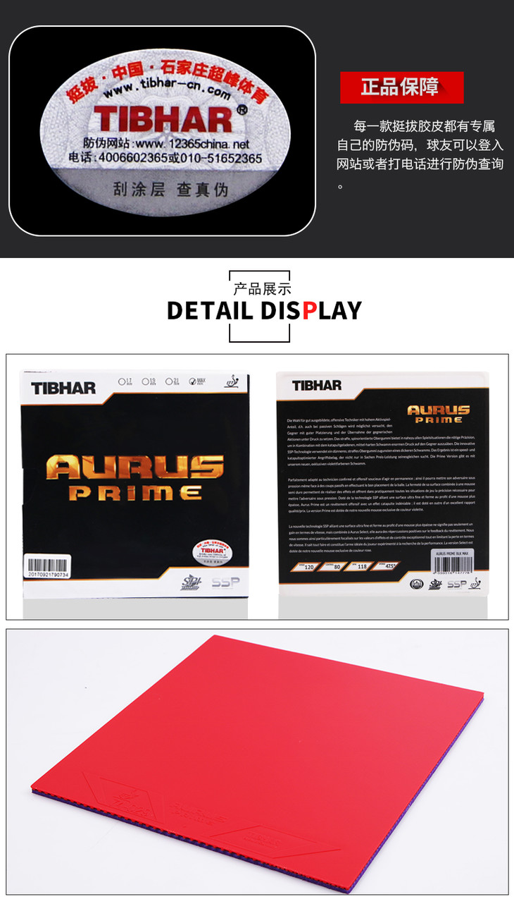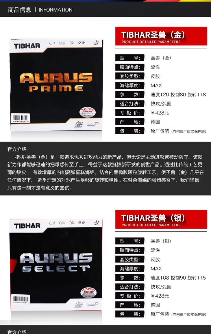 挺拔TIBHAR 银圣兽 AURUS-SELECT 涩性反胶乒乓球套胶