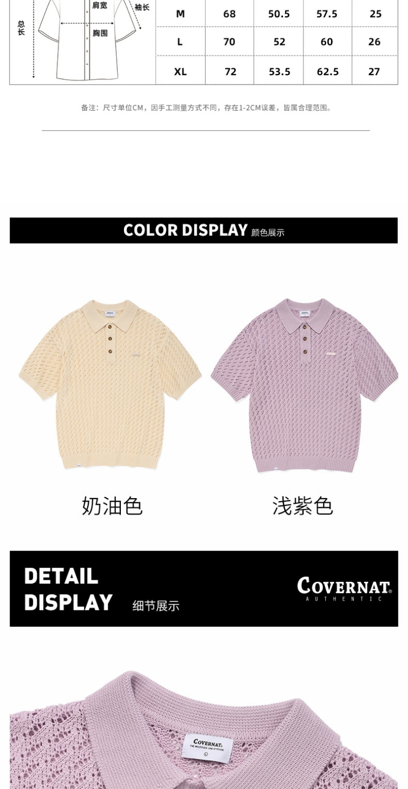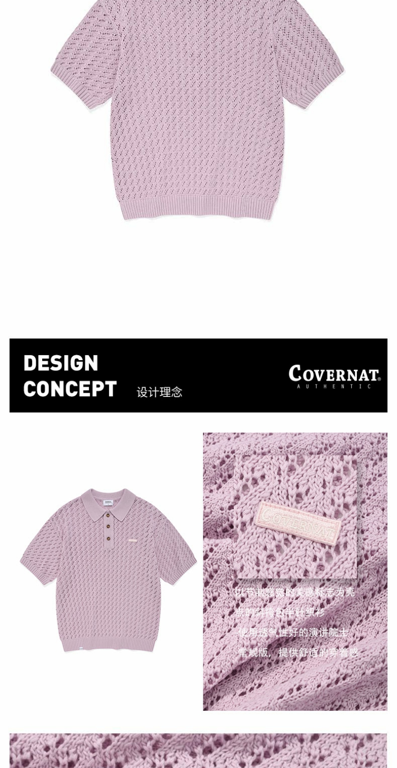 Covernat韩国潮牌翻领针织衫舒适透气潮流时尚男女同款T恤