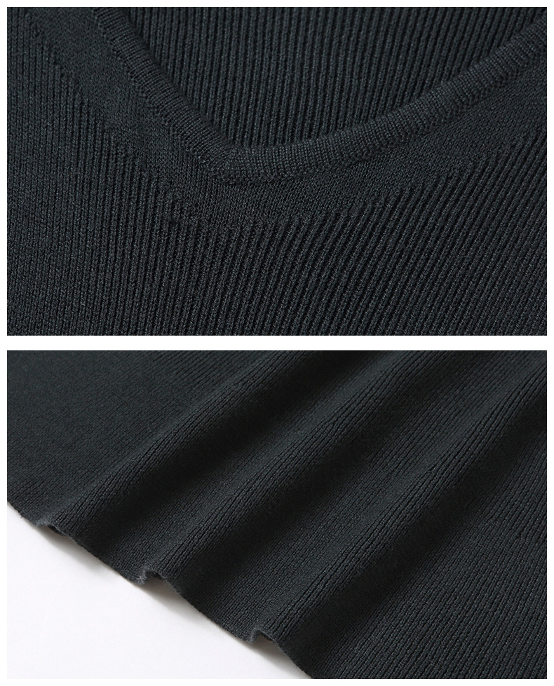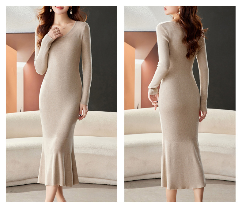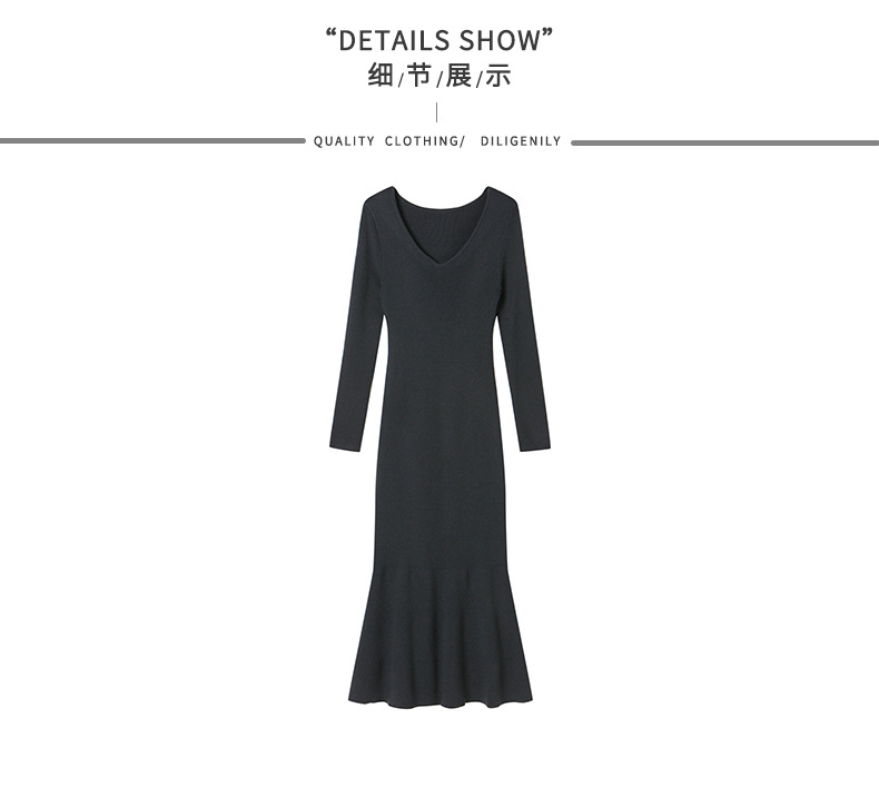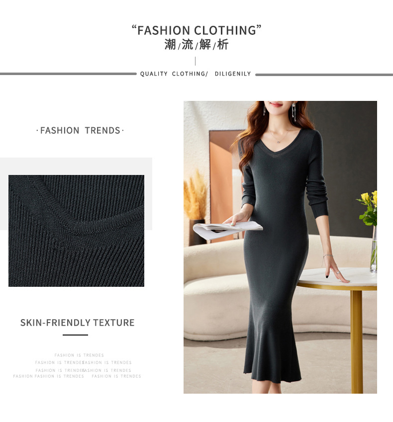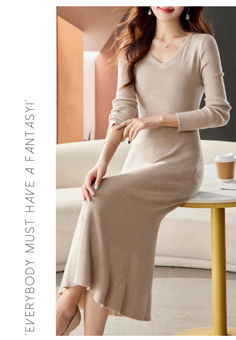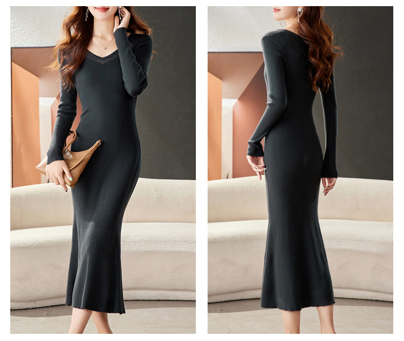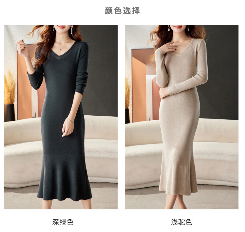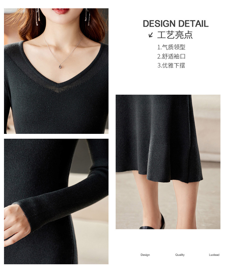 CC-16-9170 V领修身显身材连衣裙女秋季2024新款时尚气质过漆针织羊毛打底裙
