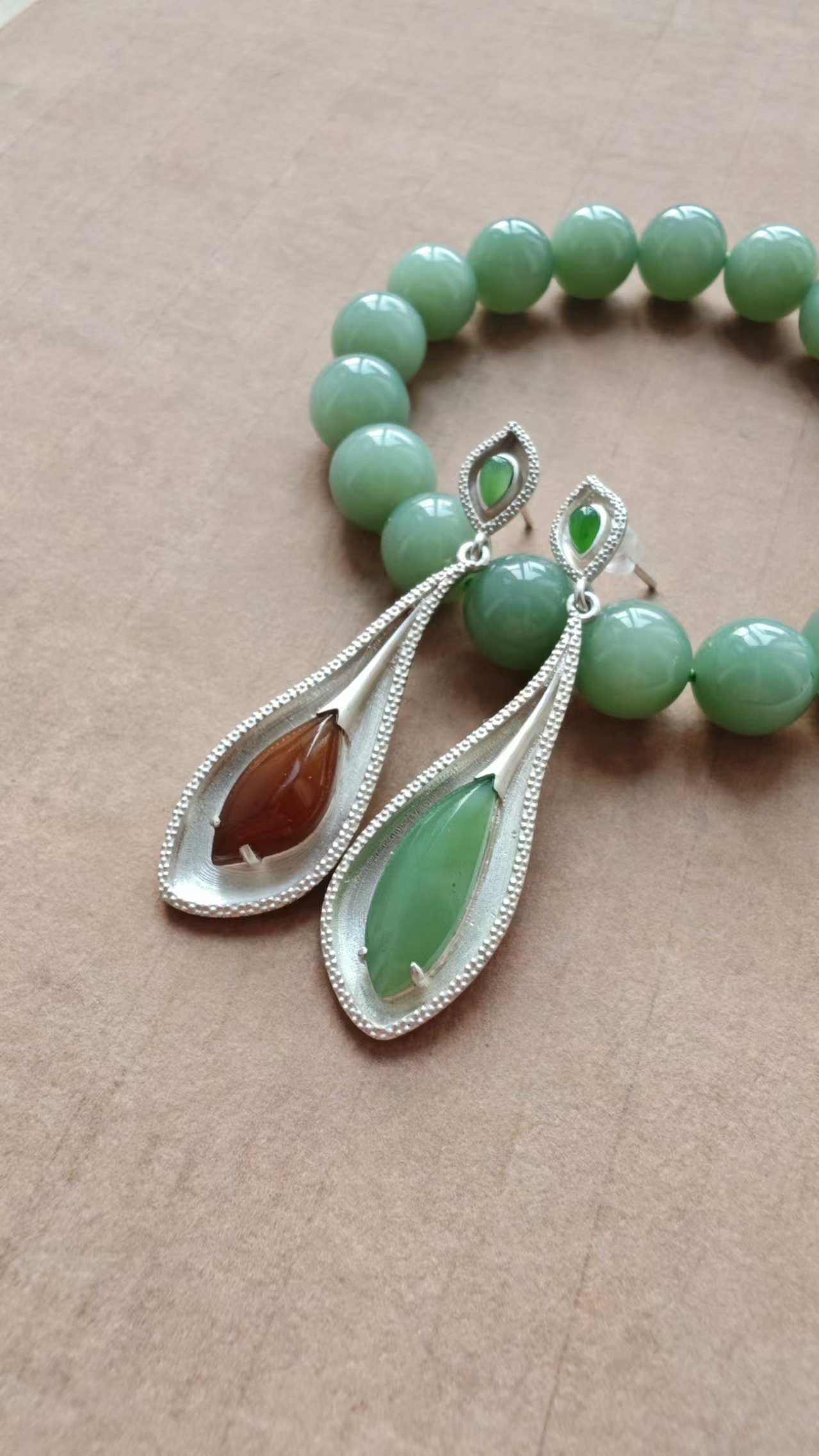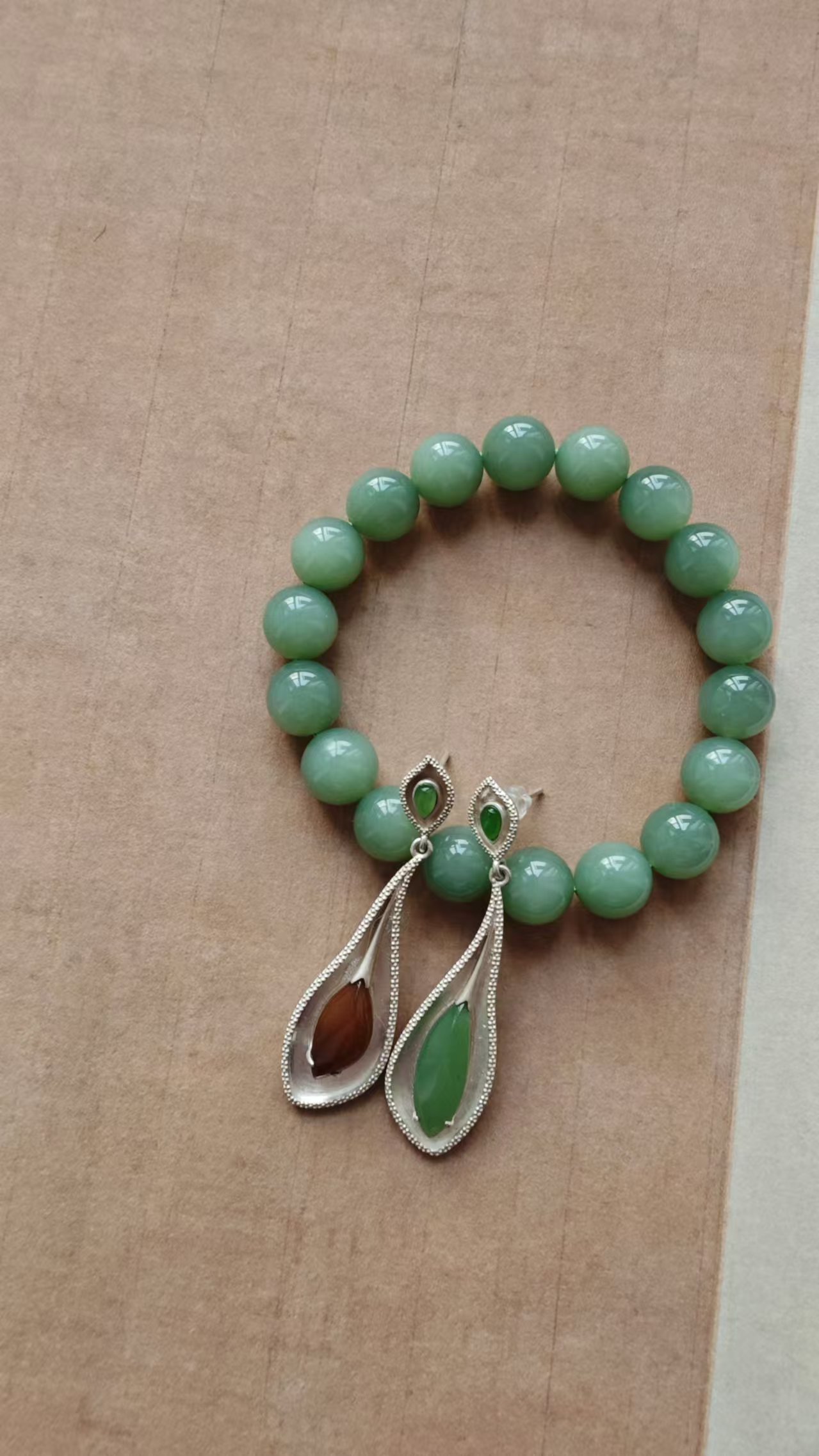 【粉绿·和田玉银戒指】