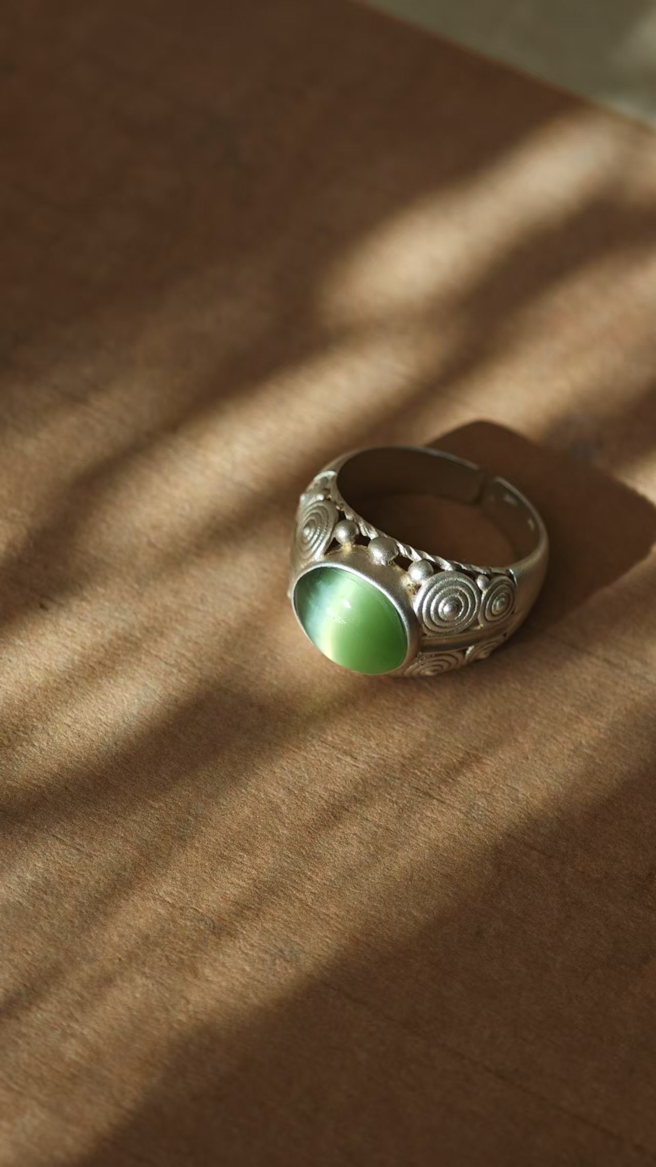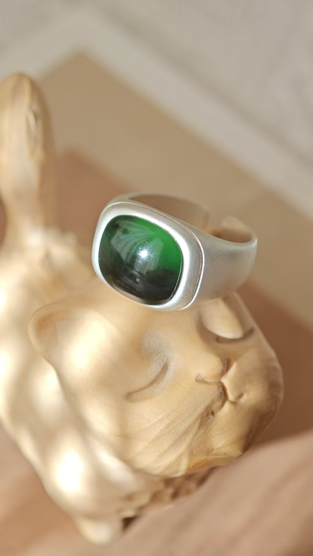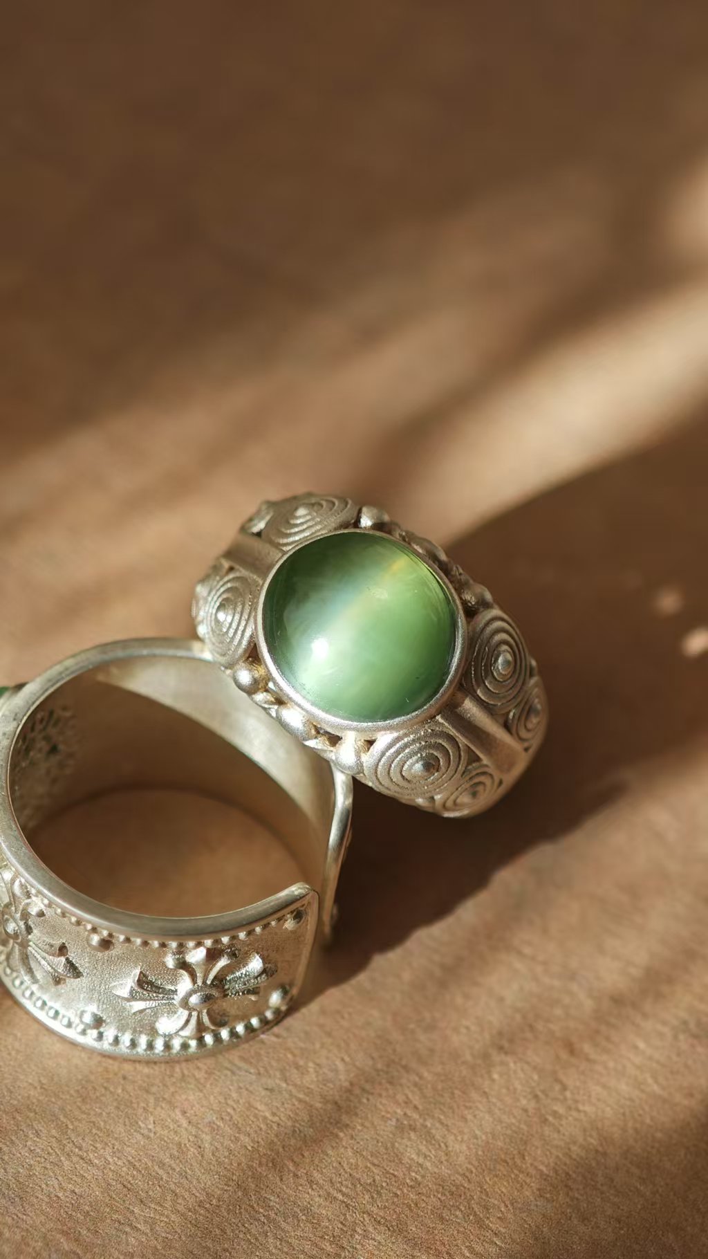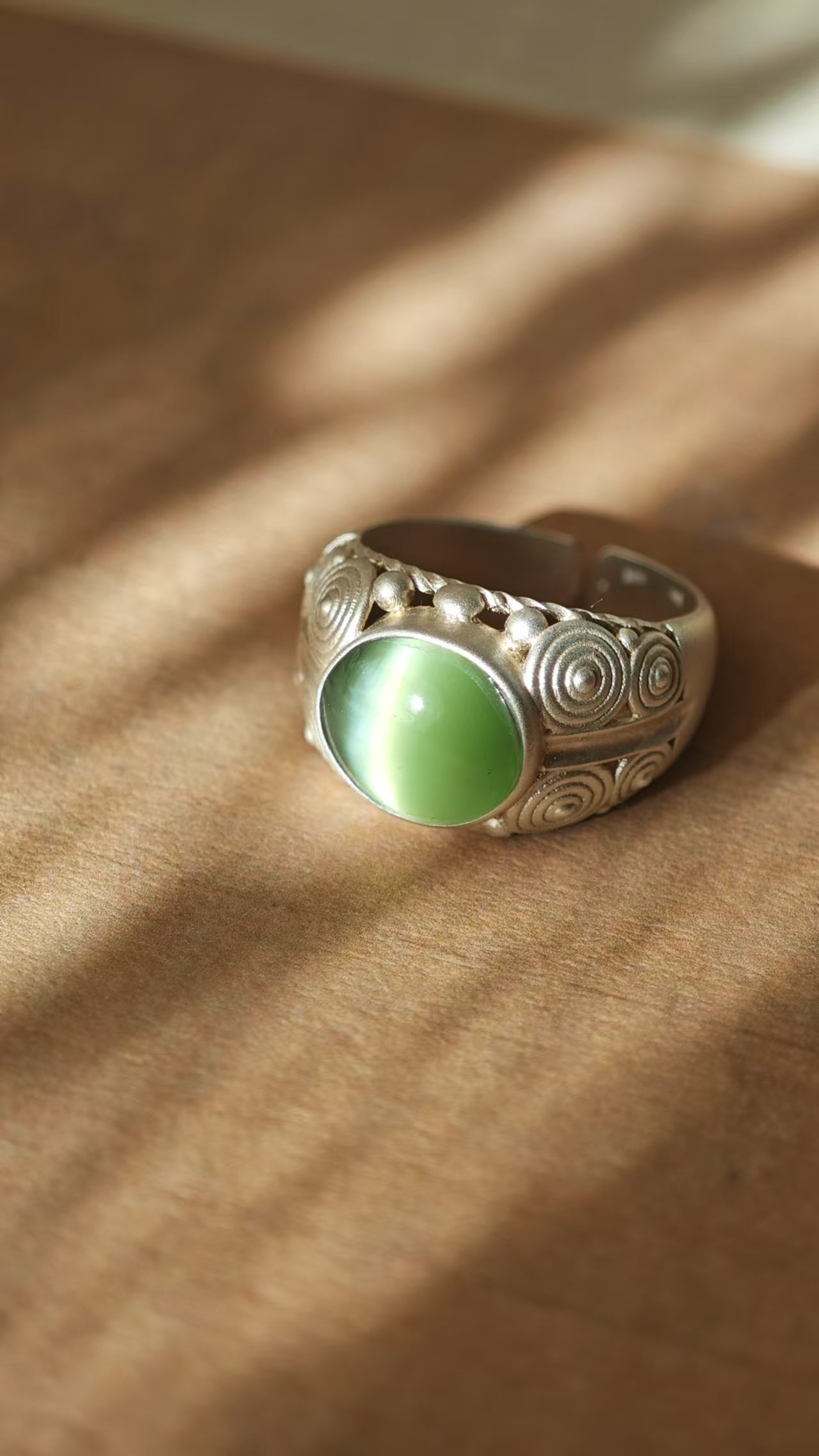【猫眼·和田玉银戒指】