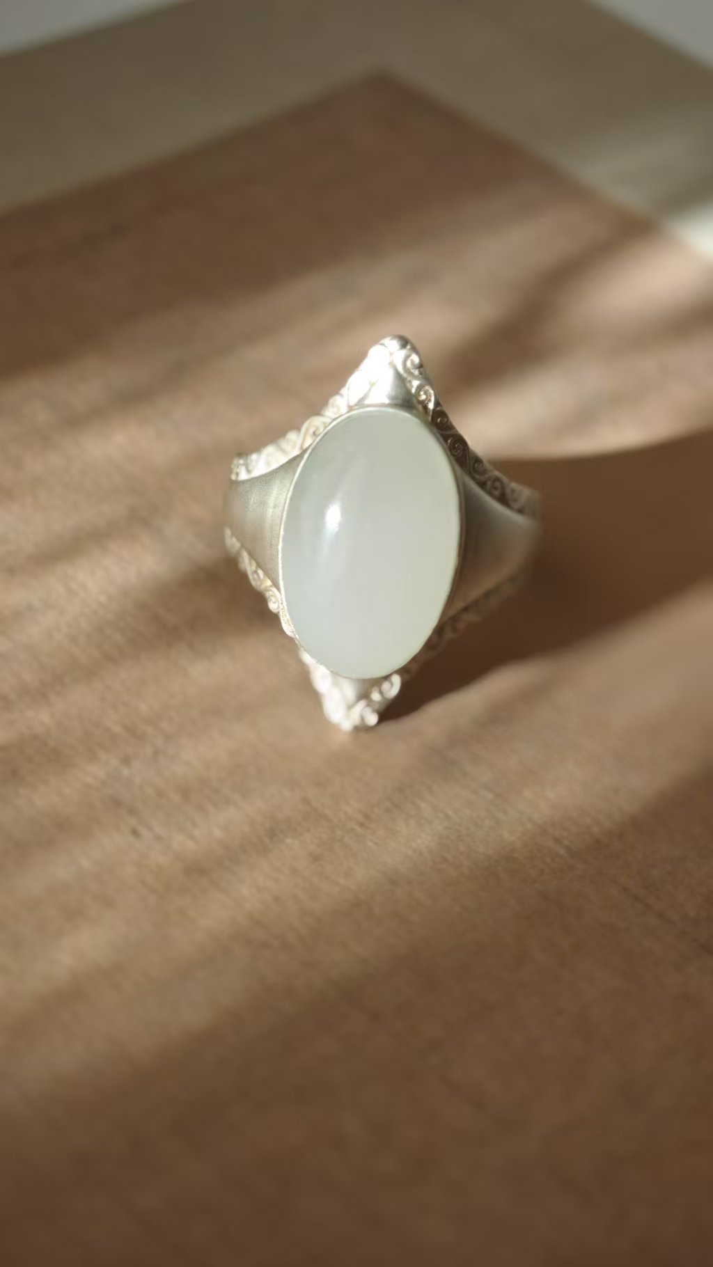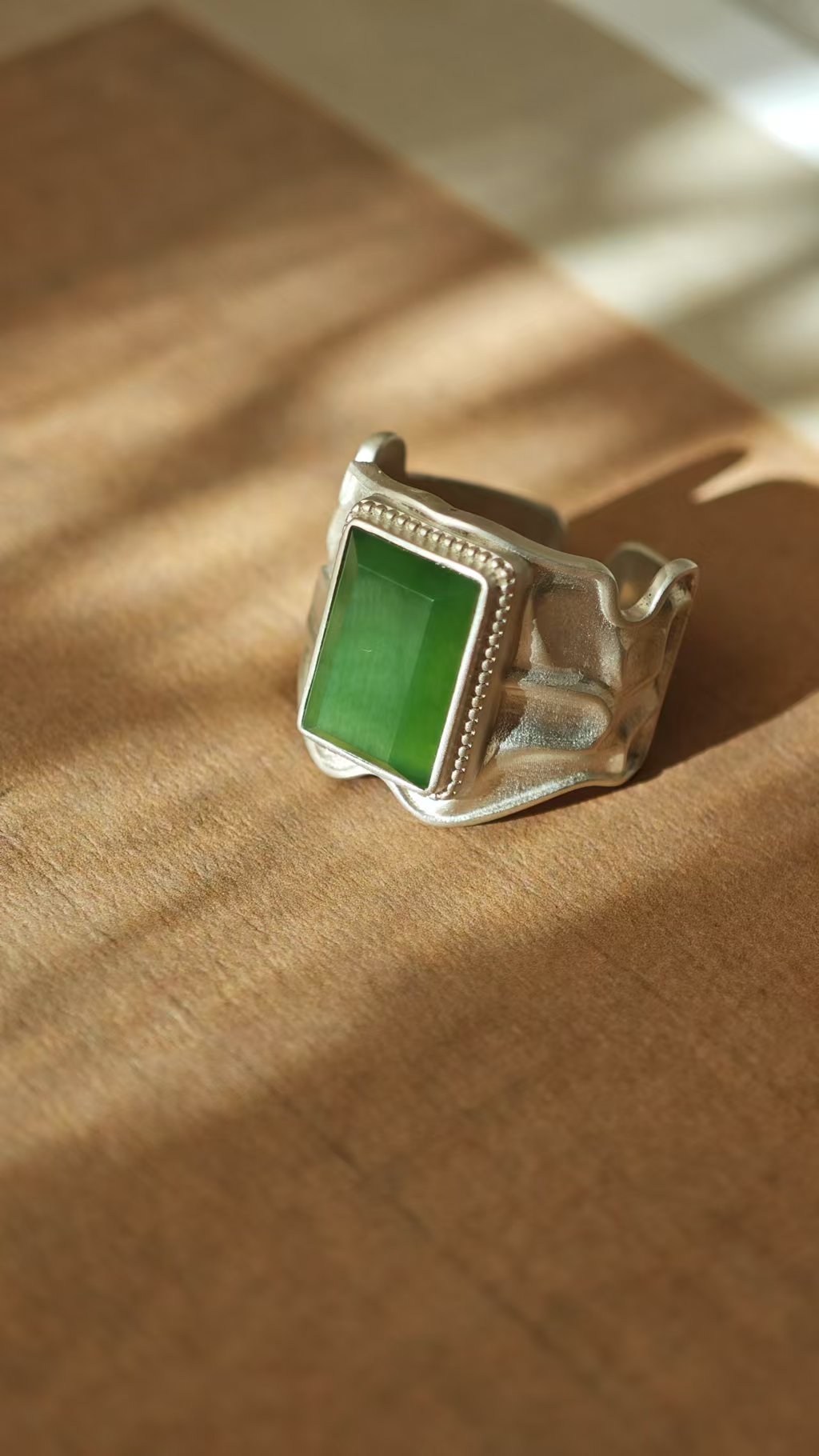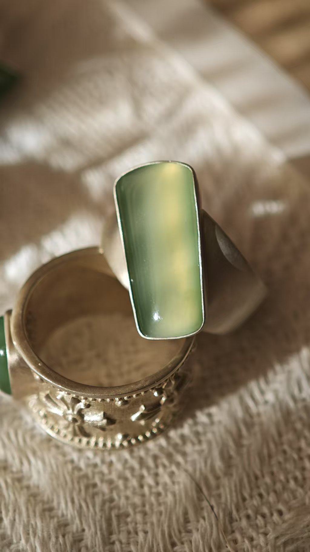 【猫眼·和田玉银戒指】