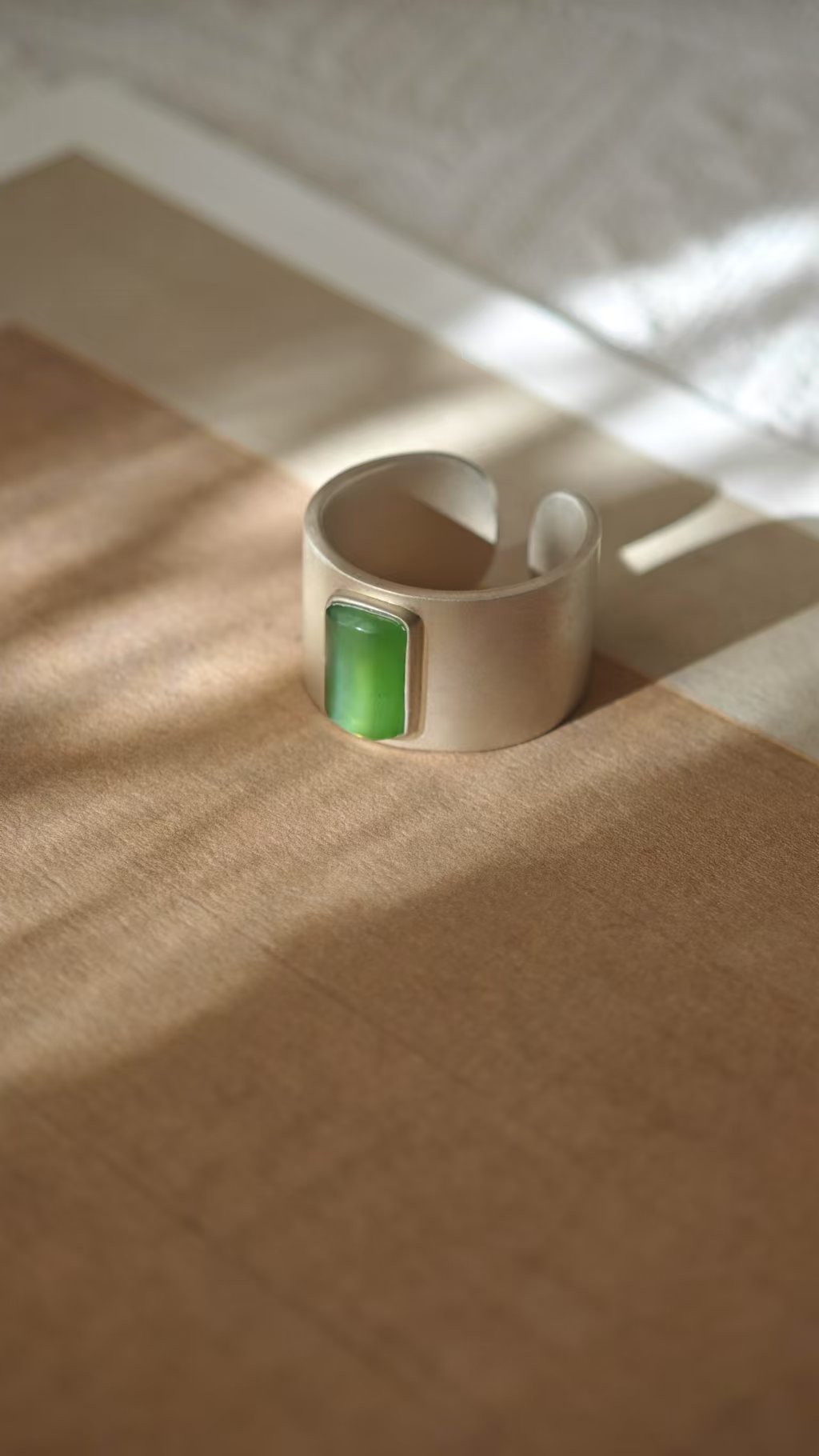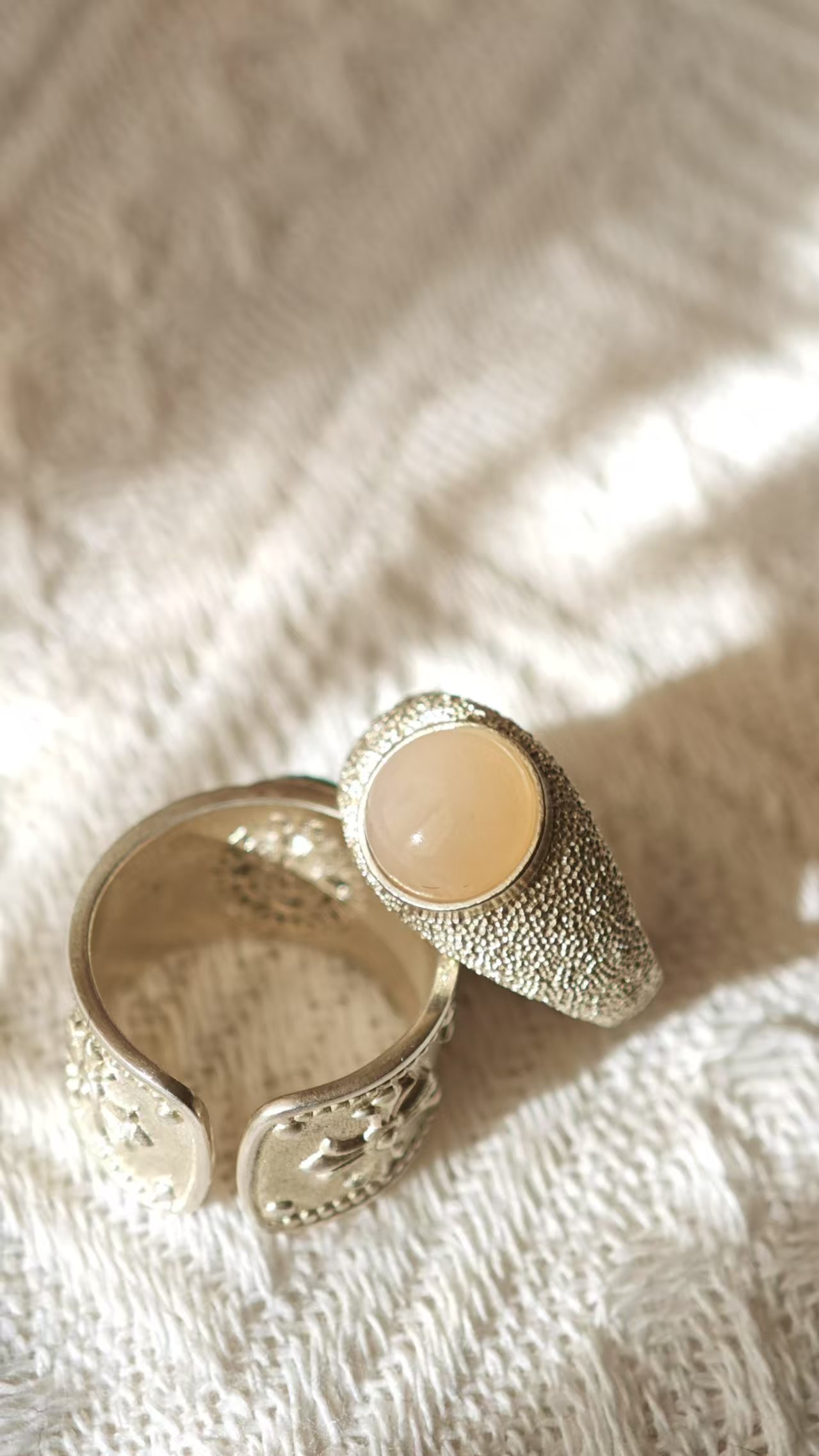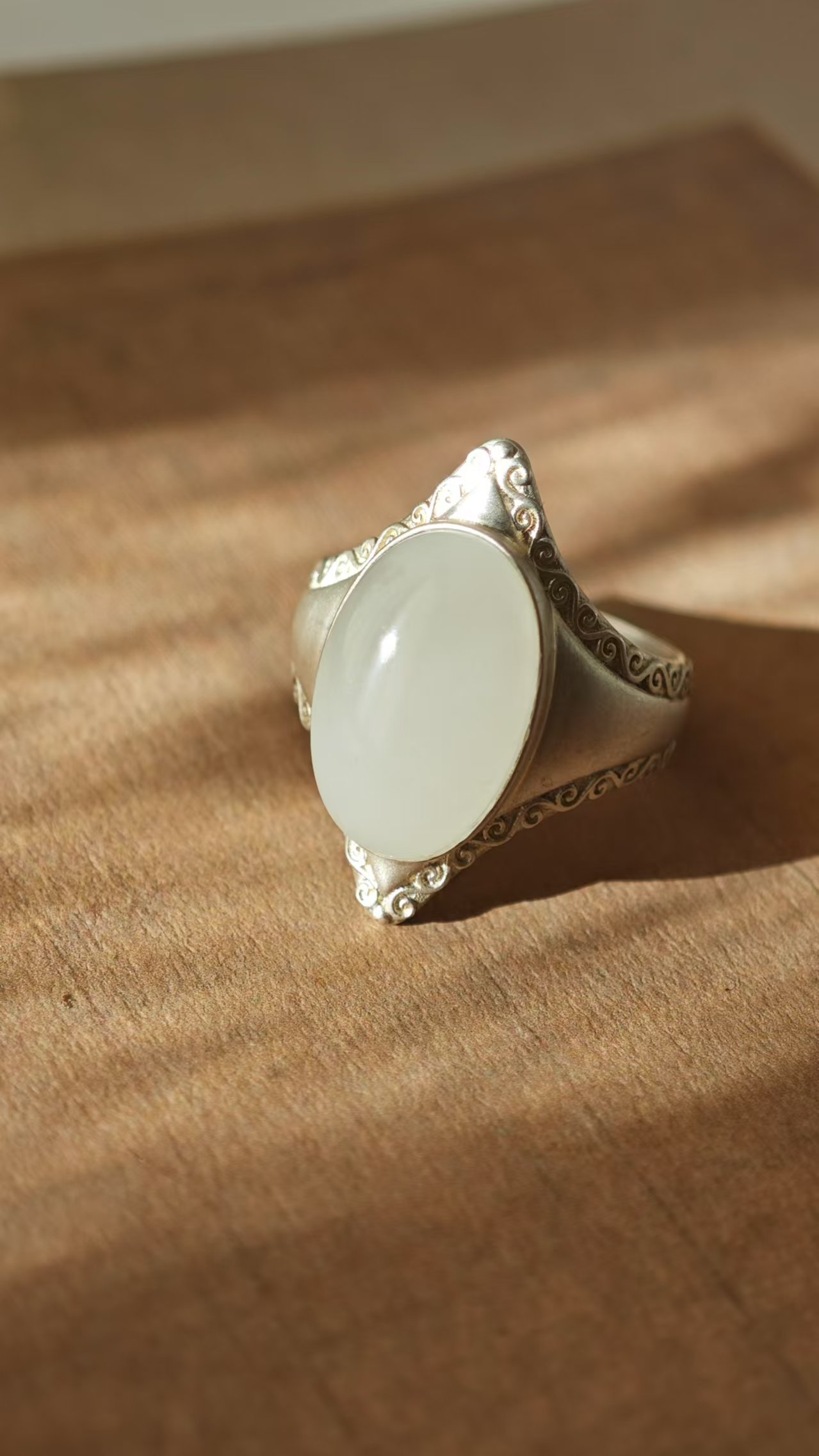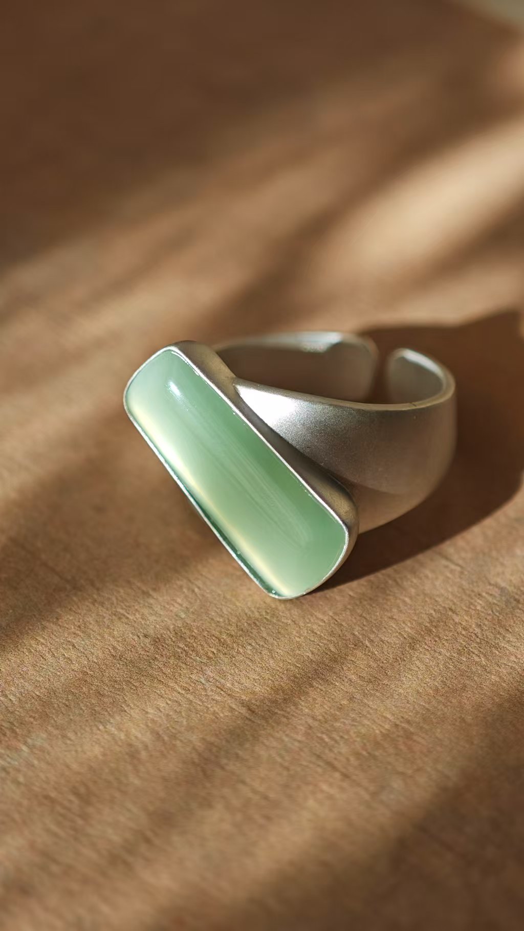 【猫眼·和田玉银戒指】