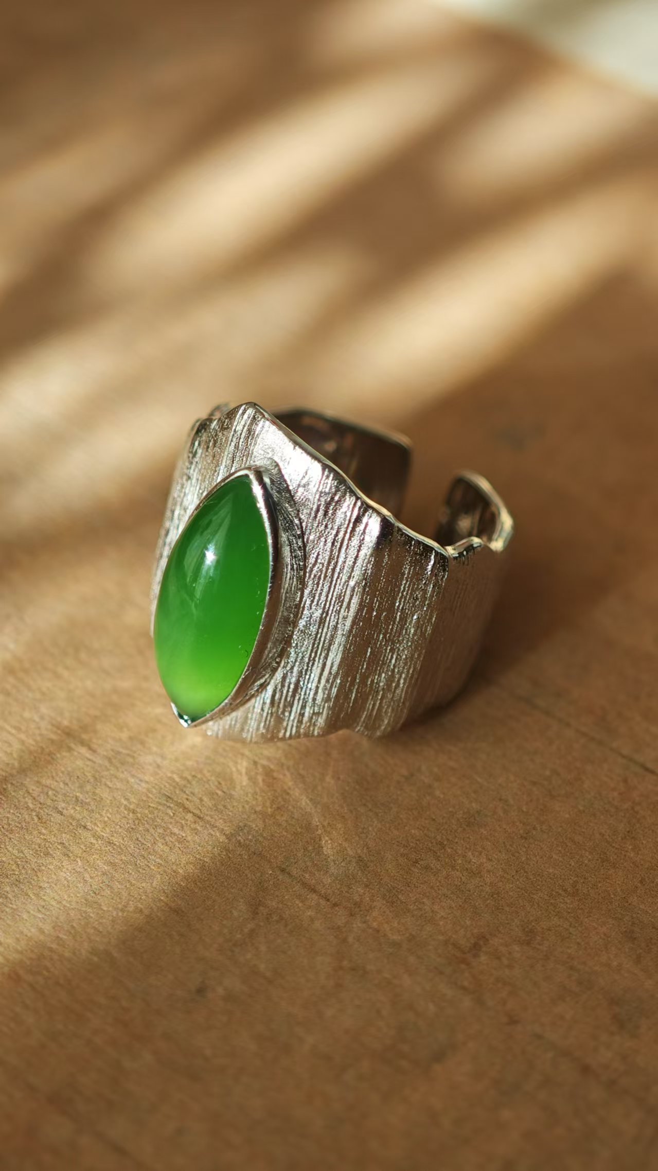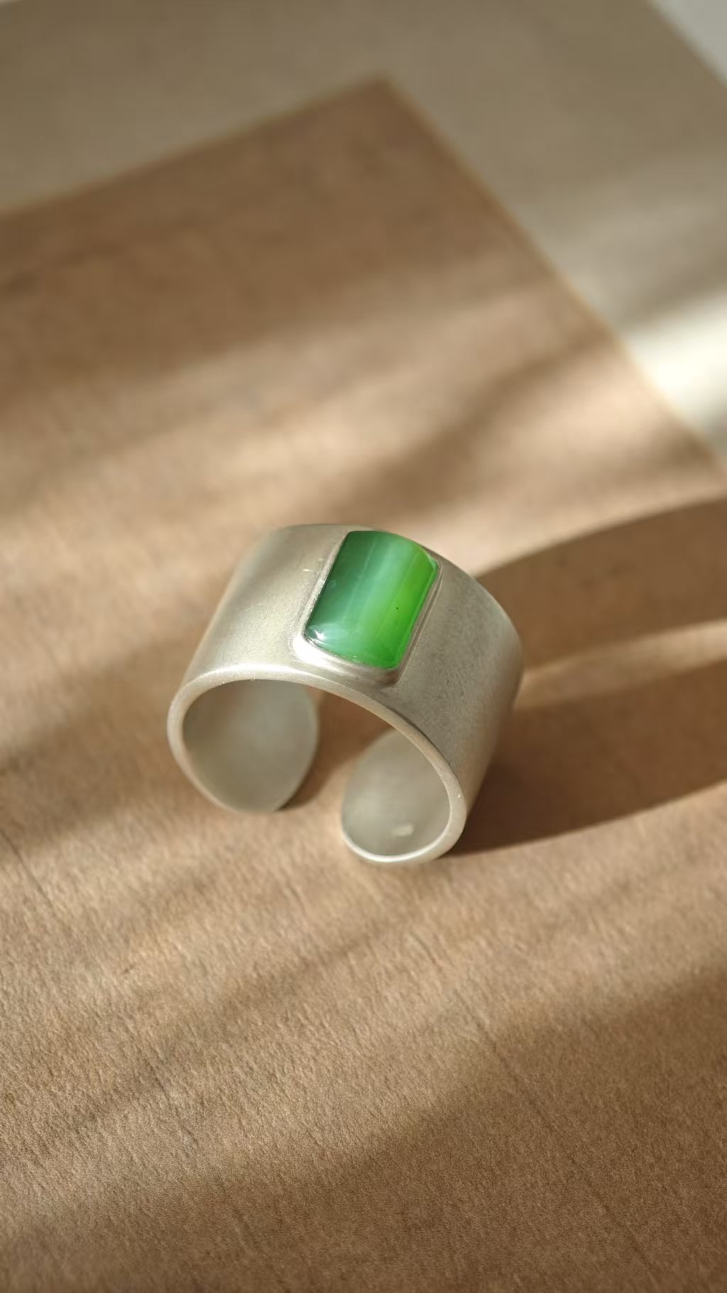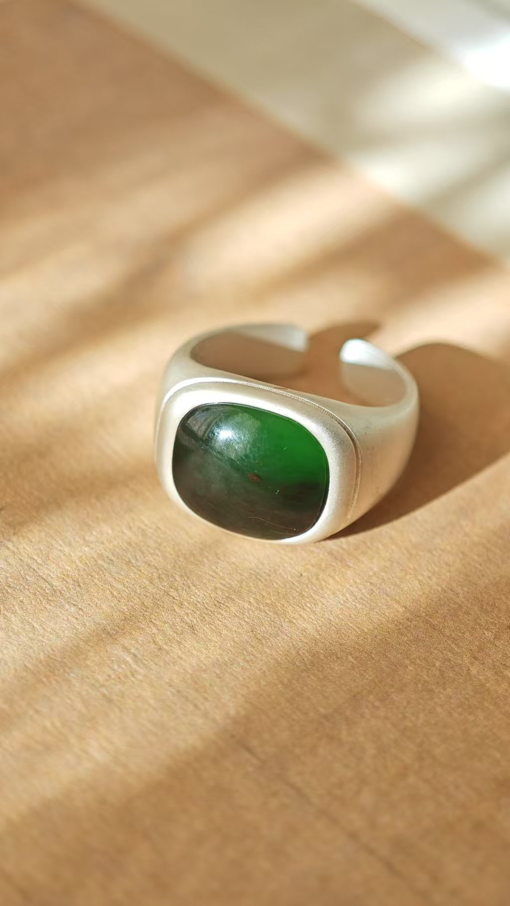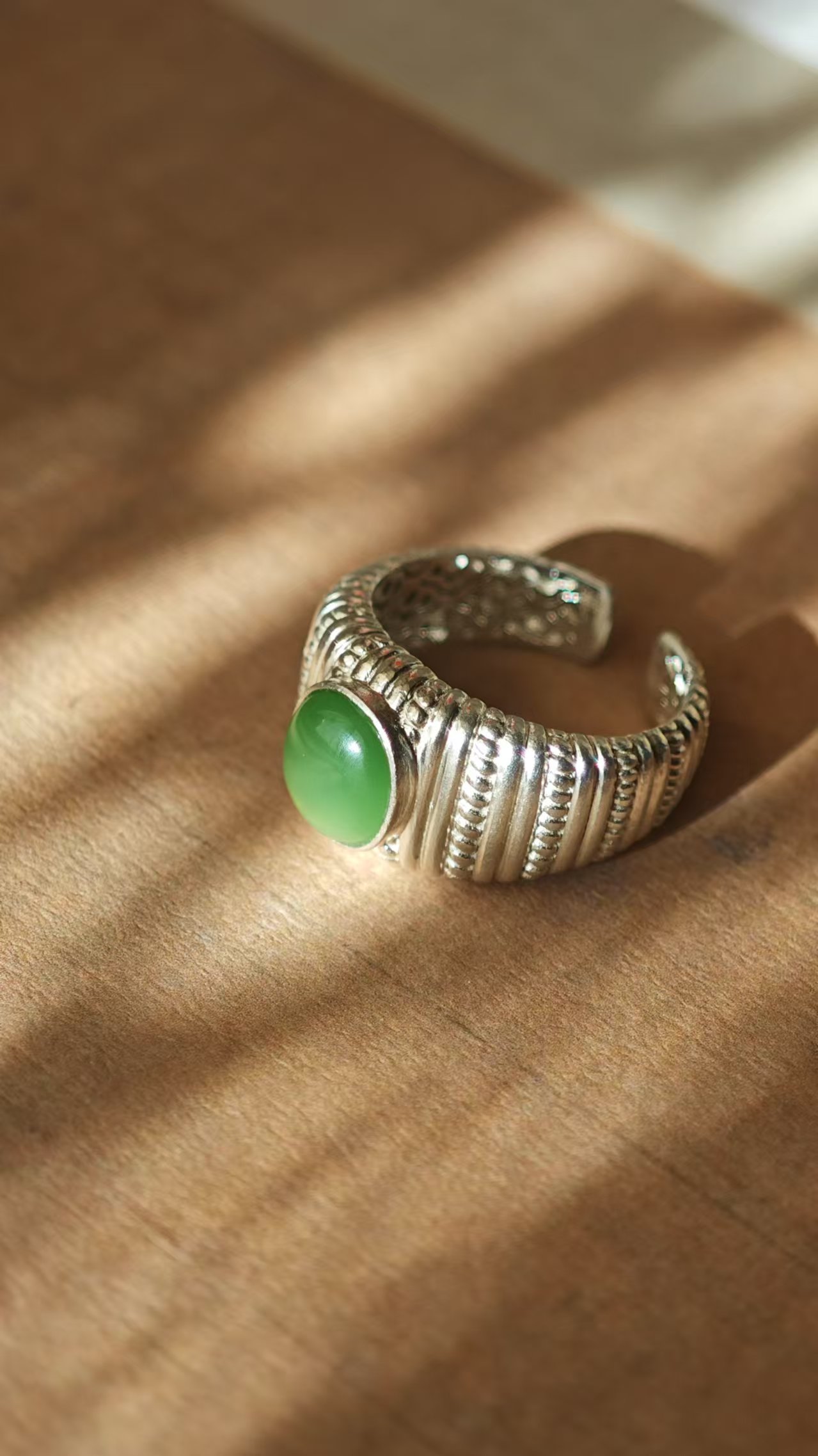 【绿意·和田玉银戒指】
