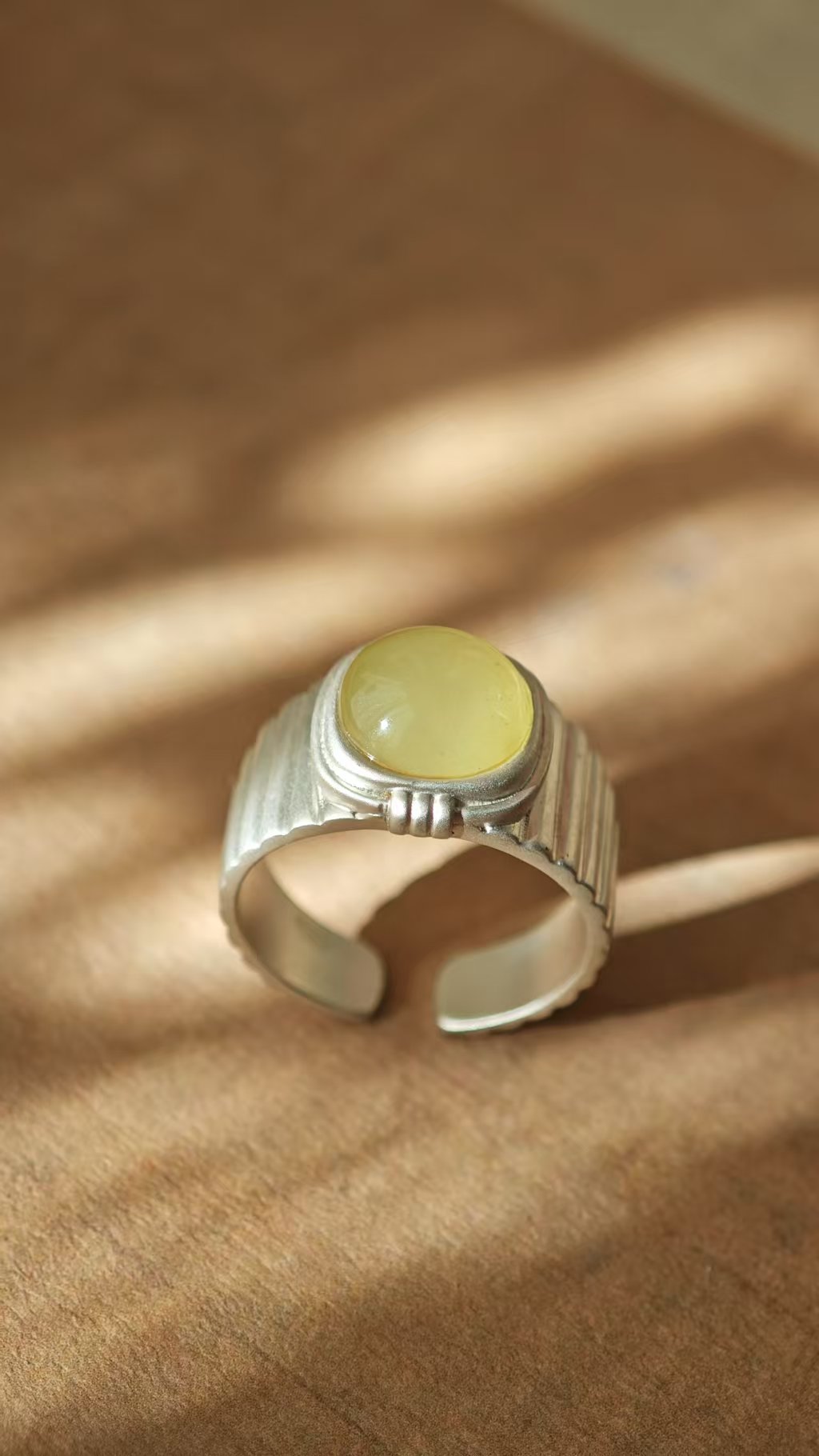 【香梨·和田玉银戒指】