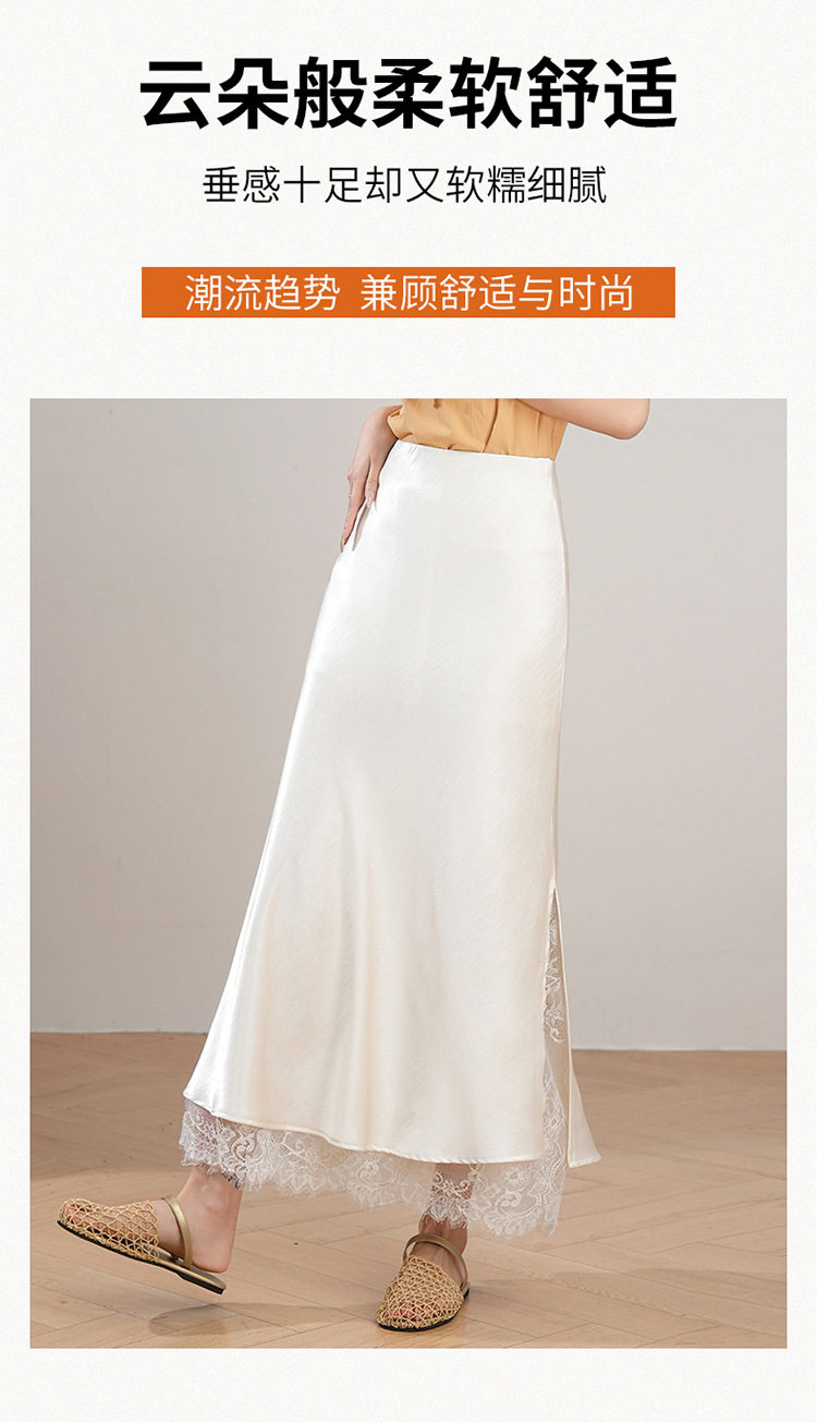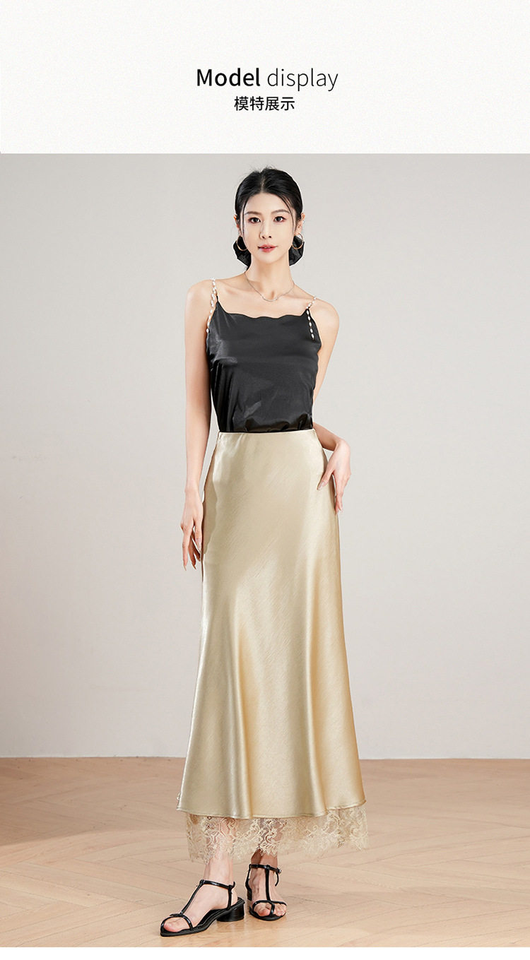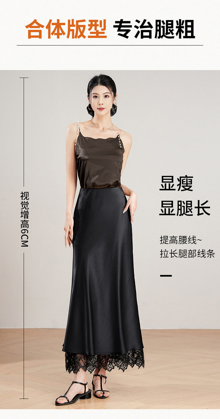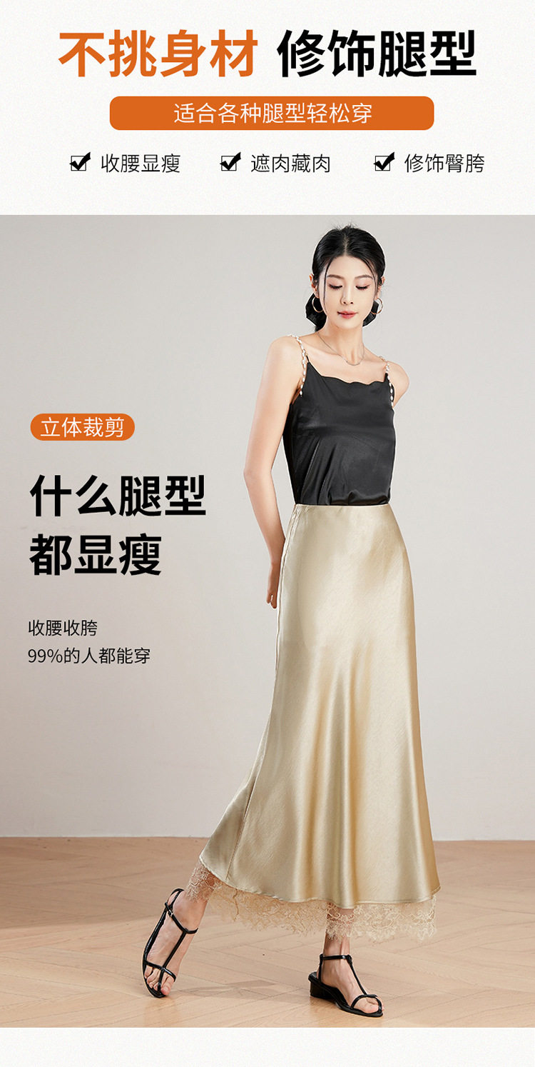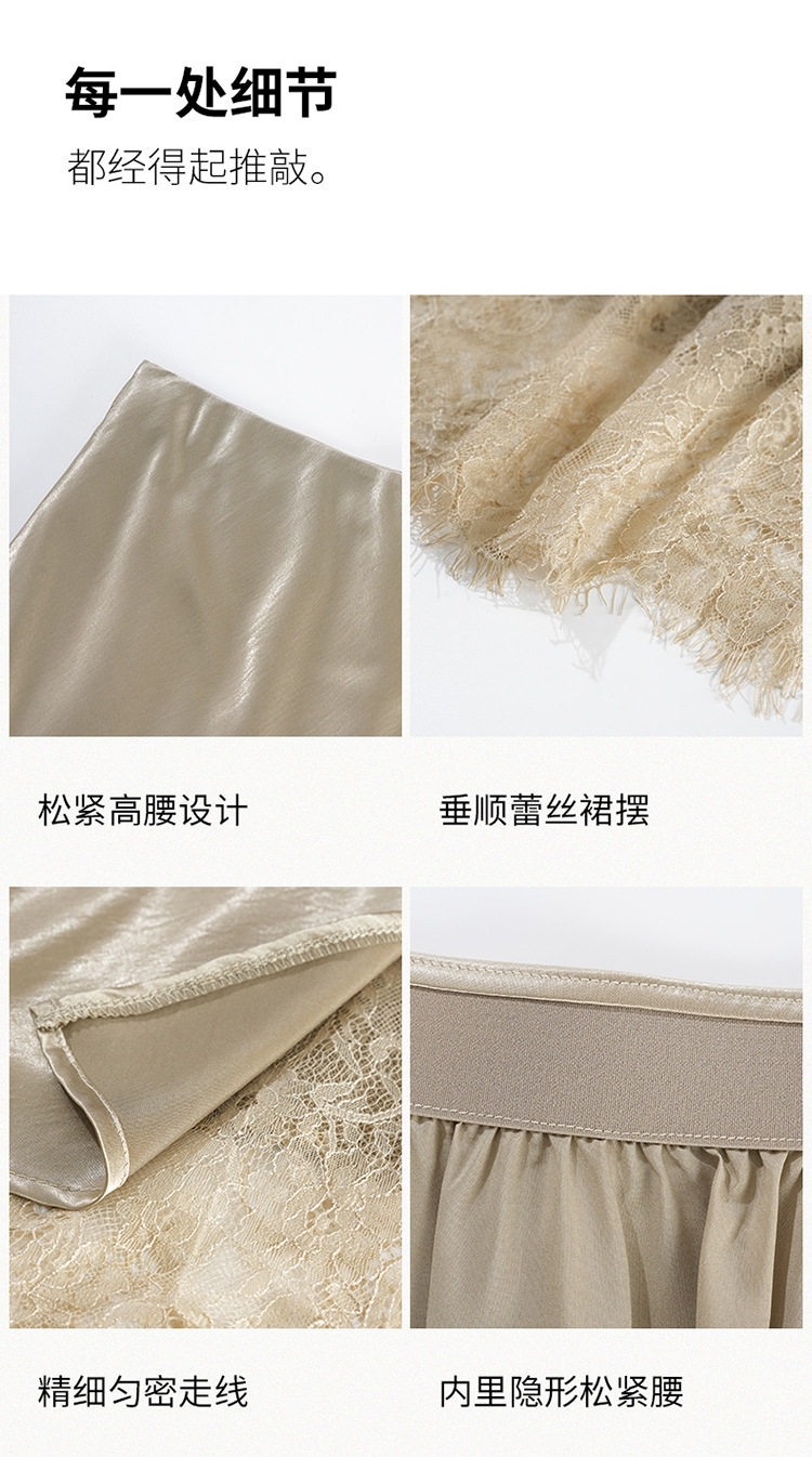「自」全新升级【铂金会员146/天猫199/差价53】(23849)洛诗琳蕾丝拼接缎面半身裙女2026夏季新款高腰中长A字裙