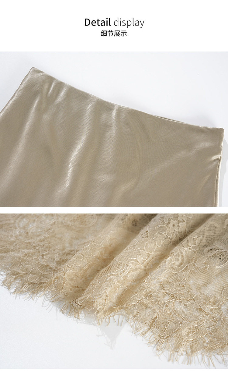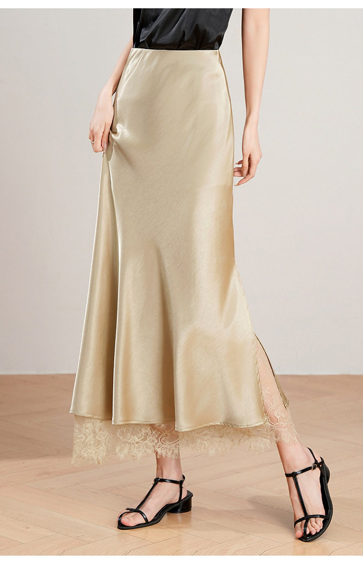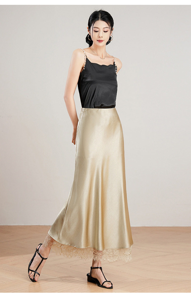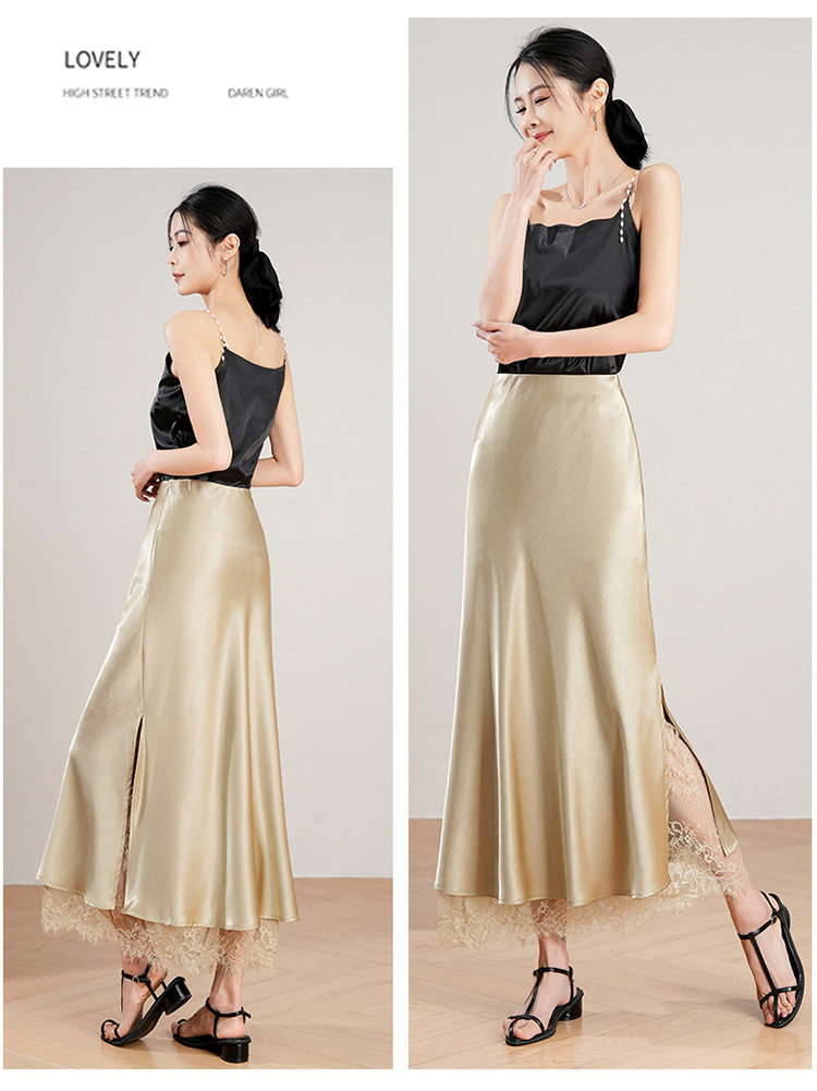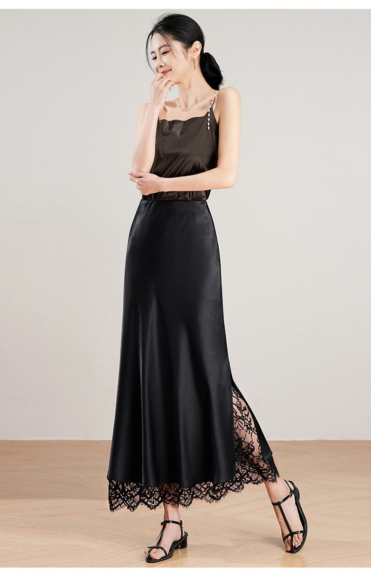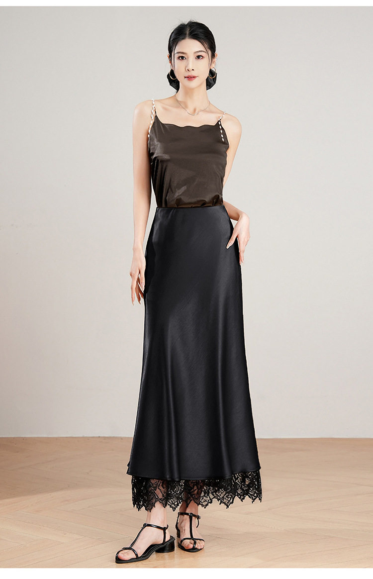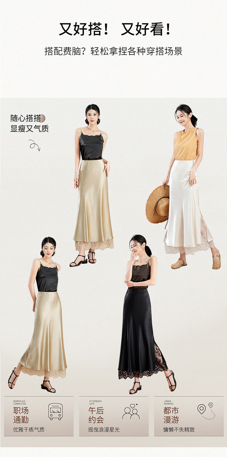 「自」全新升级【铂金会员146/天猫199/差价53】(23849)洛诗琳蕾丝拼接缎面半身裙女2026夏季新款高腰中长A字裙