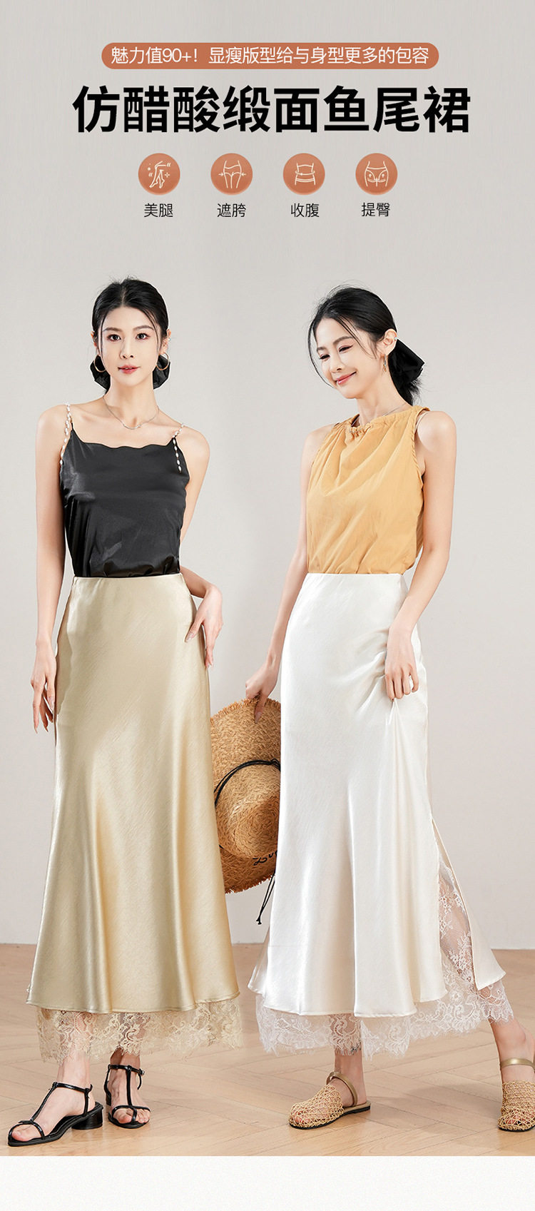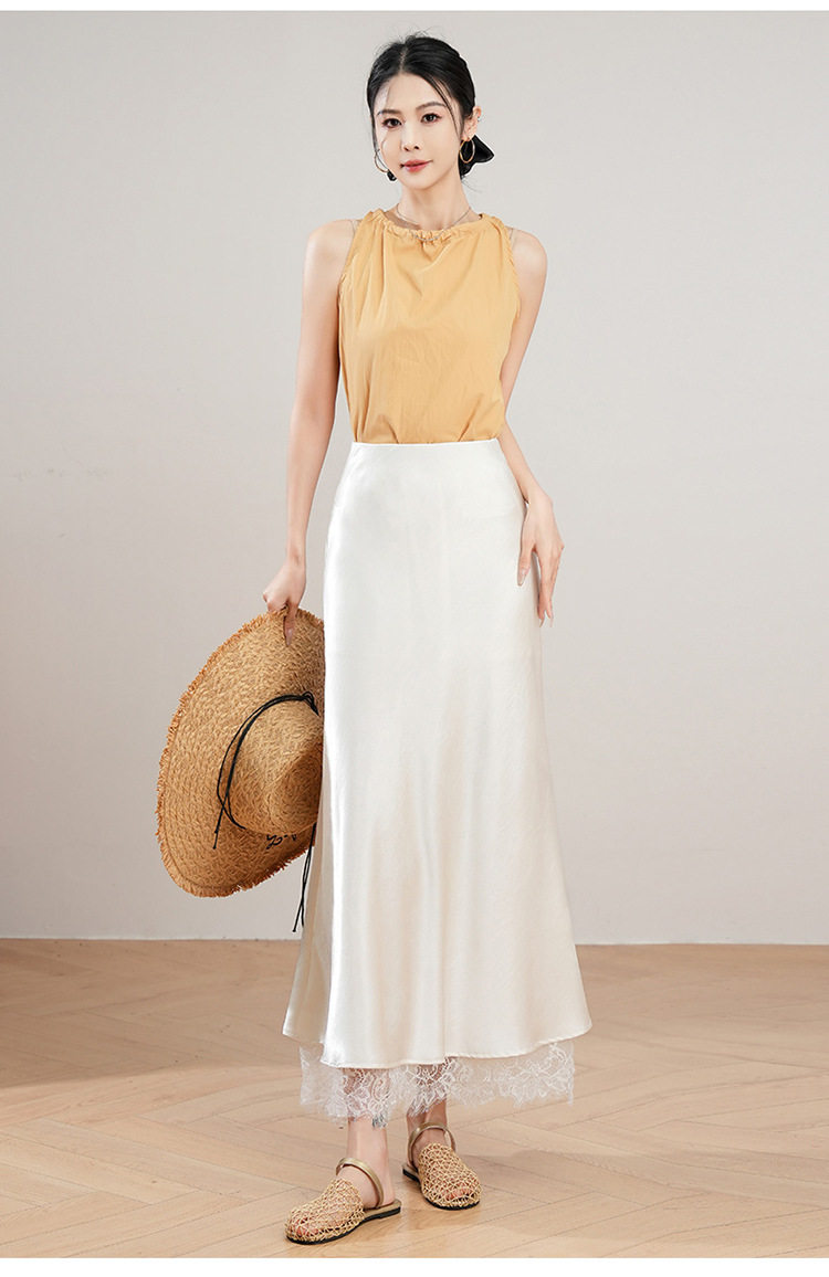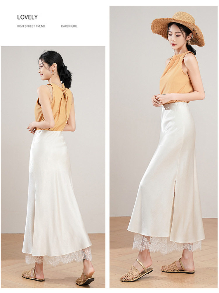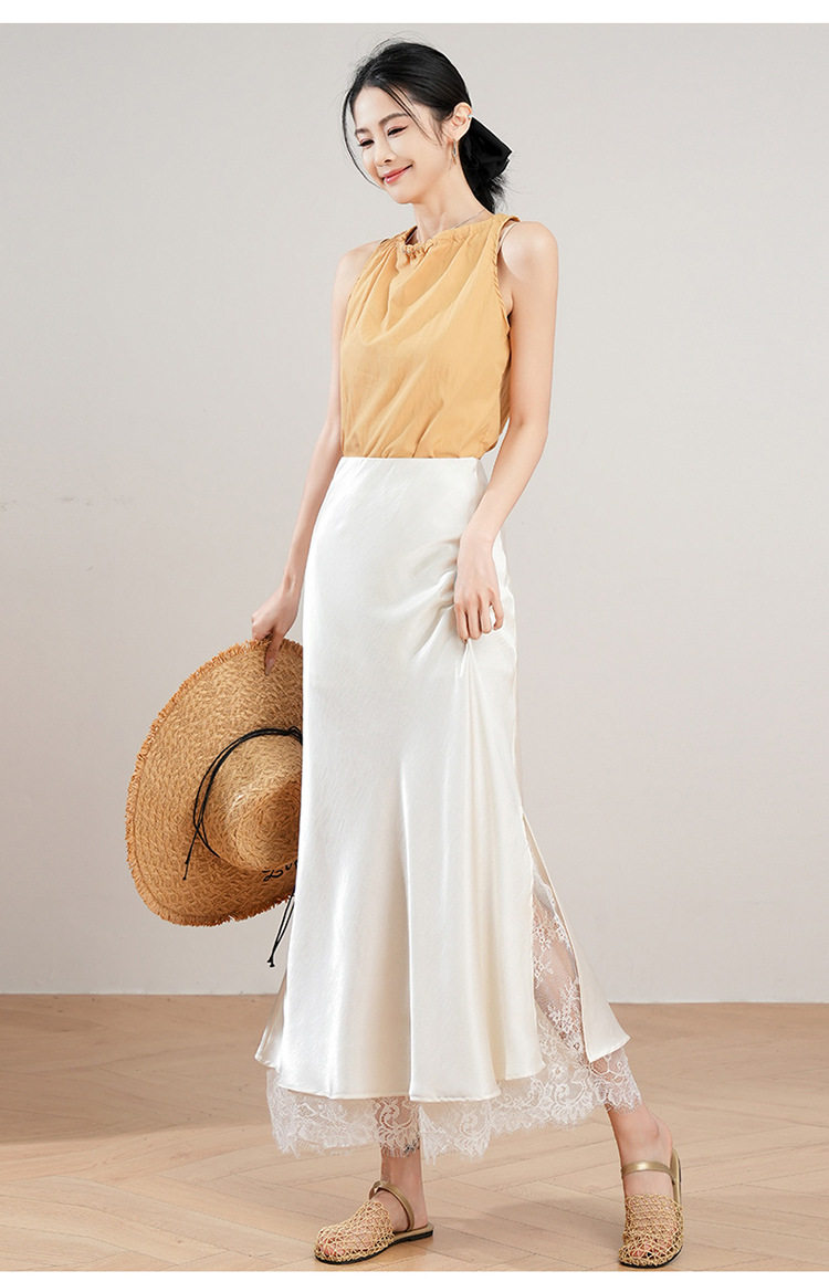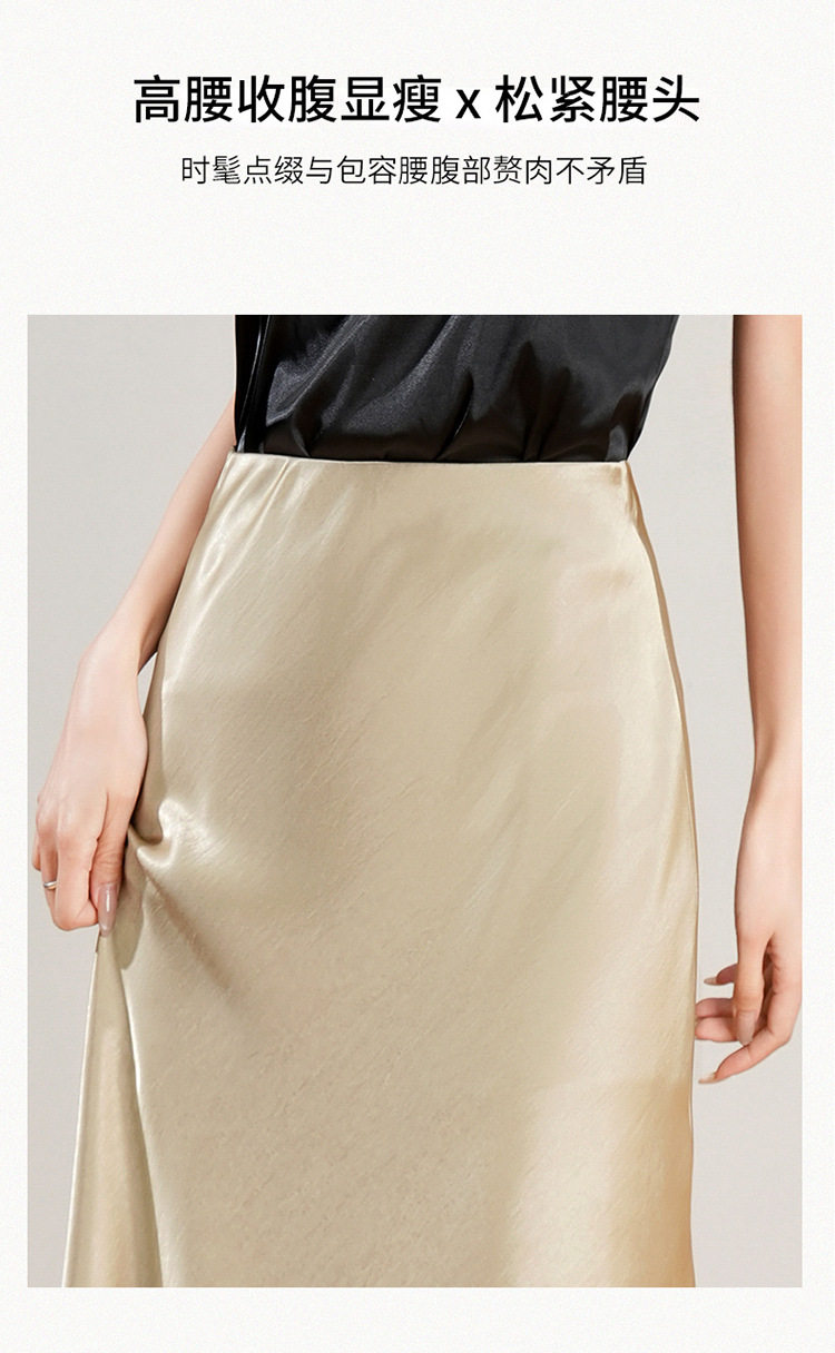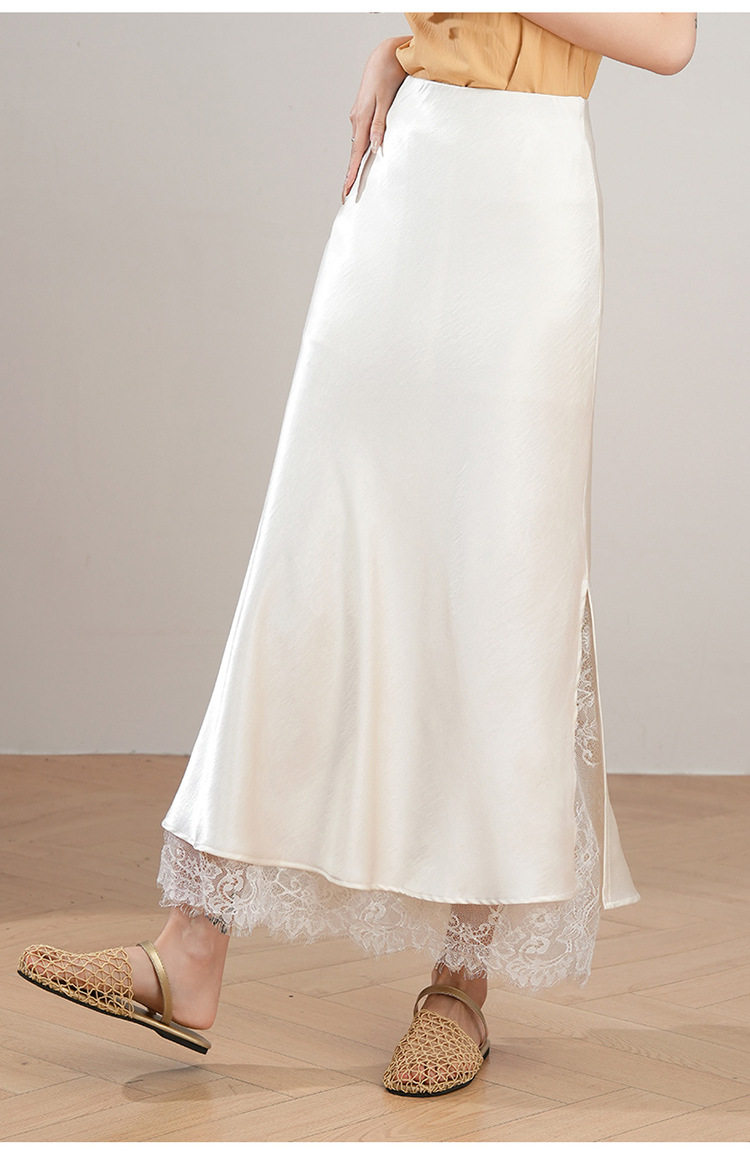 「自」全新升级【铂金会员146/天猫199/差价53】(23849)洛诗琳蕾丝拼接缎面半身裙女2026夏季新款高腰中长A字裙