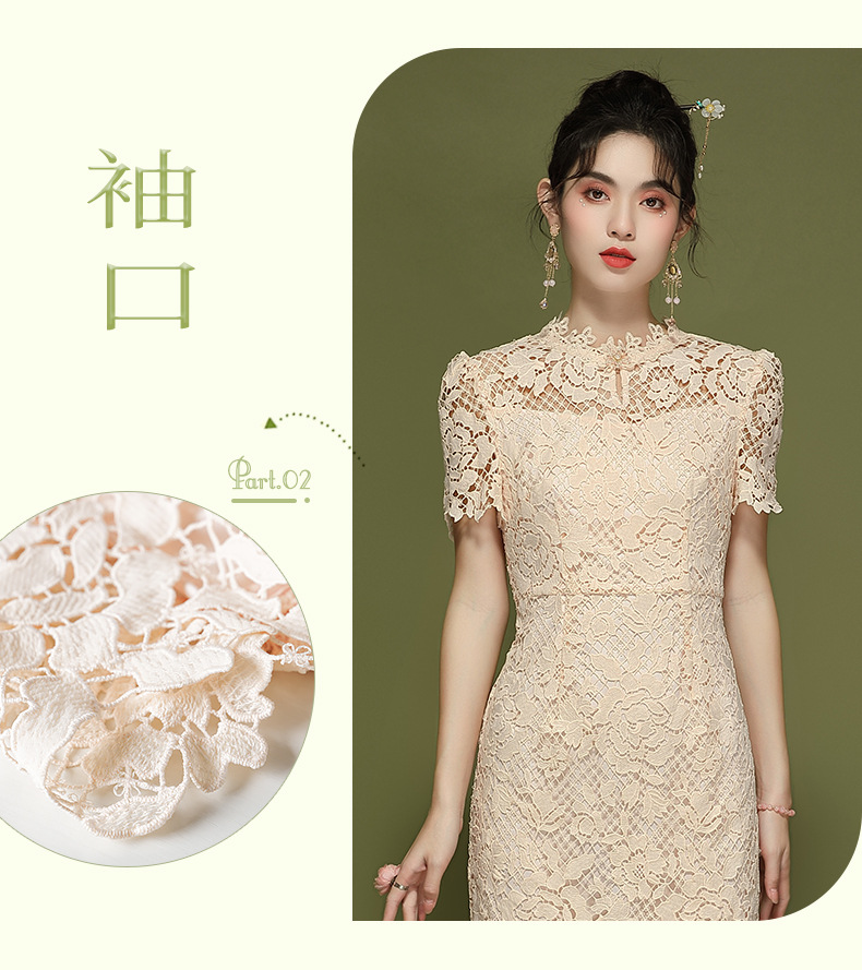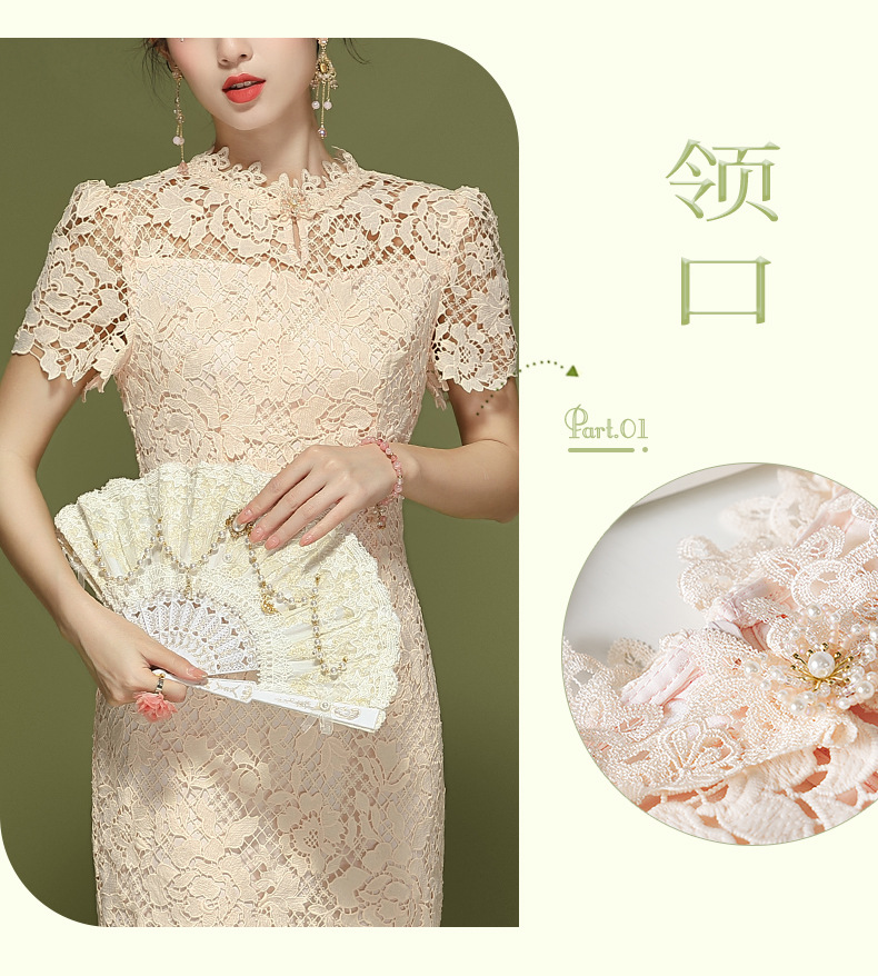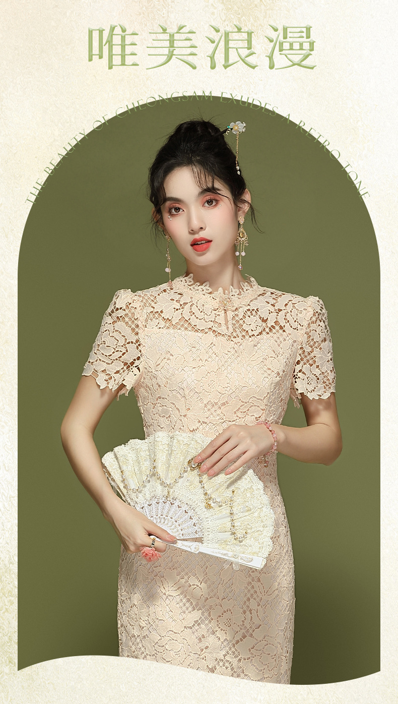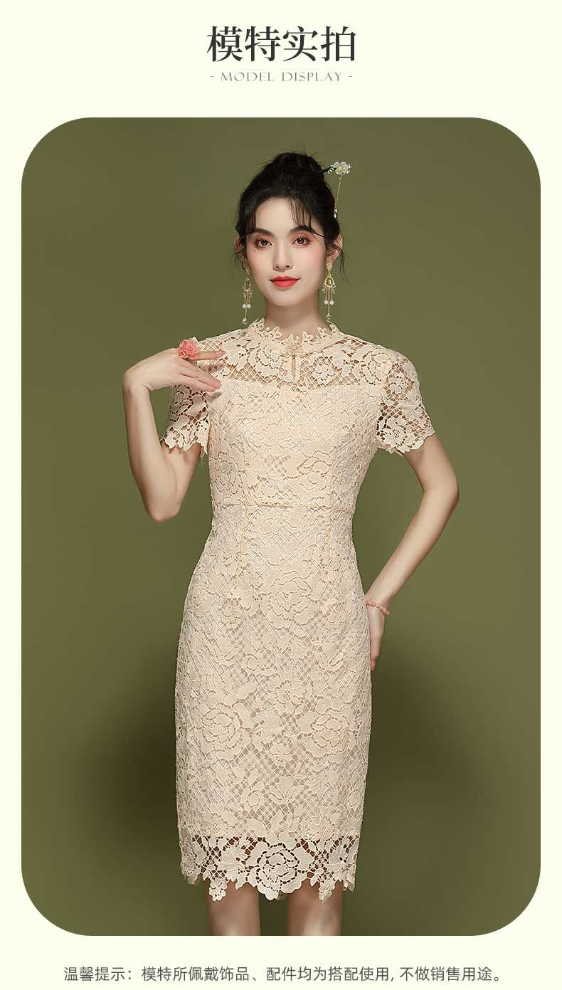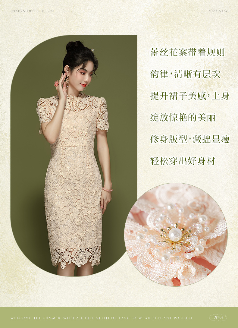 「自」全新升级【铂金会员358/天猫479/差价121】(90306)洛诗琳新中式国风水溶蕾丝连衣裙2025夏季气质改良旗袍裙