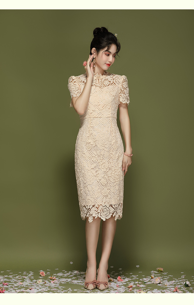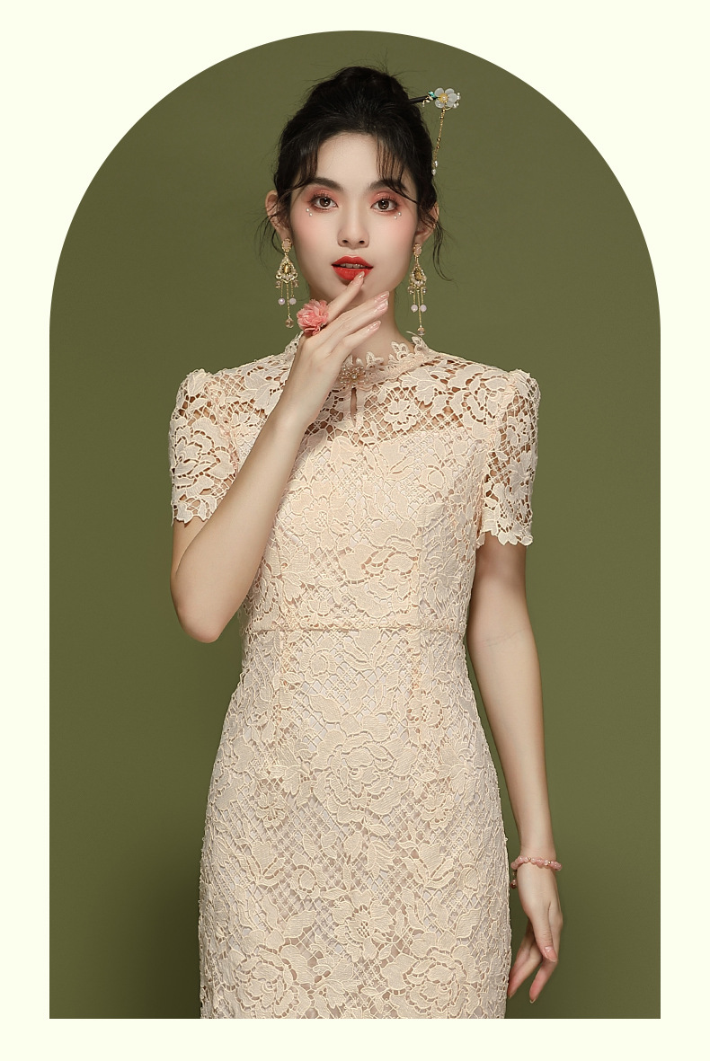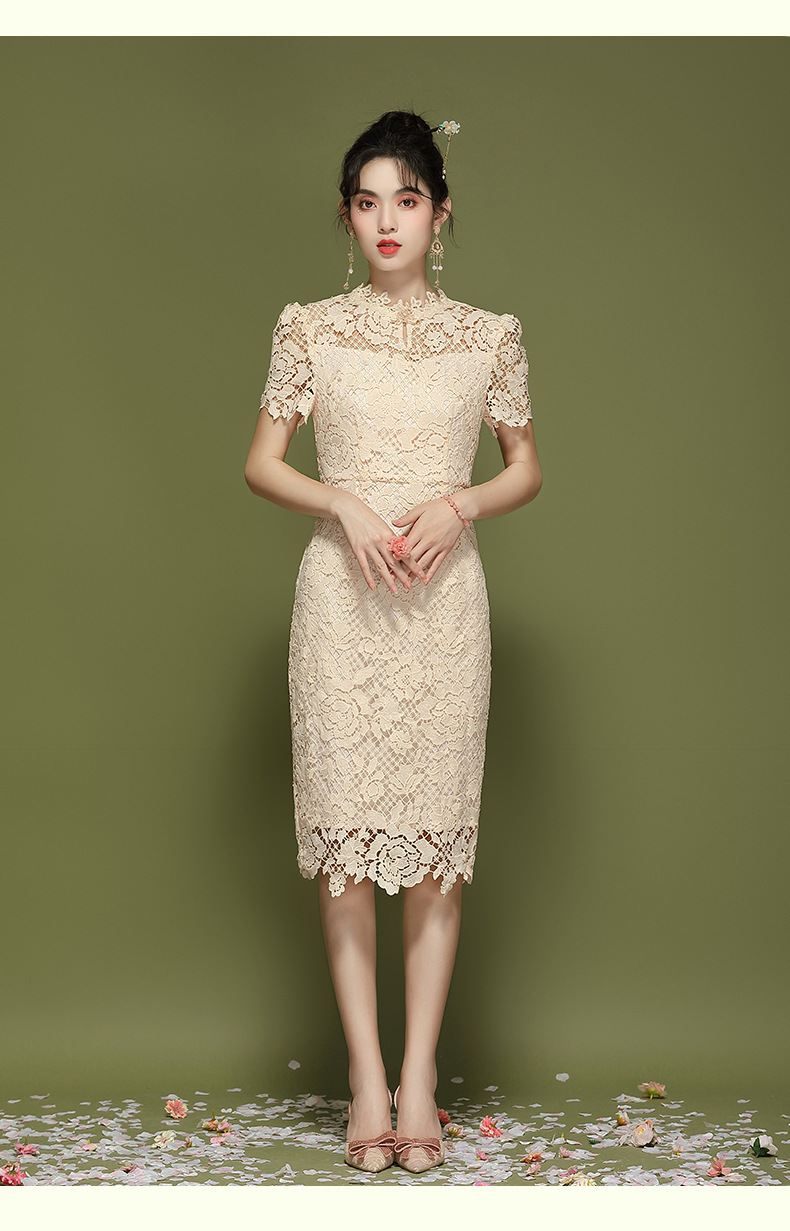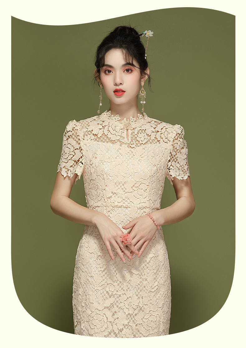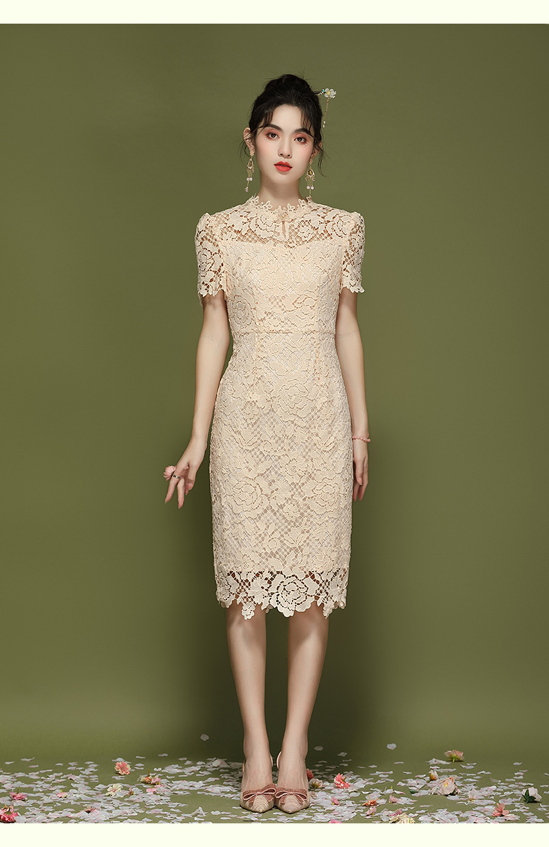 「自」全新升级【铂金会员358/天猫479/差价121】(90306)洛诗琳新中式国风水溶蕾丝连衣裙2025夏季气质改良旗袍裙