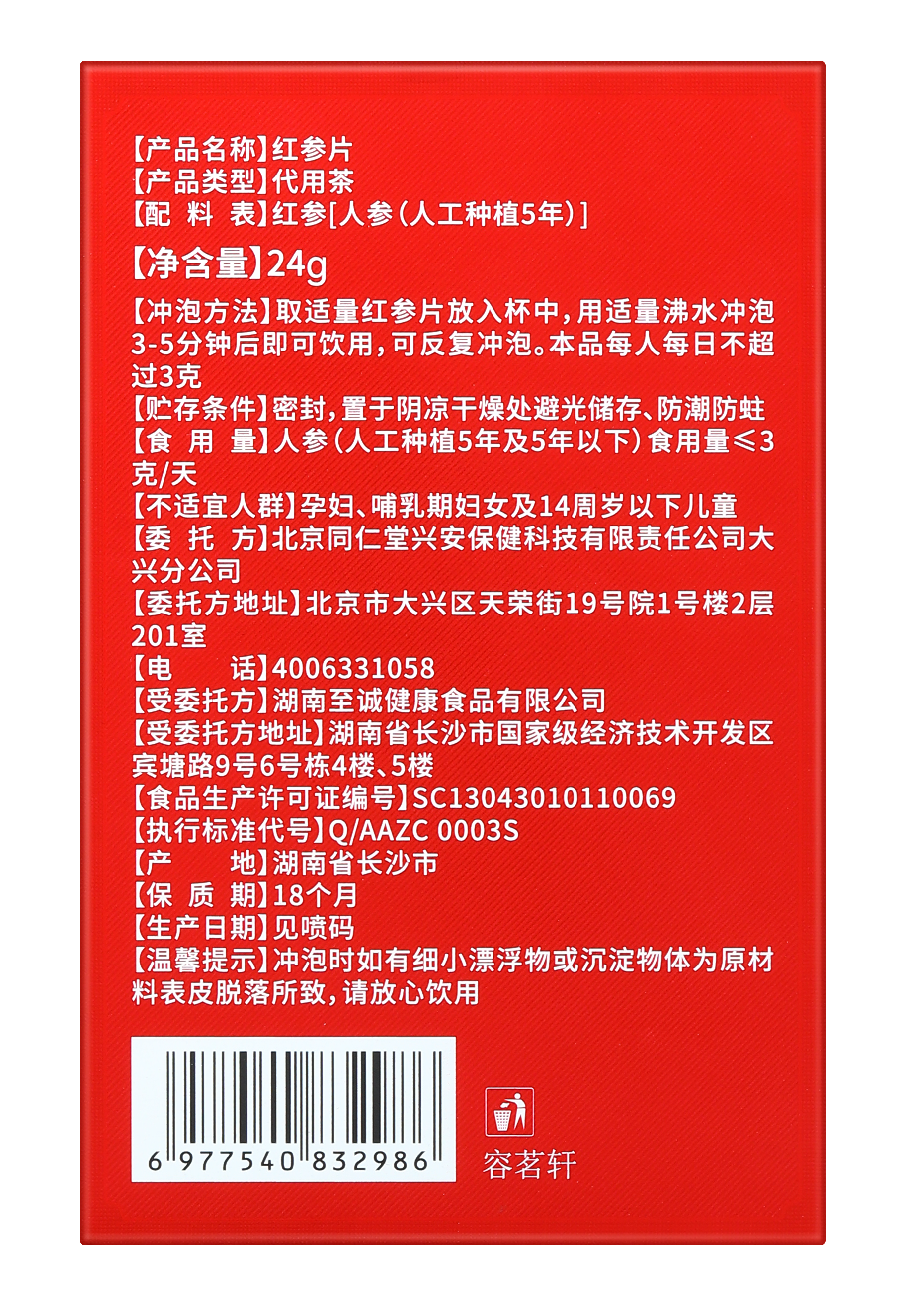 北京同仁堂内廷上用红参片24g*3盒礼盒款