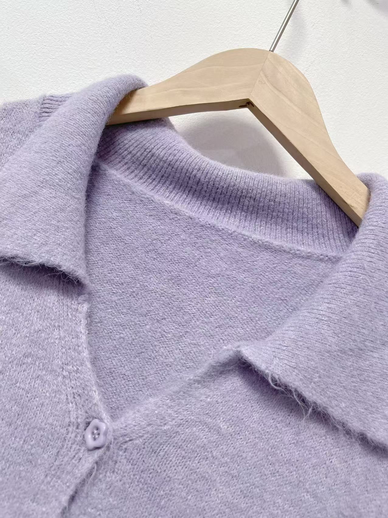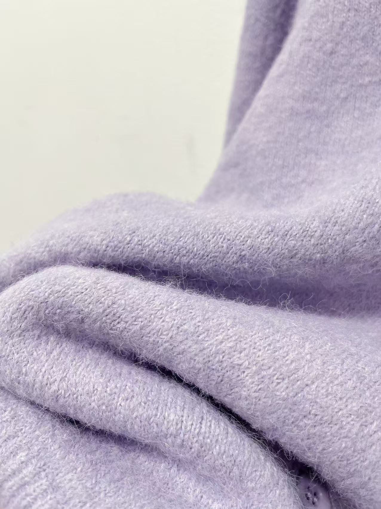清了!清!不支持退货 自营【超美针织衫】M27韩系毛绒感紫色V领针织开衫毛衣-喜出