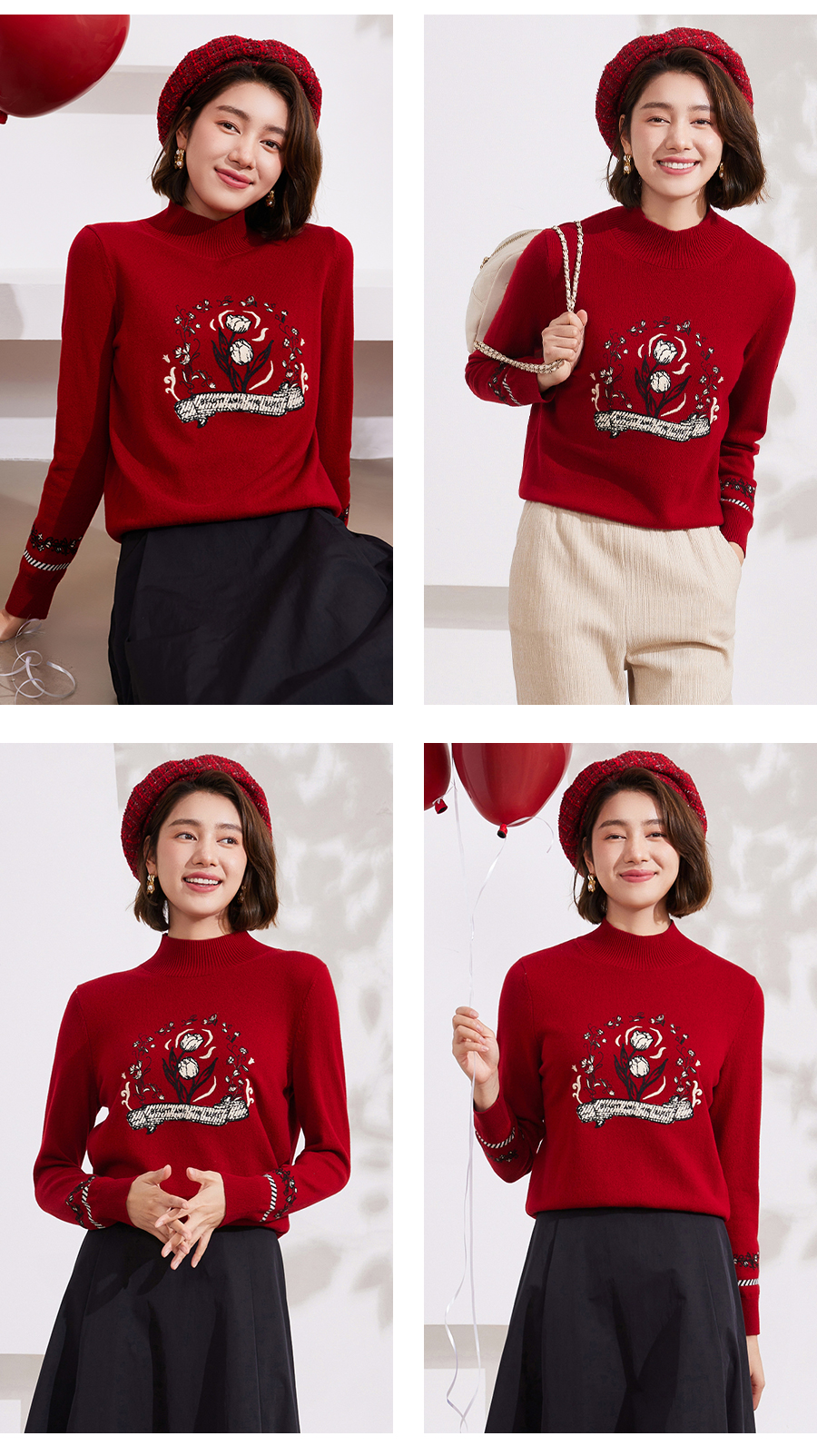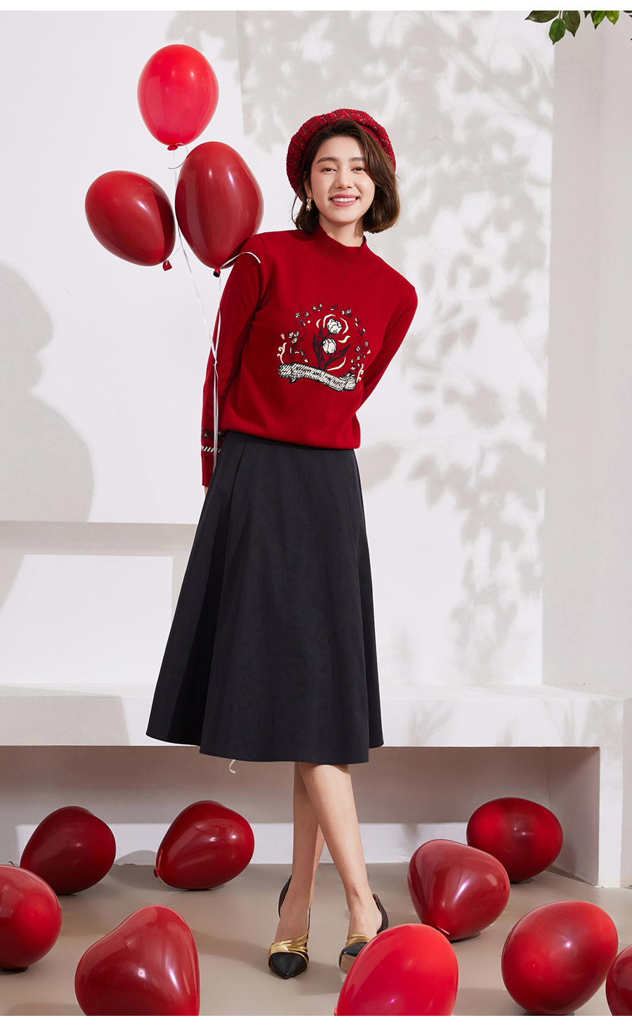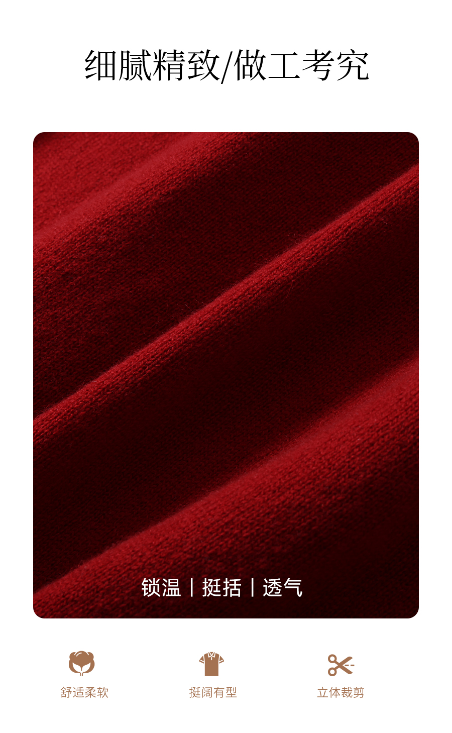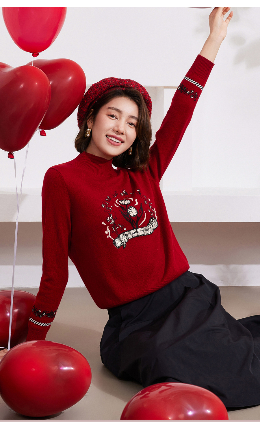 乔万尼正红羊毛针织打底衫温柔知性雅致针织上衣ET4M859