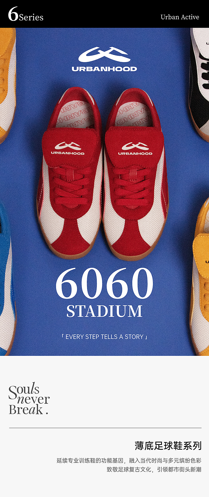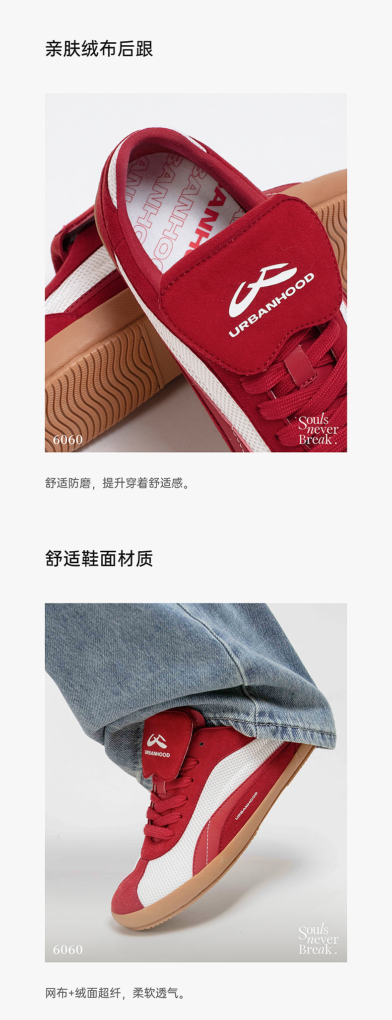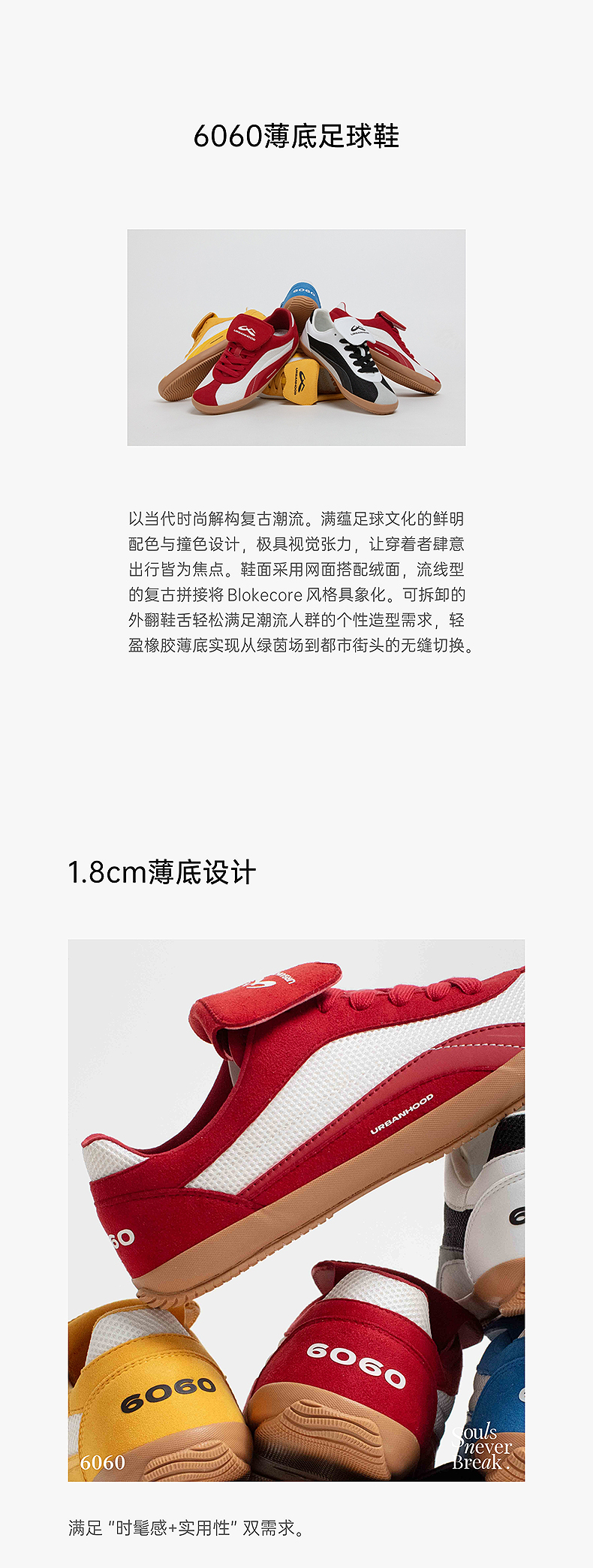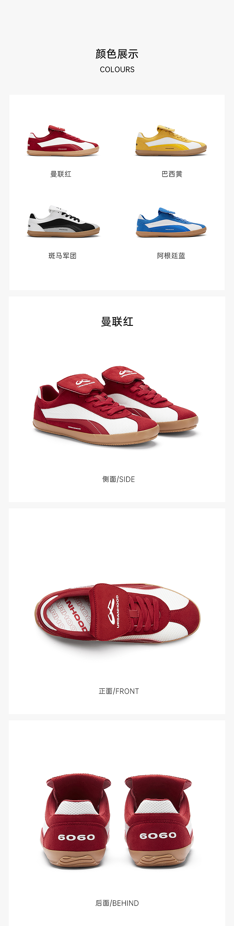 URBANHOOD 6060系列复古翻盖鞋防滑耐磨低帮薄底足球板鞋德训鞋