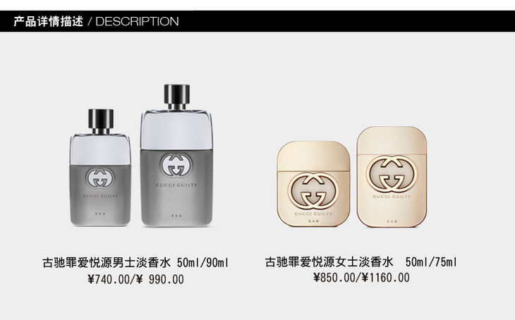 GUCCI 古驰罪爱悦源男士淡香水50ml/90ml