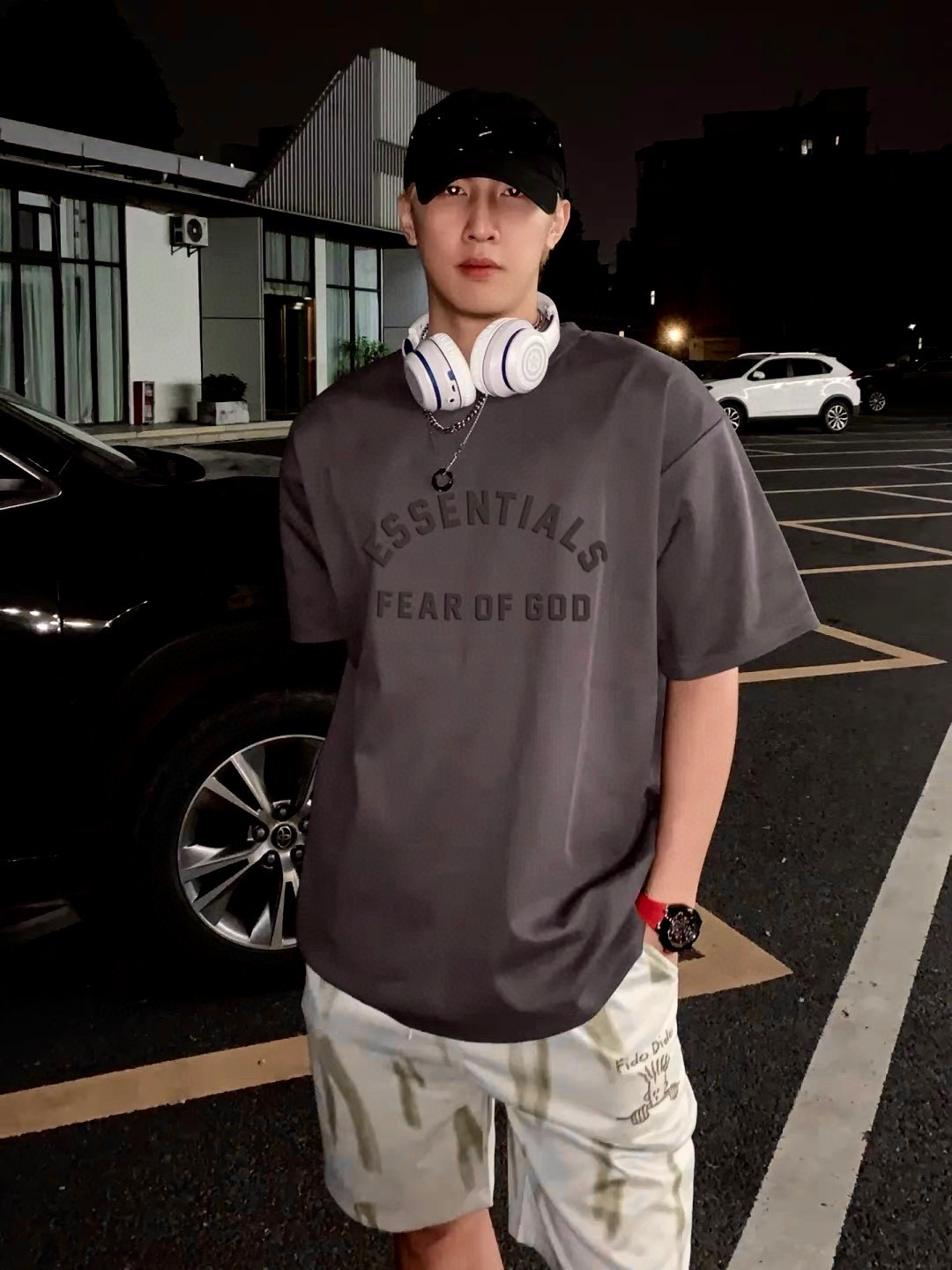 105 货号090852105 md ESSENTIALS FEAR OF GOD FOG 硅胶植绒字母印花重磅高街短袖 情侣款