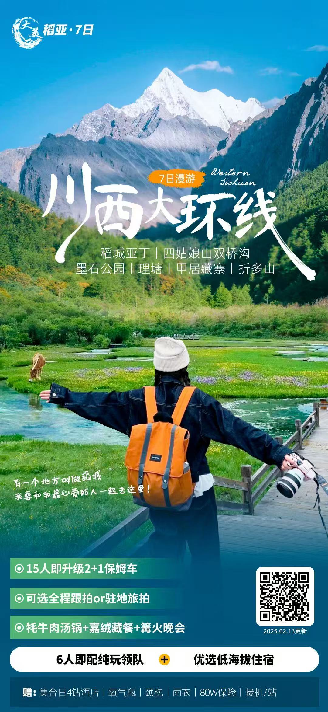 【大美稻亚7日】川西大环线 ·稻城亚丁+四姑娘山双桥沟+墨石公园+理塘+甲居藏寨+折多山