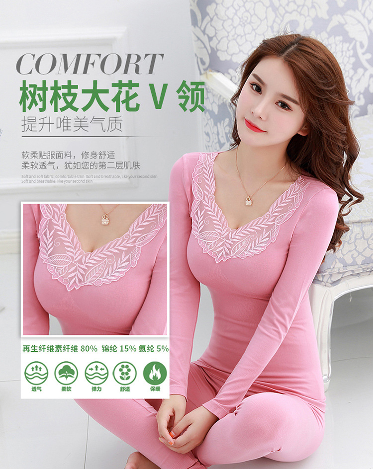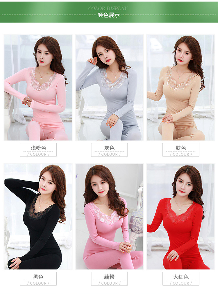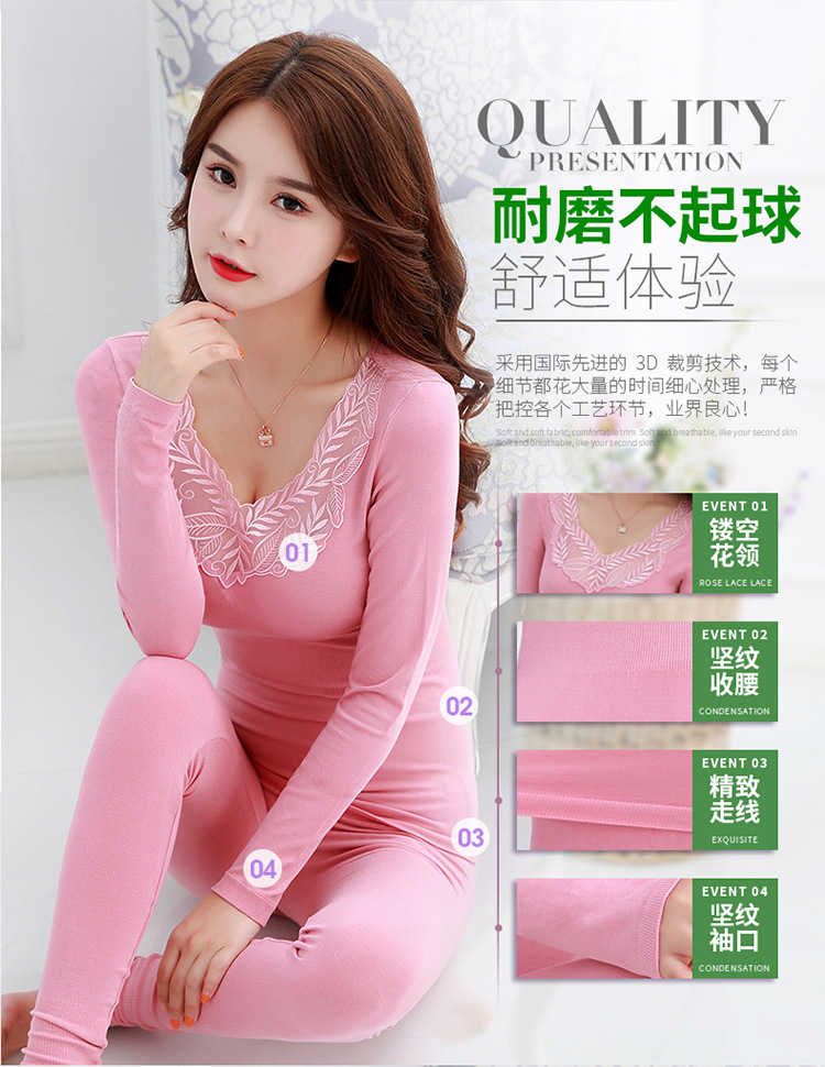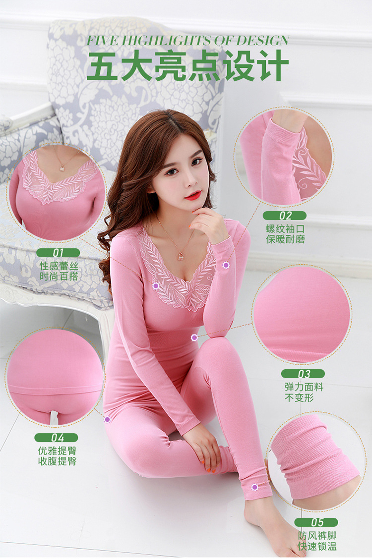 HJM-9906蕾丝塑身美体秋衣秋裤女保暖内衣套装