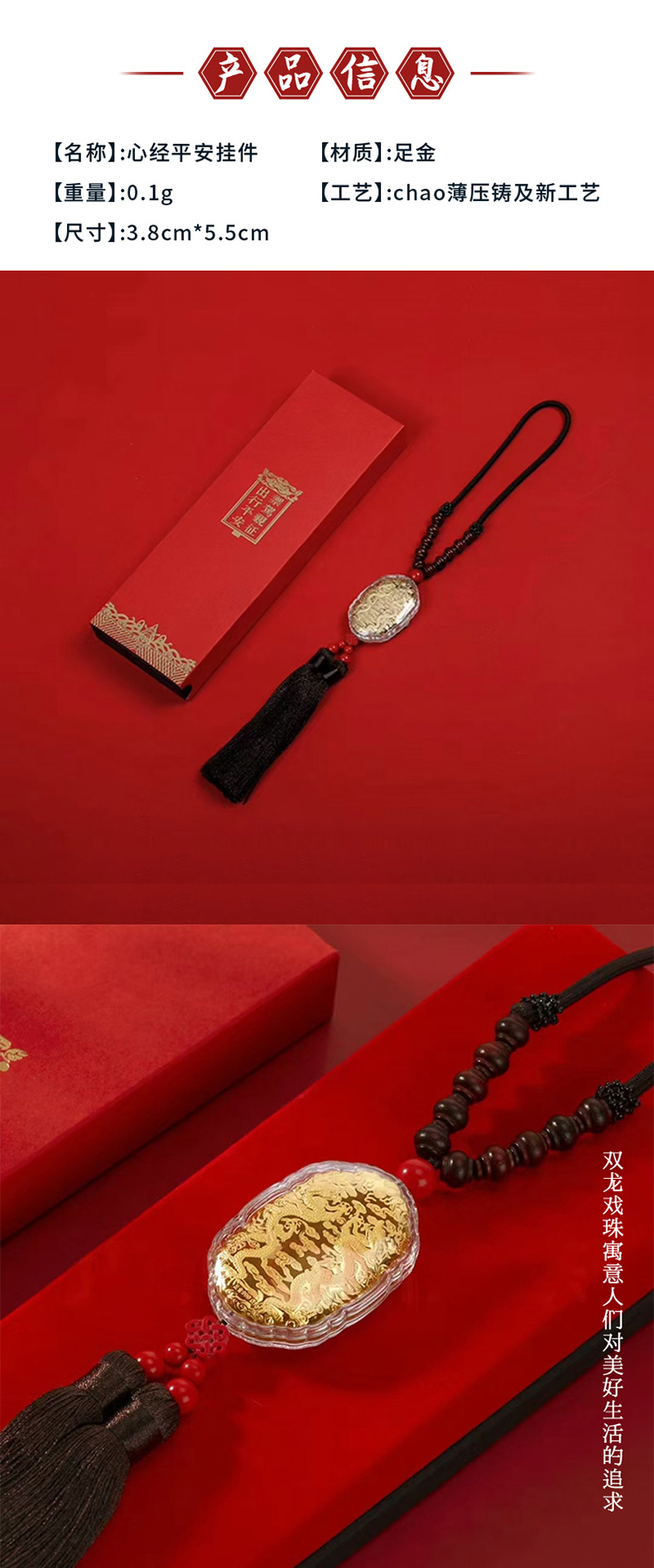 双龙平安车挂足金创意装饰 心经平安挂件 车载高档挂饰