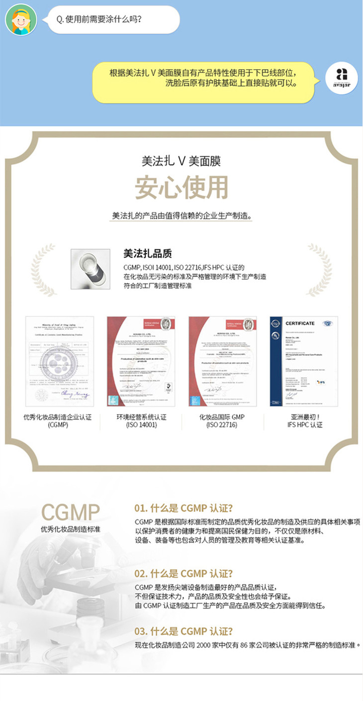 韩国美法扎V脸面膜 | 紧致肌肤,滋润肤质,让你变成小V脸