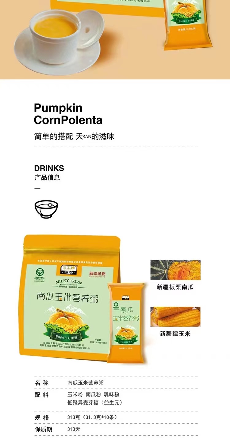 三工滩南瓜玉米营养粥313g/袋 独立包装 冲饮即食