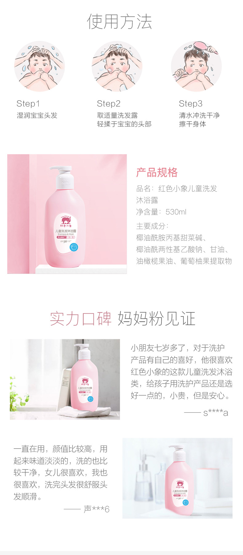 红色小象儿童洗发沐浴露530ml(买一送一)