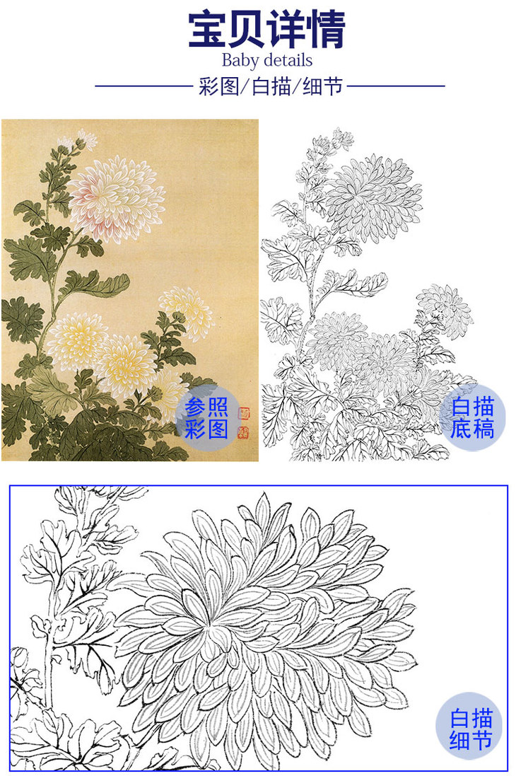 李晓明竖幅条屏工笔花鸟白描底稿-牡丹《富贵白头立轴》-多种白描尺寸可选-K048