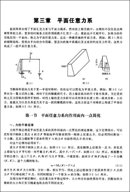 第一篇 静力学 第一章 静力学的基本概念和物体的 受力分析 第一节 静力学的基本概念 第二节 静力学公理 第三节 约束 一、基本约束 二、支座 第四节 荷载 第五节 物体受力分析 习题 第二章 平面汇交力系及平面力偶系 第一节 平面汇交力系合成的几何法 第二节 平面汇交力系合成的解析法 一、力在坐标轴上的投影