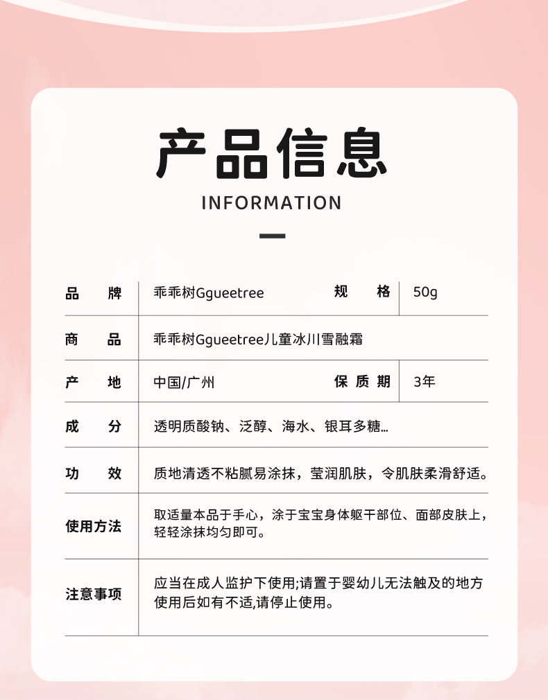 超值2瓶!【保湿不粘腻❗️呵护宝宝肌肤】乖乖树儿童冰川雪融霜补水保湿多效修护晒后舒缓滋润清爽儿童面霜。jb