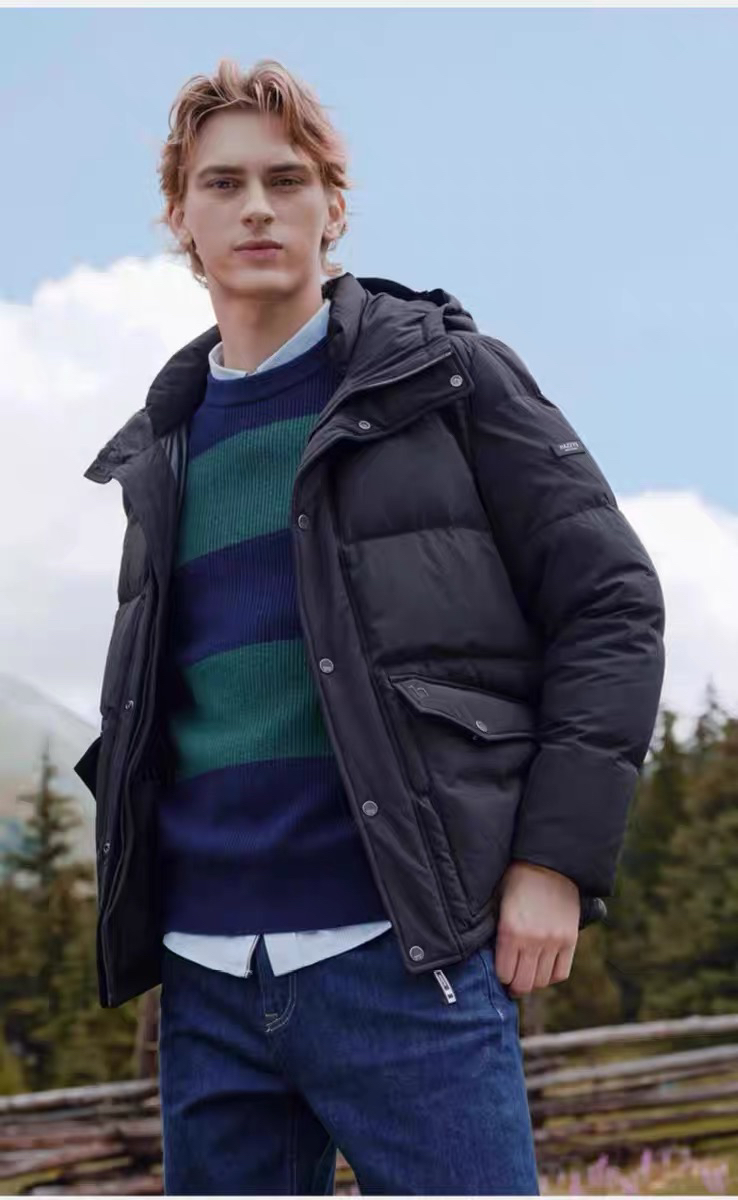 简约高级的夹克版型 完美融合英伦风格和现代工装美学,低调又优雅 一秒提气质,百搭款老爸老公都能够轻松驾驭~大身采用客供定织锦纶面料 可防风防轻微泼溅,内层手感爽滑舒适,即使在滑雪运动中也能保持完美的体感!内里填充大朵鸭绒,85%的绒子含量 高蓬松度轻盈不压身,同时牢牢固暖锁温。立体裁剪工艺勾勒男士的挺拔身姿 上身利落不臃肿,时尚又有型!多口袋的设计拿捏工装潮酷感,同时让出行更便捷,通勤商务穿成熟稳重,滑雪徒步等运动穿休闲松弛感,轻松拿捏不同场景!