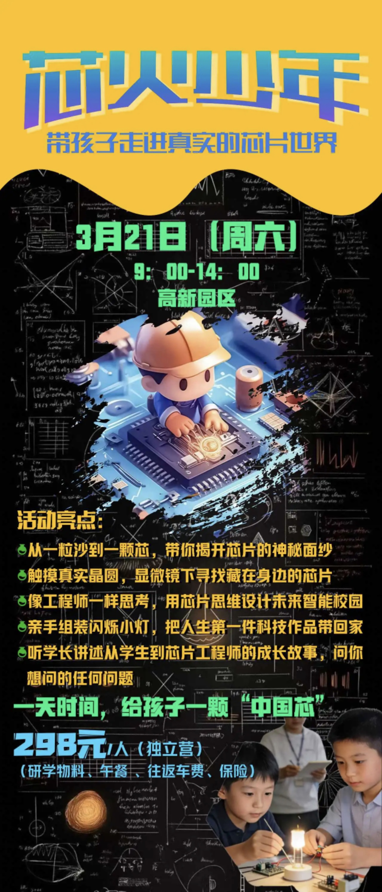 硬核科技研学1日营来啦!揭秘芯片从沙到芯全流程,触摸真实晶圆、显微镜探微观芯片,对话工程师+亲手造科技作品,零基础也能学!