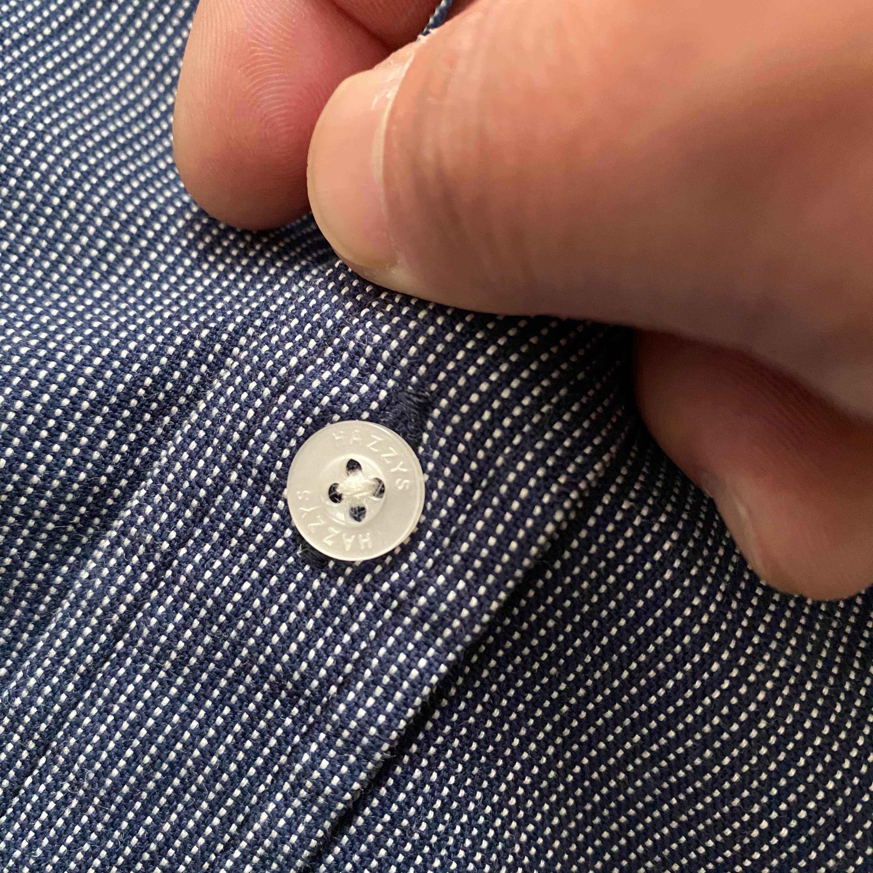 扣子全部激光定位。穿着上身挺阔有型,
