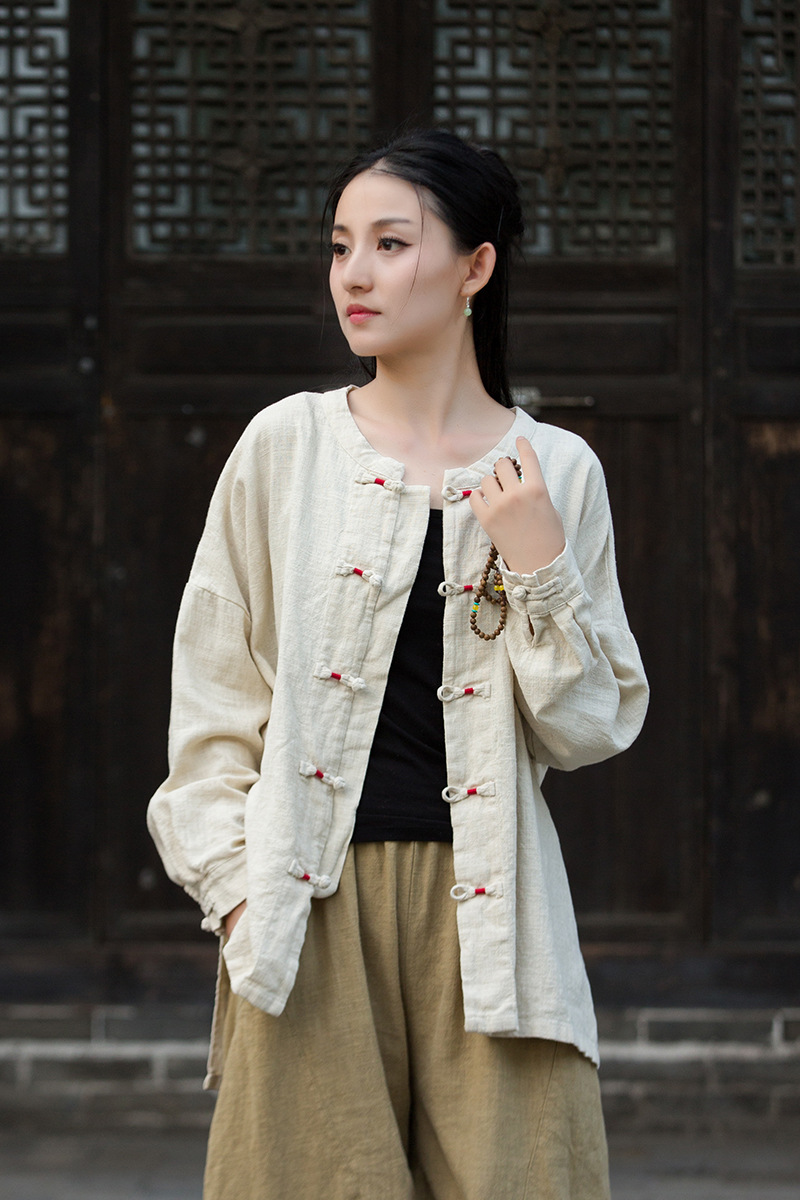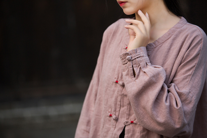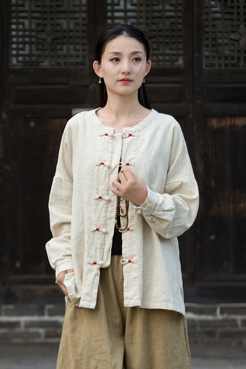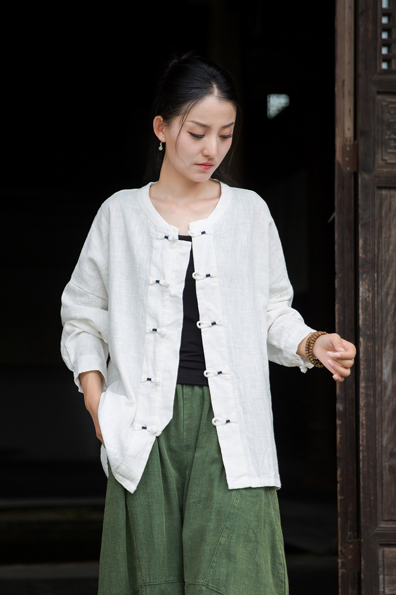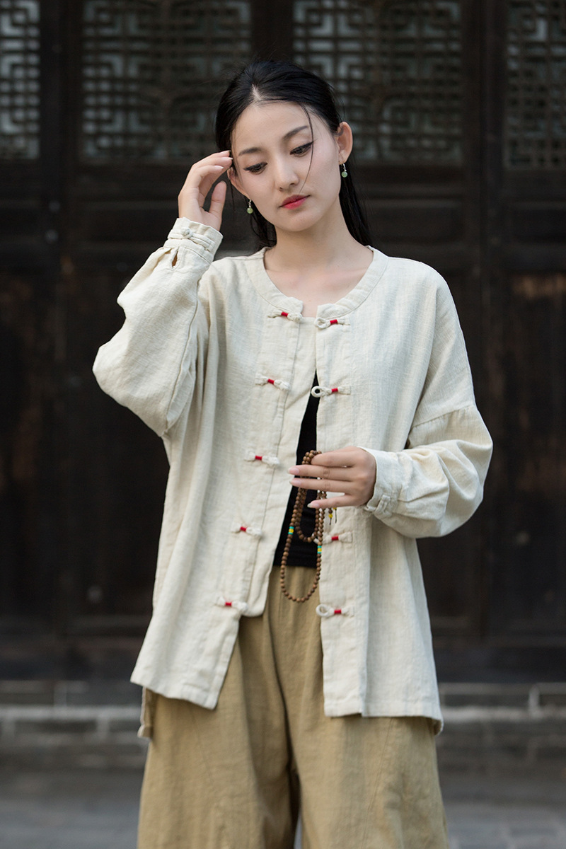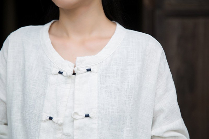 雀说棉麻女装新品复古盘扣新中式衬衫女宽松文艺国风禅意茶服上衣AL3391