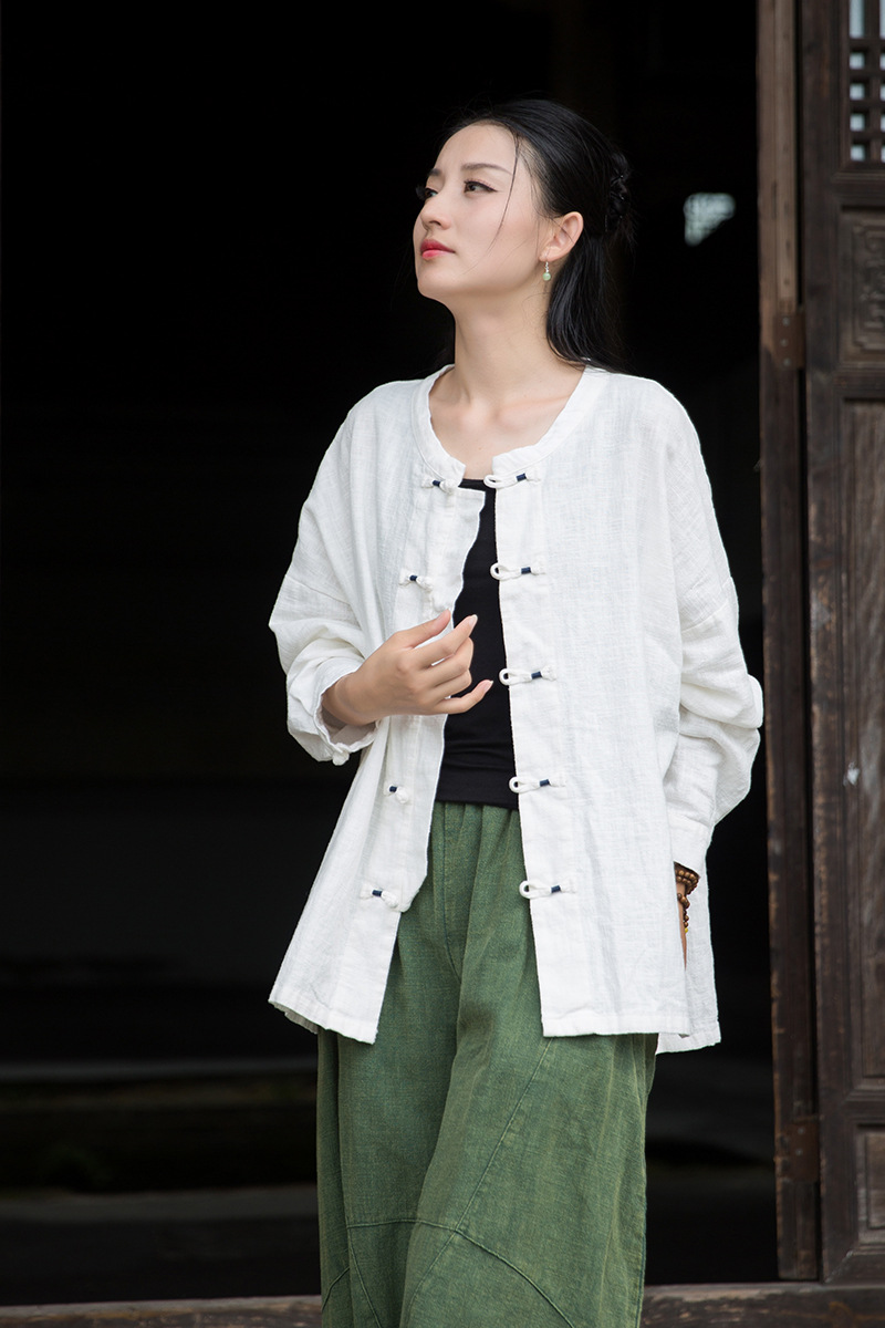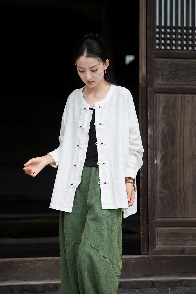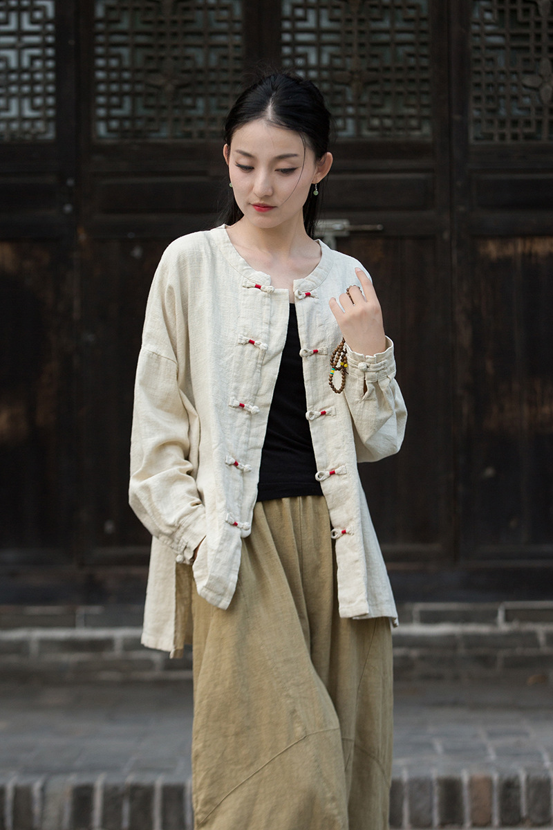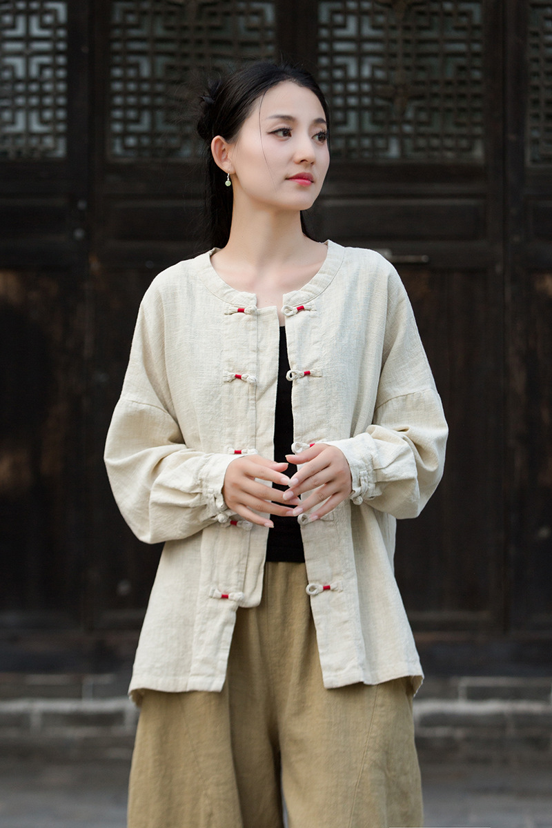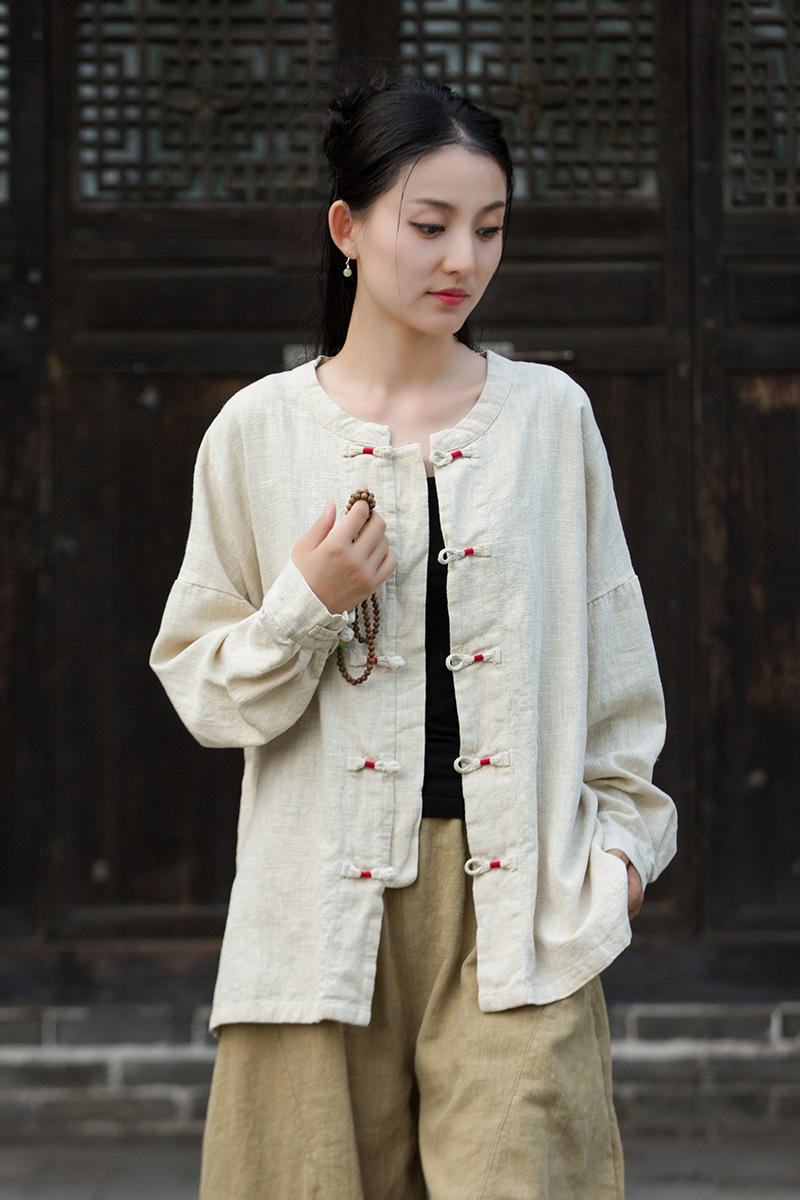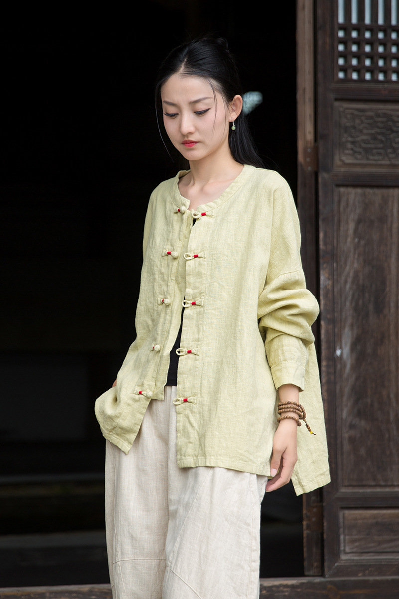 雀说棉麻女装新品复古盘扣新中式衬衫女宽松文艺国风禅意茶服上衣AL3391