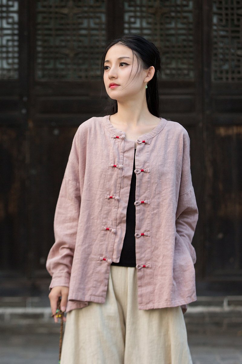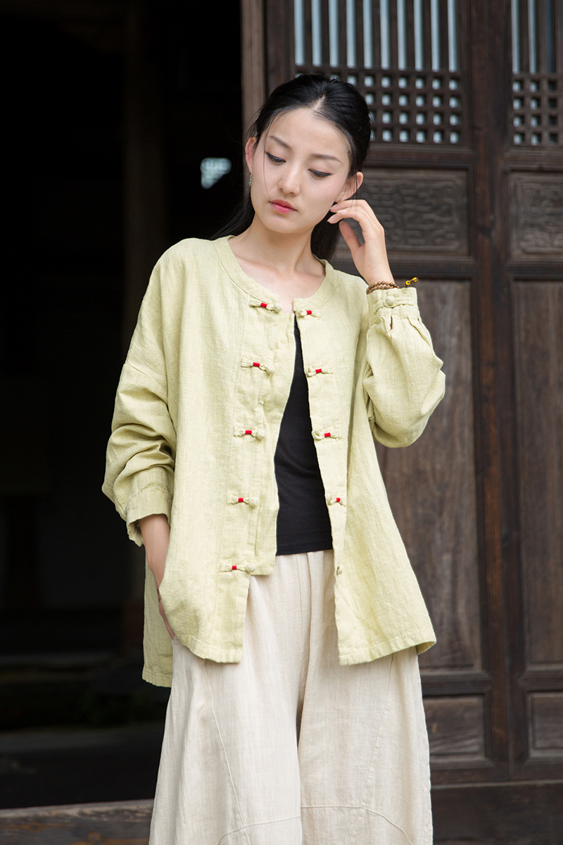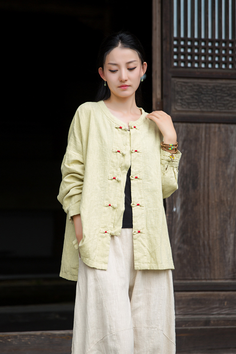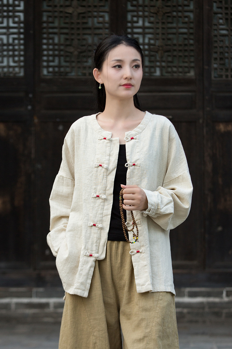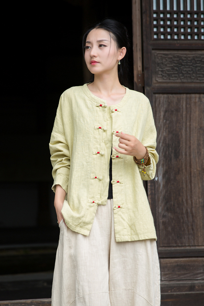 雀说棉麻女装新品复古盘扣新中式衬衫女宽松文艺国风禅意茶服上衣AL3391