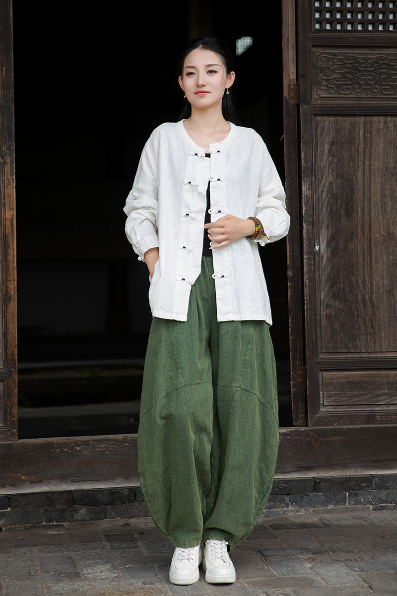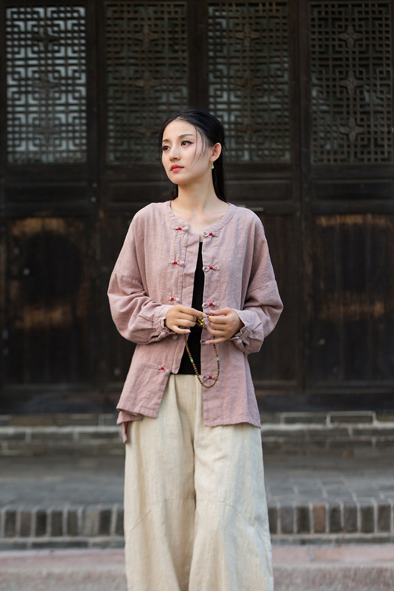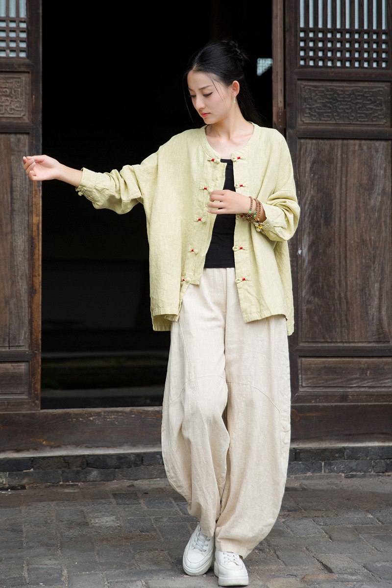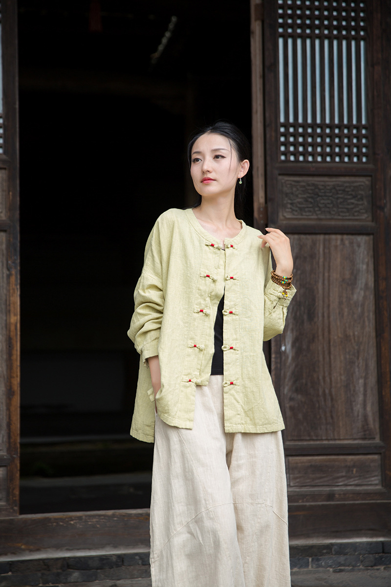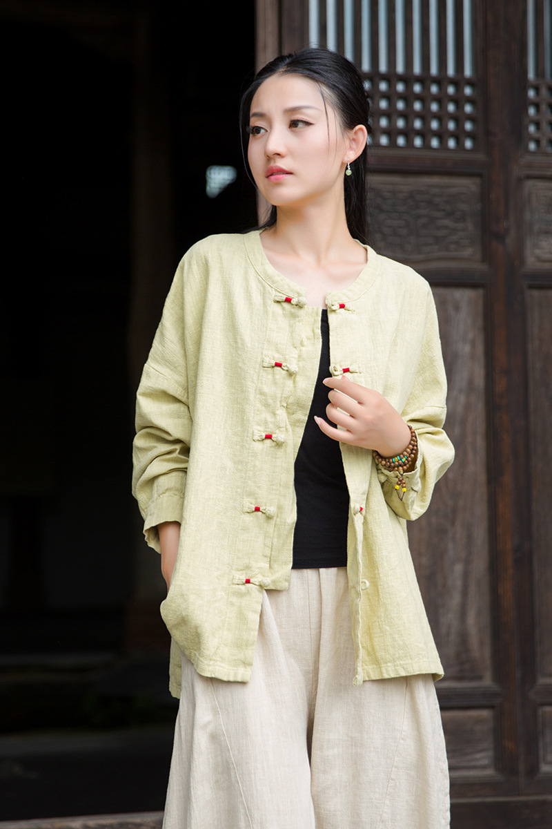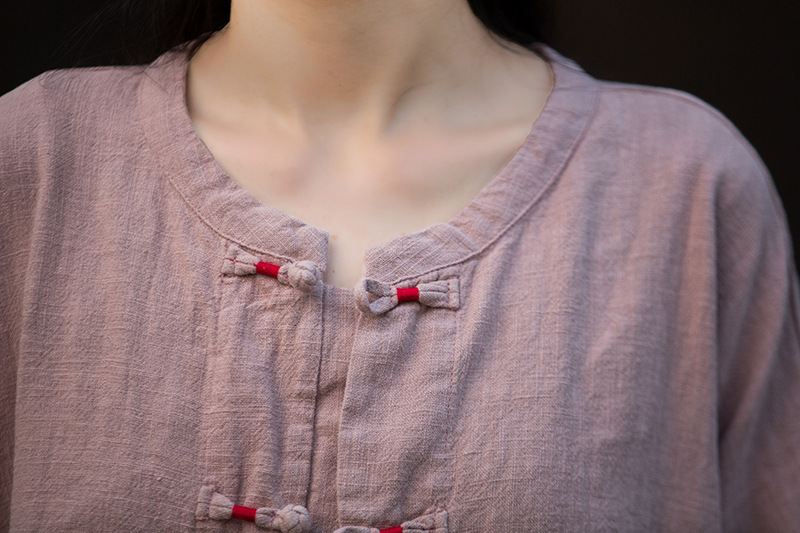 雀说棉麻女装新品复古盘扣新中式衬衫女宽松文艺国风禅意茶服上衣AL3391