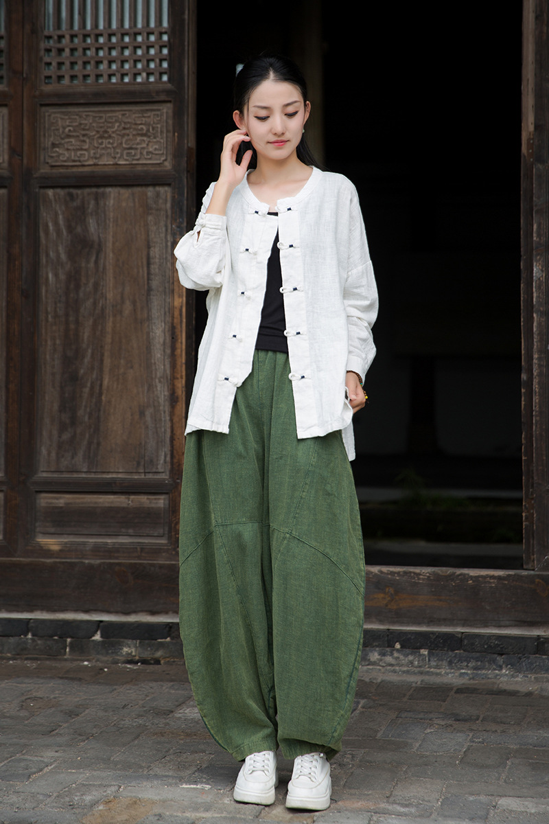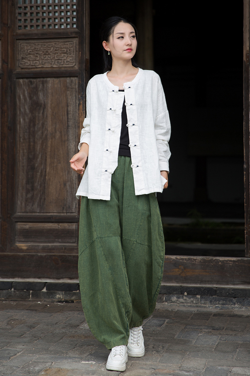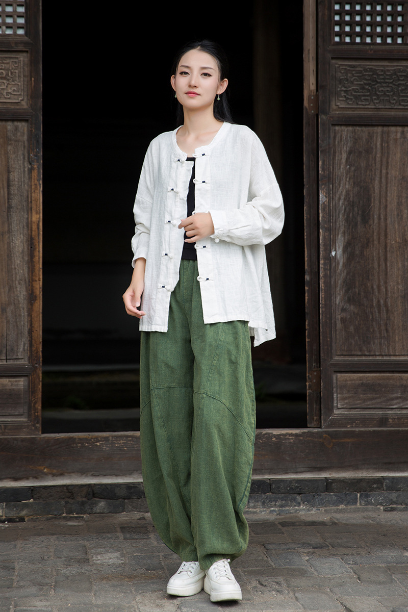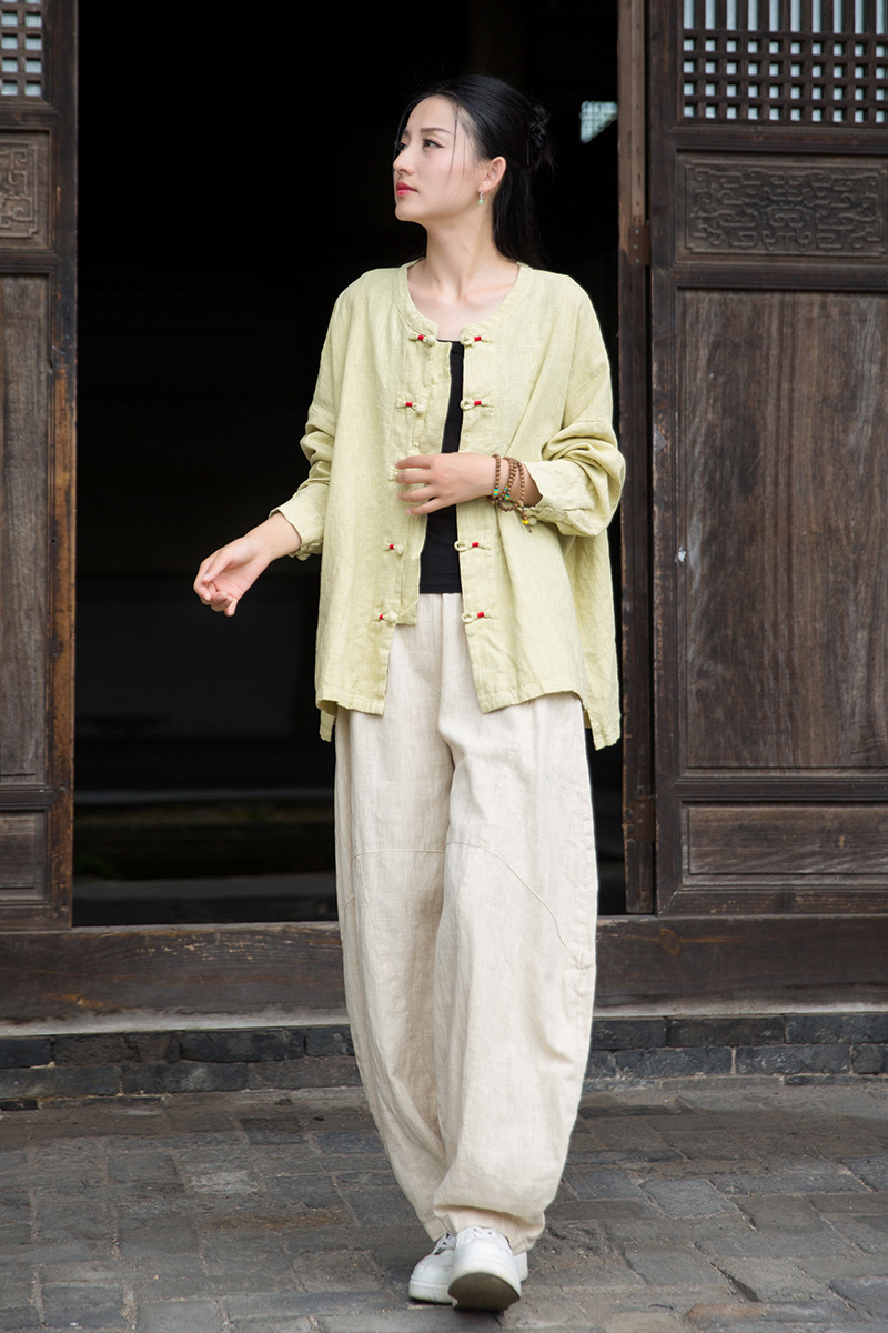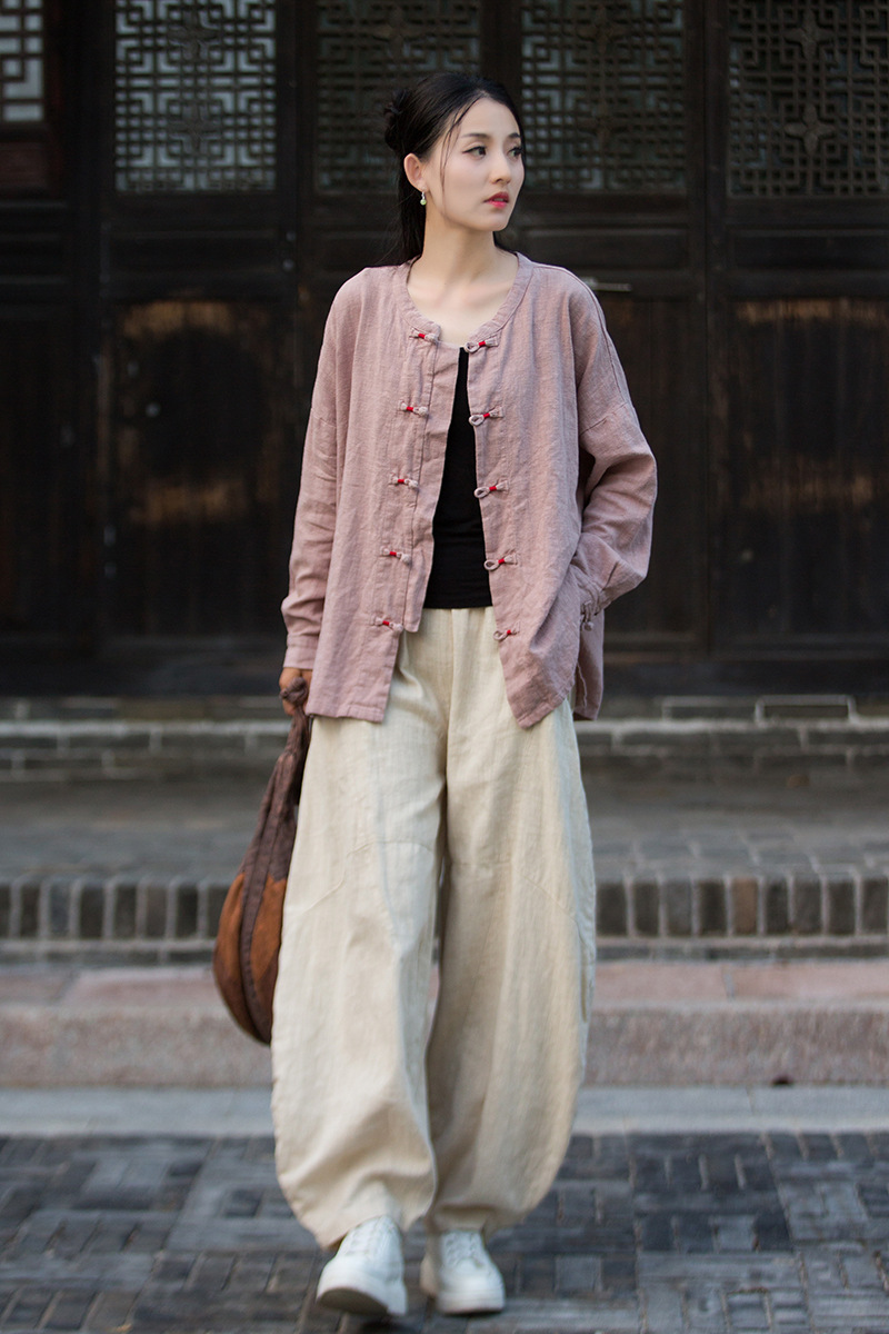 雀说棉麻女装新品复古盘扣新中式衬衫女宽松文艺国风禅意茶服上衣AL3391