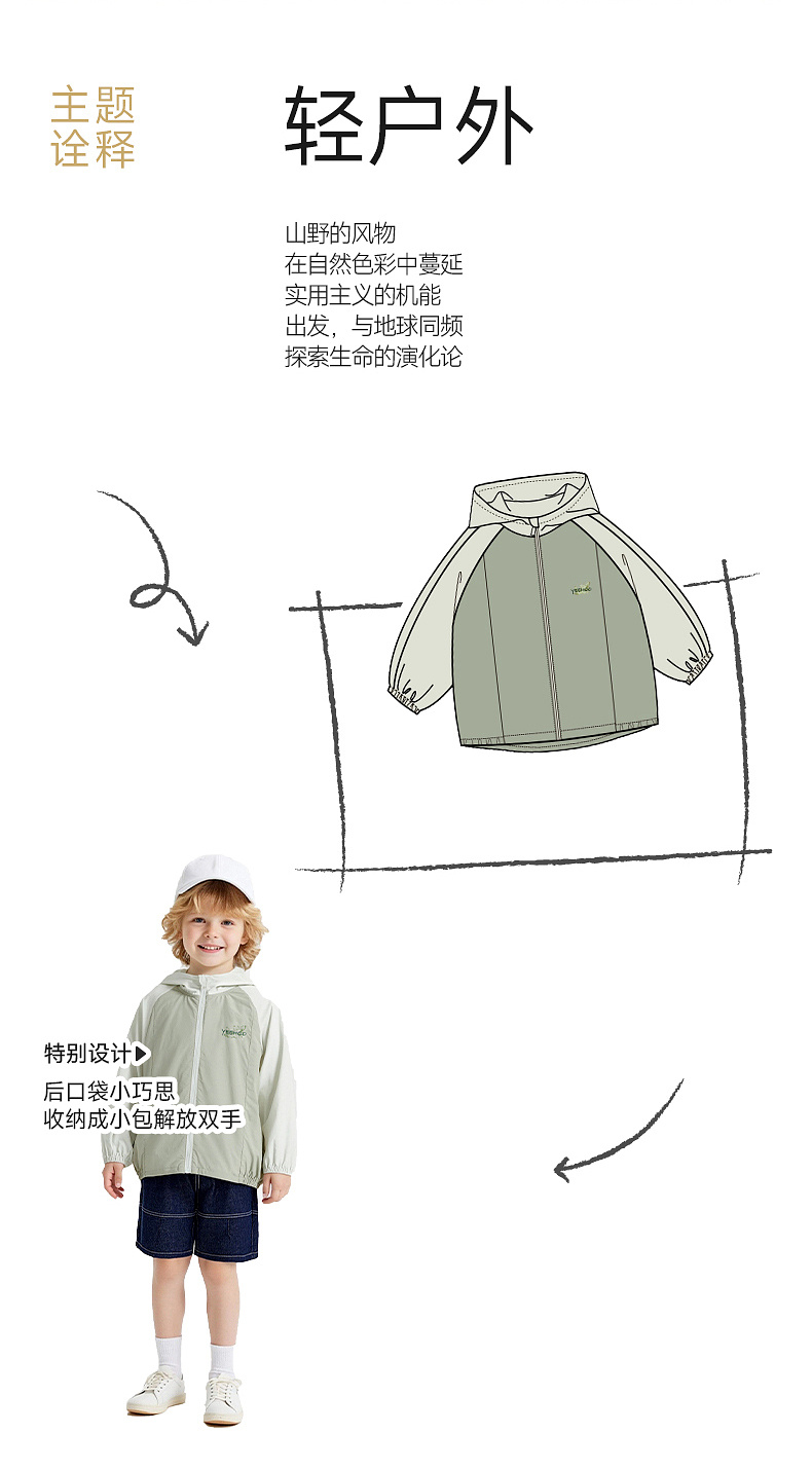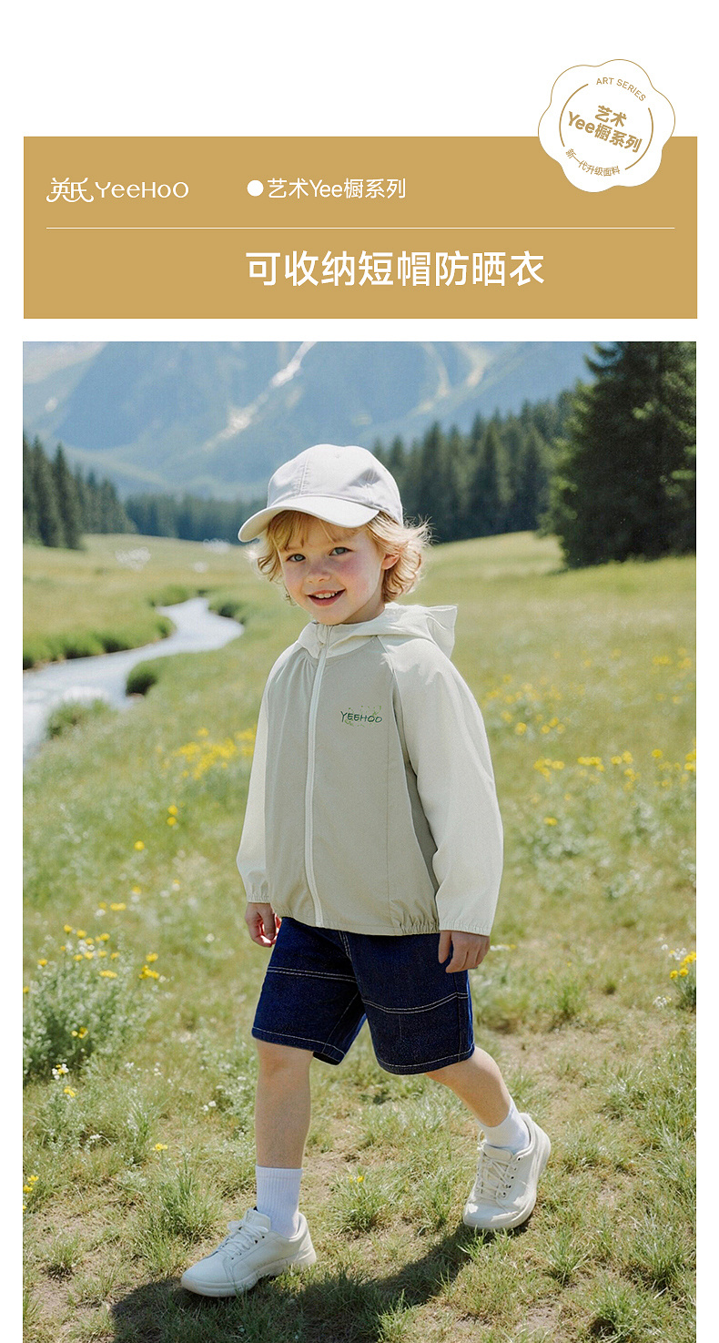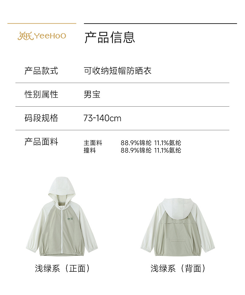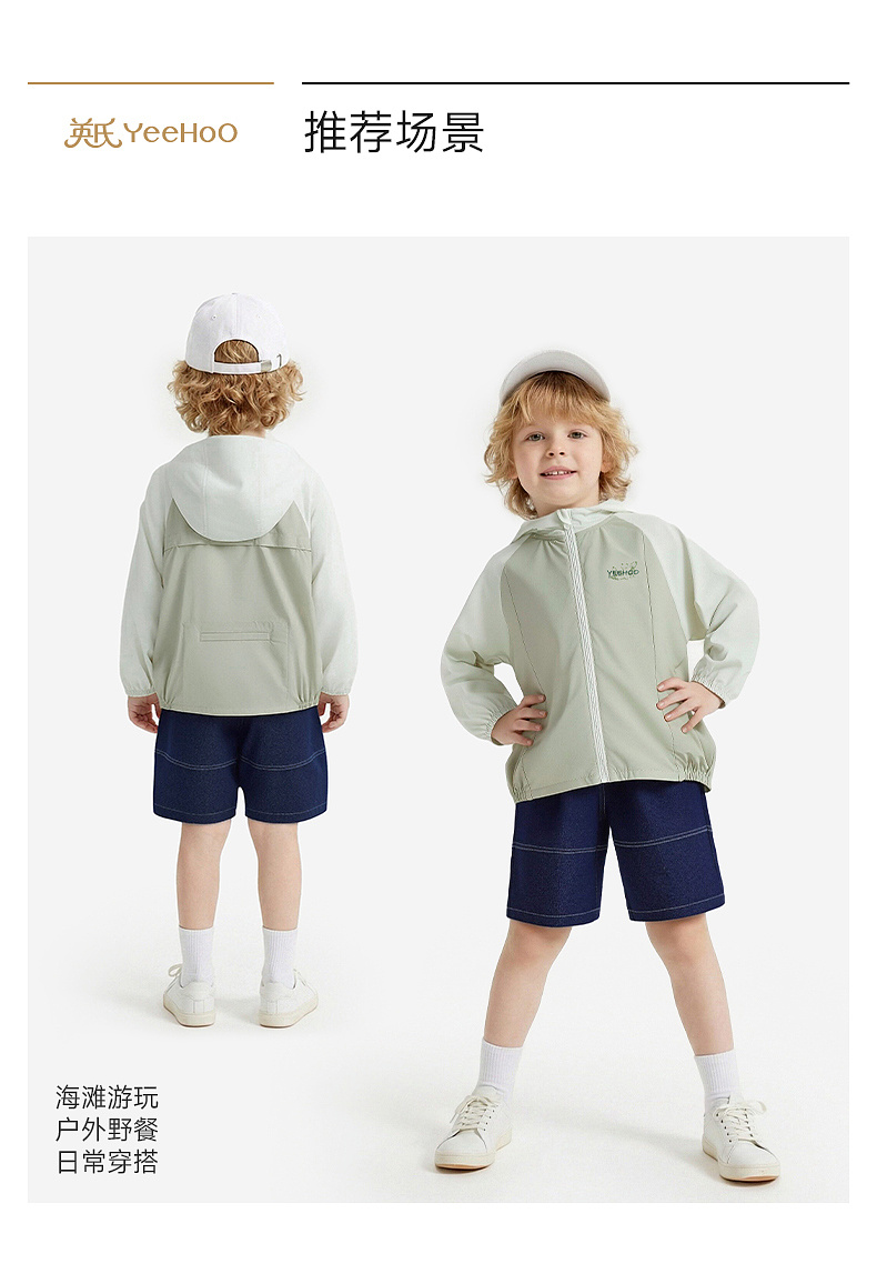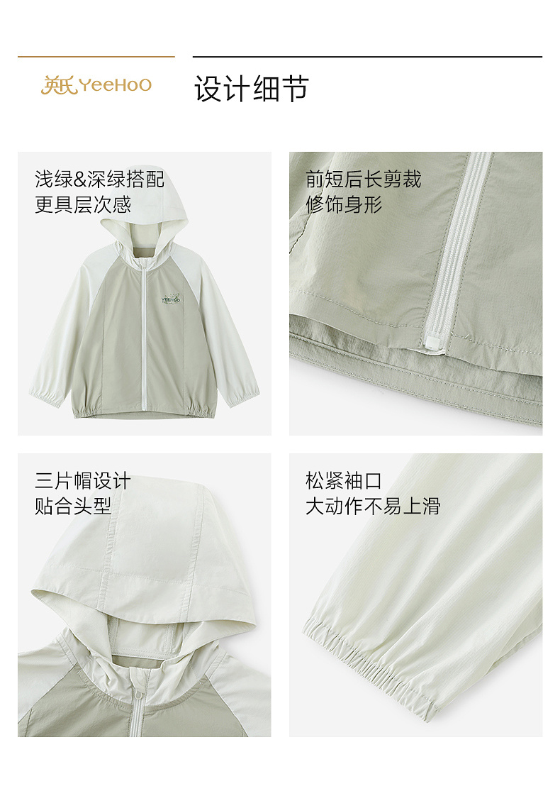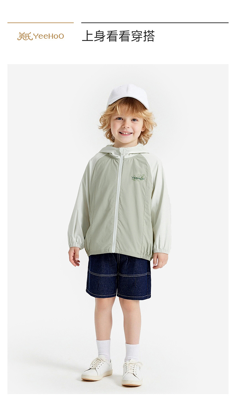 【商场同款】英氏儿童外套男童短帽防晒衣夏季凉感浅绿系皮肤衣
