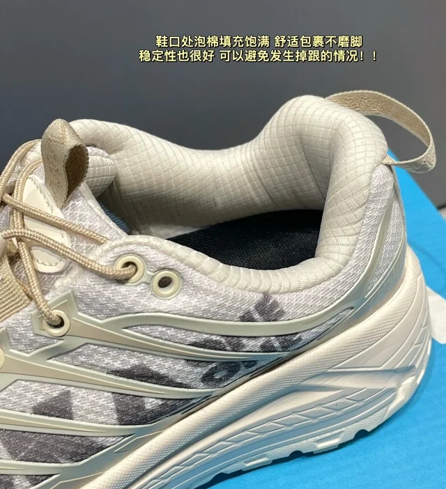 鞋口处泡棉填充饱满 舒适包裹不磨脚 稳定性也很好 可以避免发生掉跟的情况!!