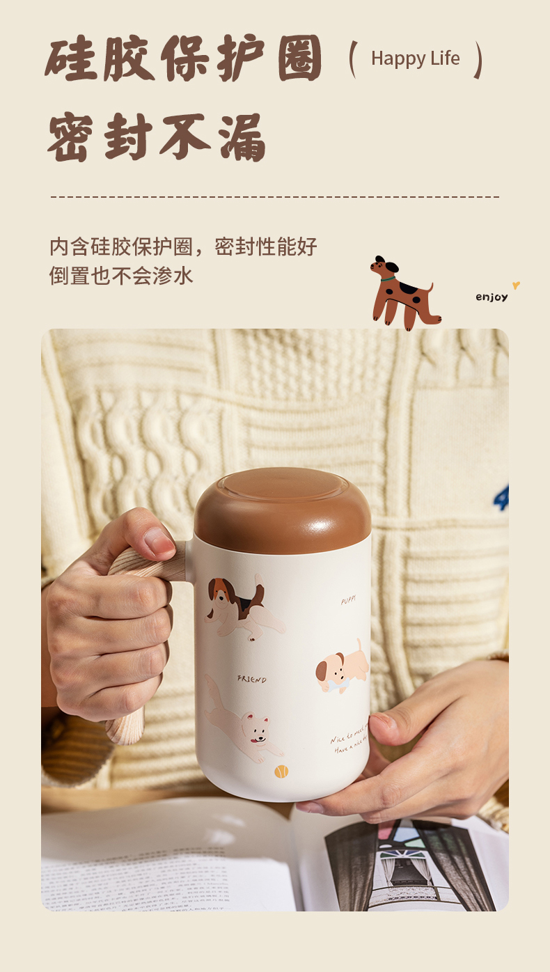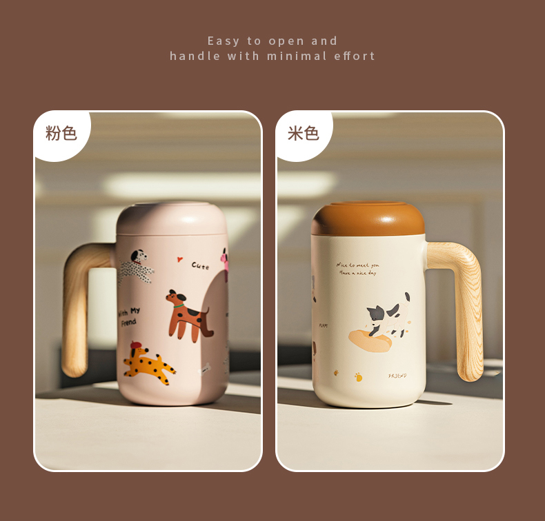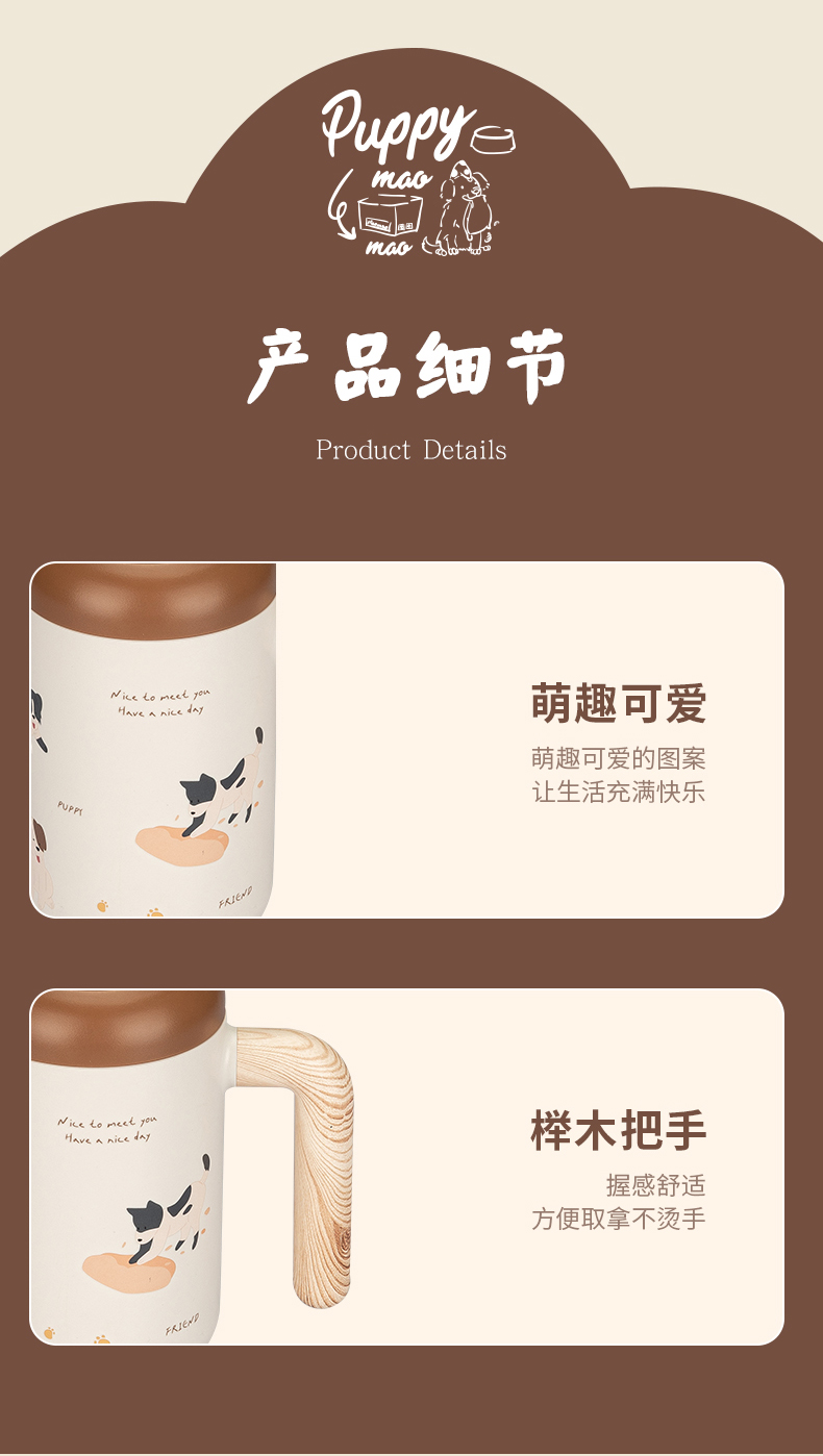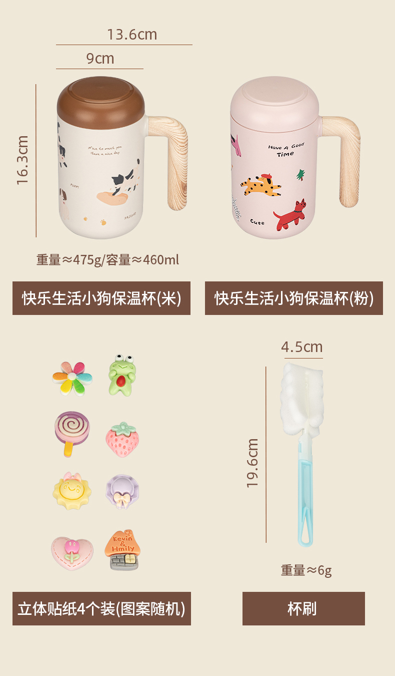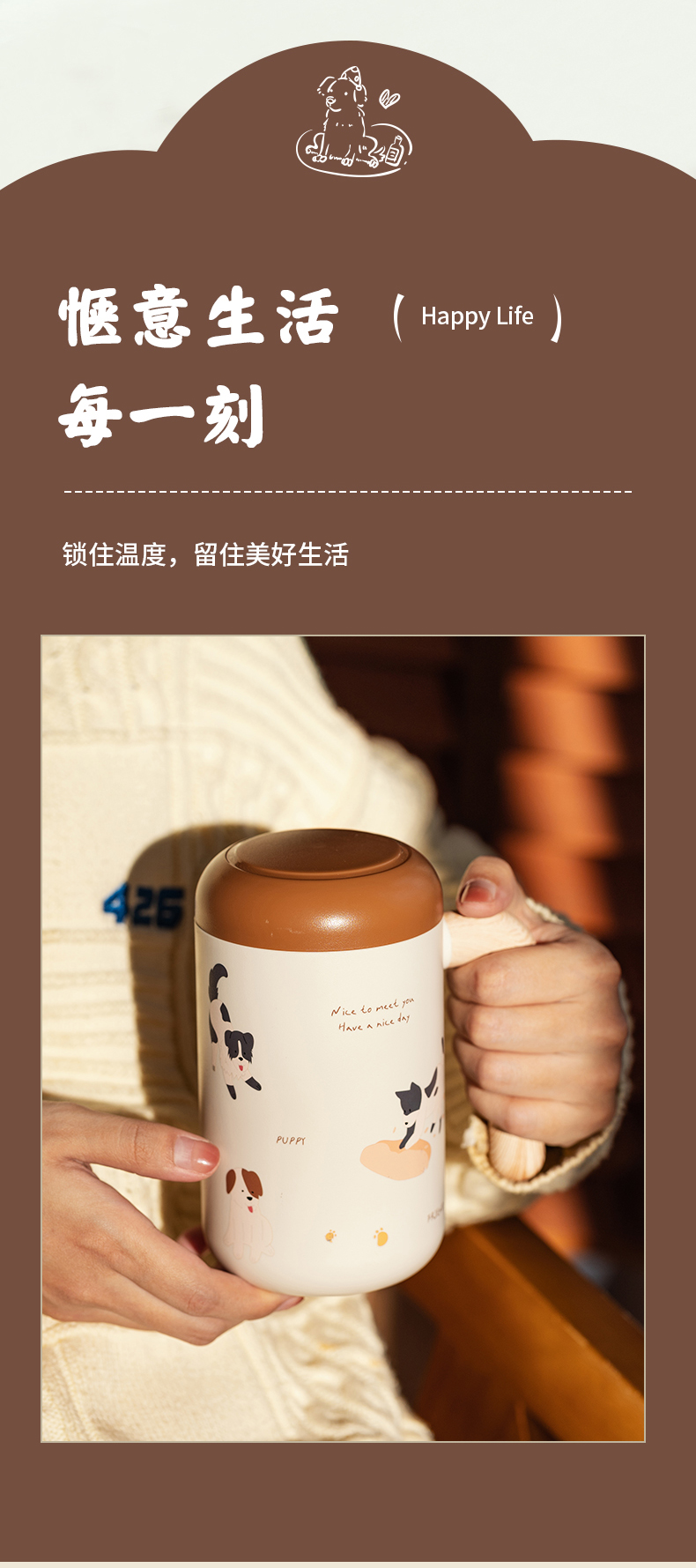 摩登主妇小狗带把咖啡保温杯女生2023新款高颜值不锈钢便携随行水杯子