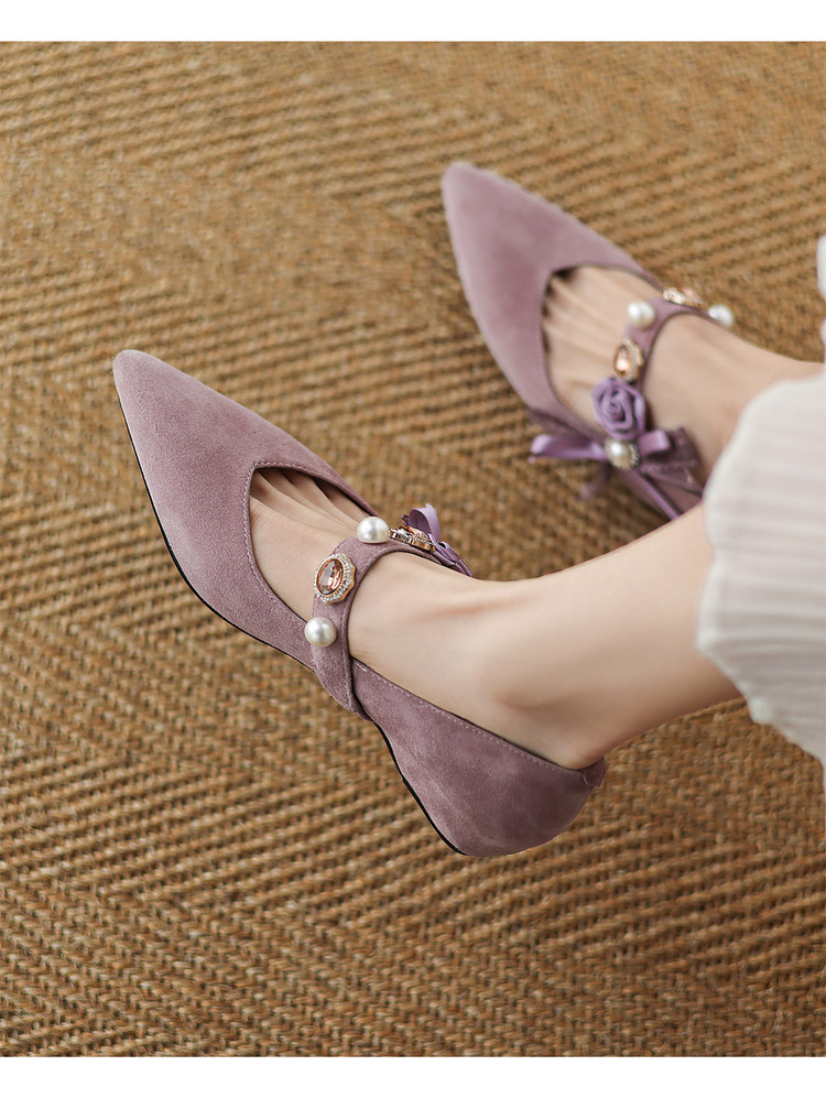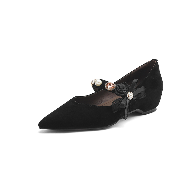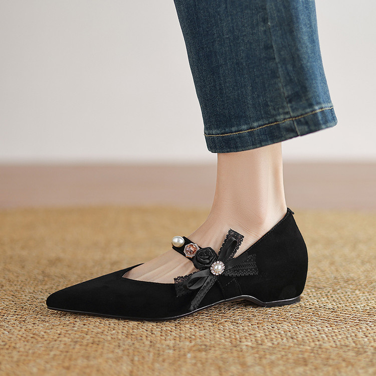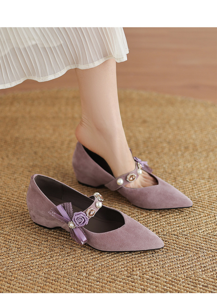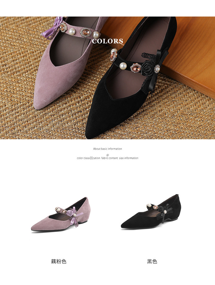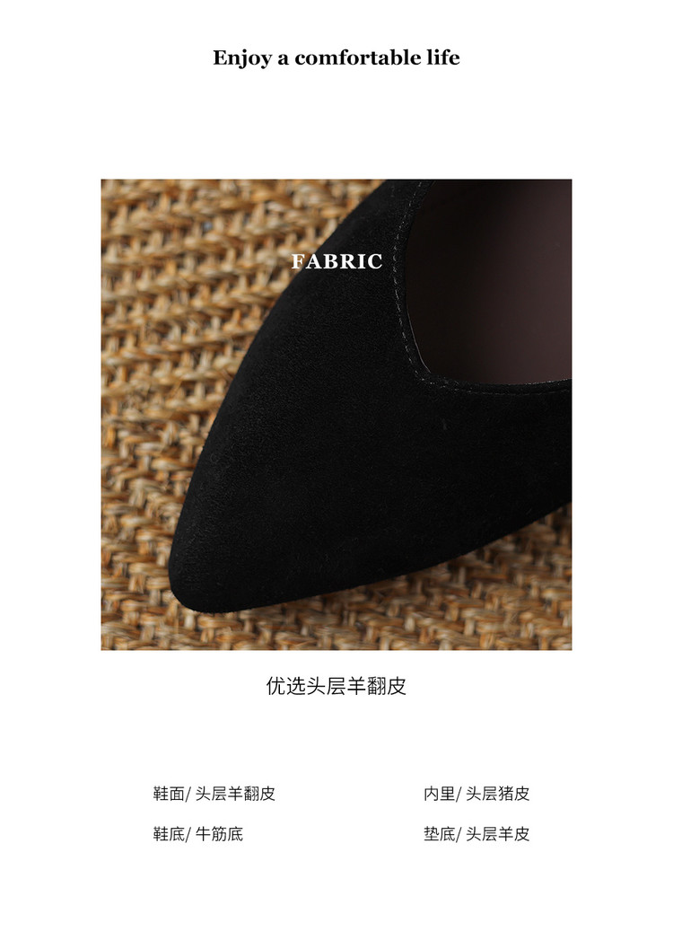 【预售5天】尖头浅口一字带磨砂皮内增高玛丽珍鞋女春秋款温柔气质粗跟时尚单鞋JLY&1966
