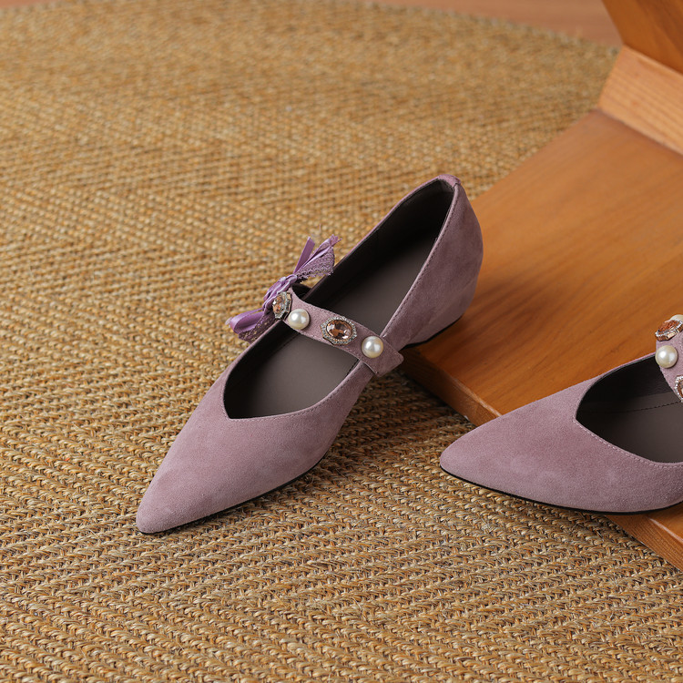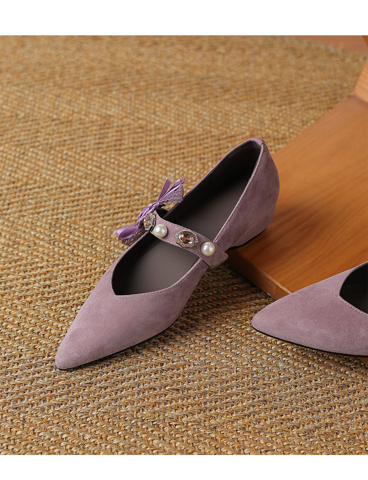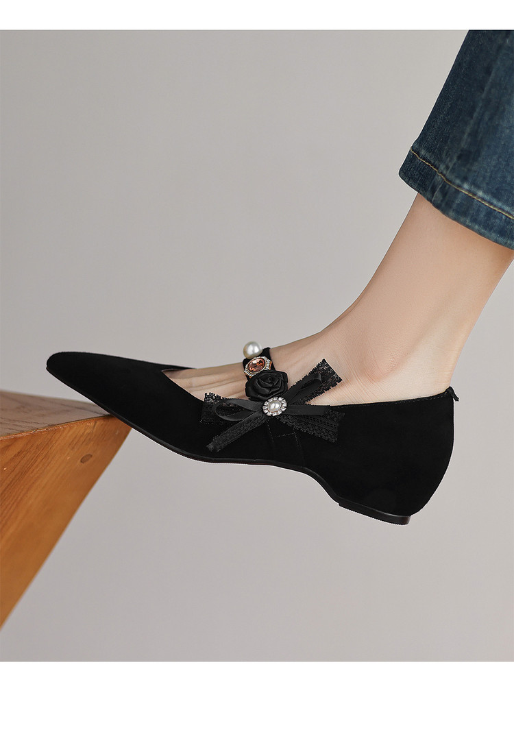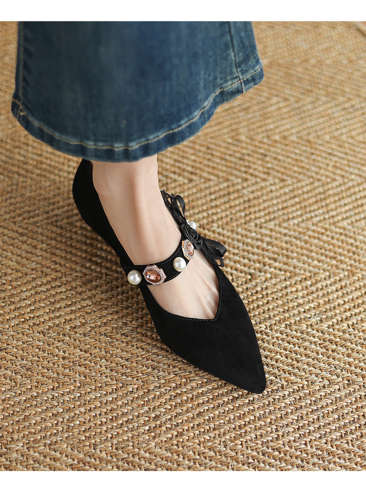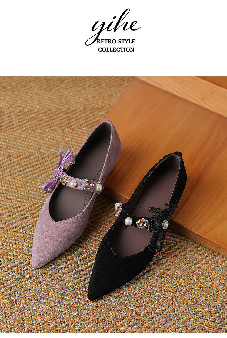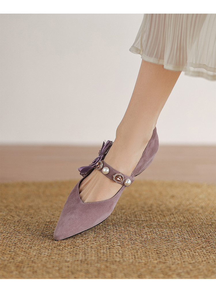 【预售5天】尖头浅口一字带磨砂皮内增高玛丽珍鞋女春秋款温柔气质粗跟时尚单鞋JLY&1966
