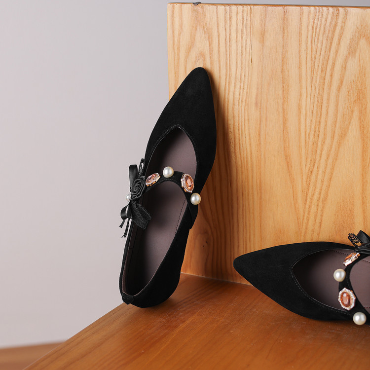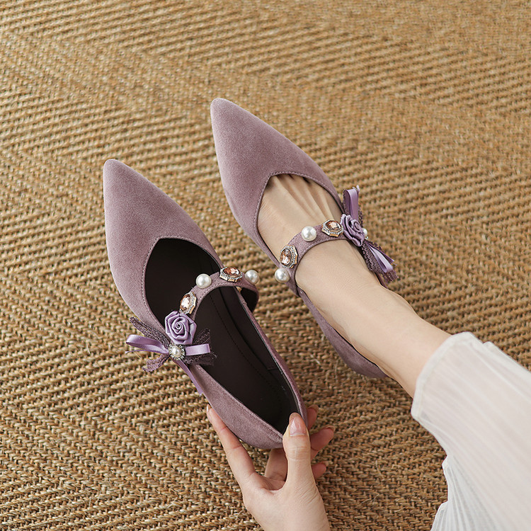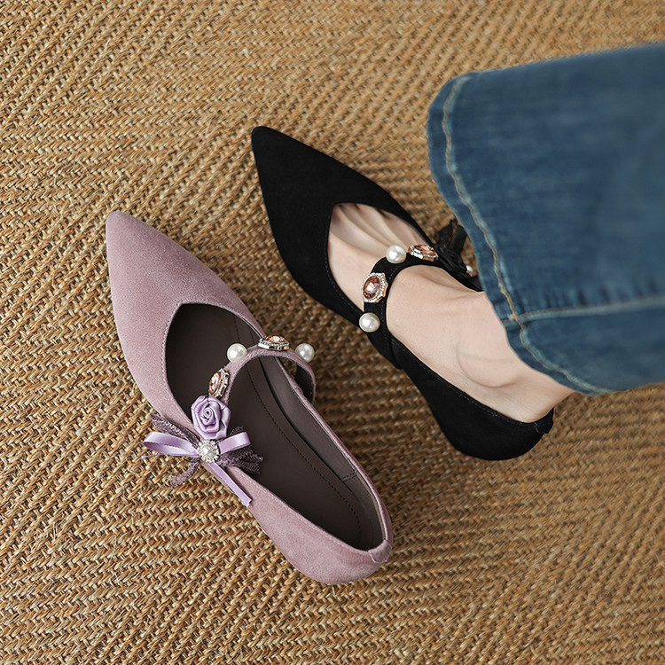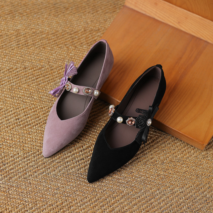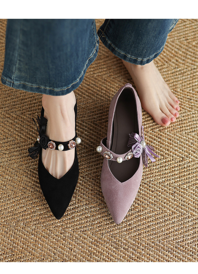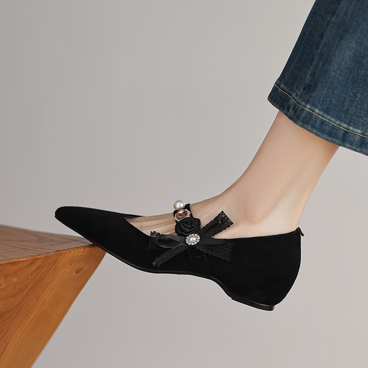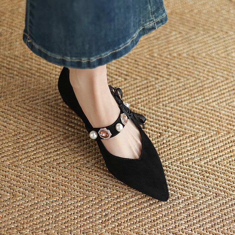 【预售5天】尖头浅口一字带磨砂皮内增高玛丽珍鞋女春秋款温柔气质粗跟时尚单鞋JLY&1966