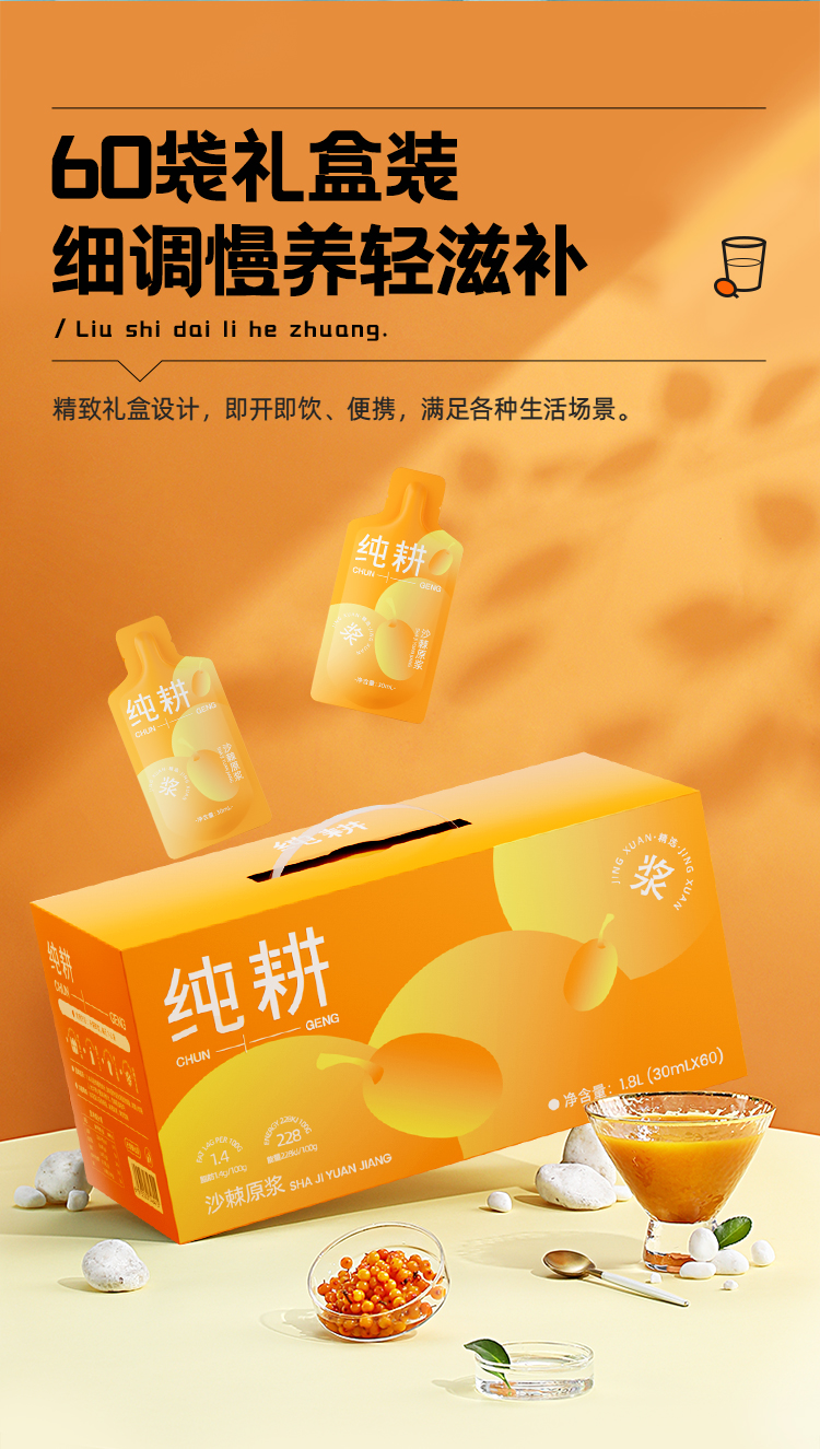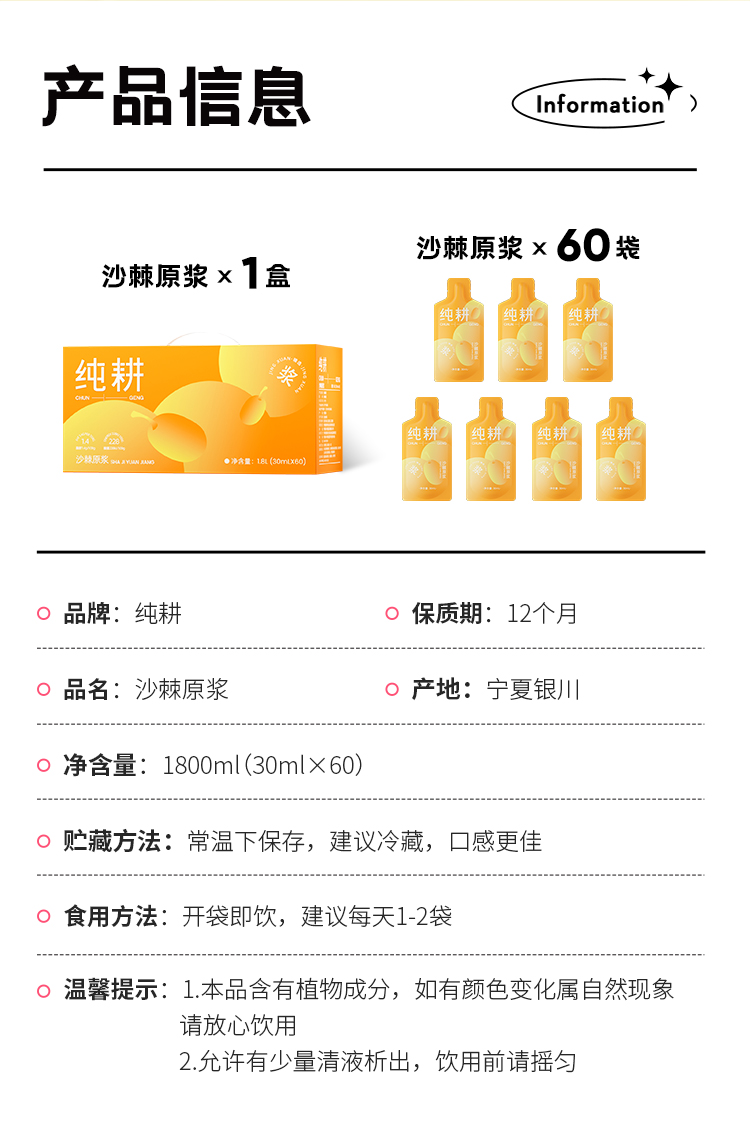 【冬季滋补】纯耕1.8L(60袋)量贩装沙棘原浆;赠试喝装;不添加糖类香精色素,鲜活营养小果沙棘,维C;黑枸杞沙棘原浆组合,青海原产黑枸杞原浆,富含花青素
